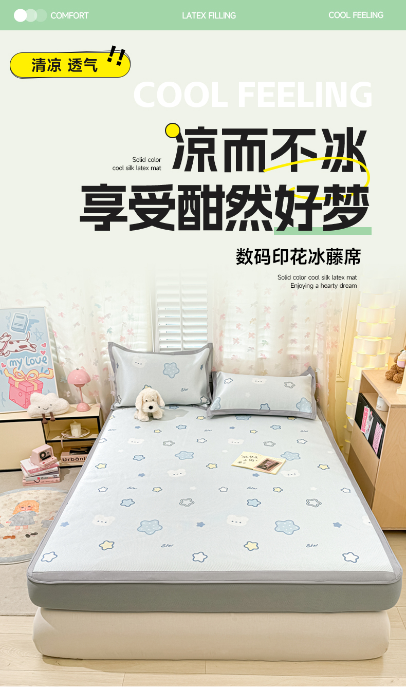 当前位置: 91家纺网 > 商品网购 > 床上用品 > 凉席 > 2025新款小清新数码印花床笠款冰藤席 床笠星塔小熊