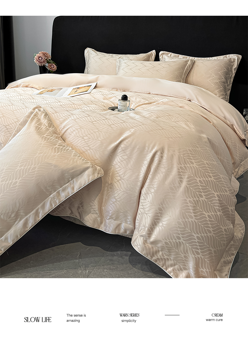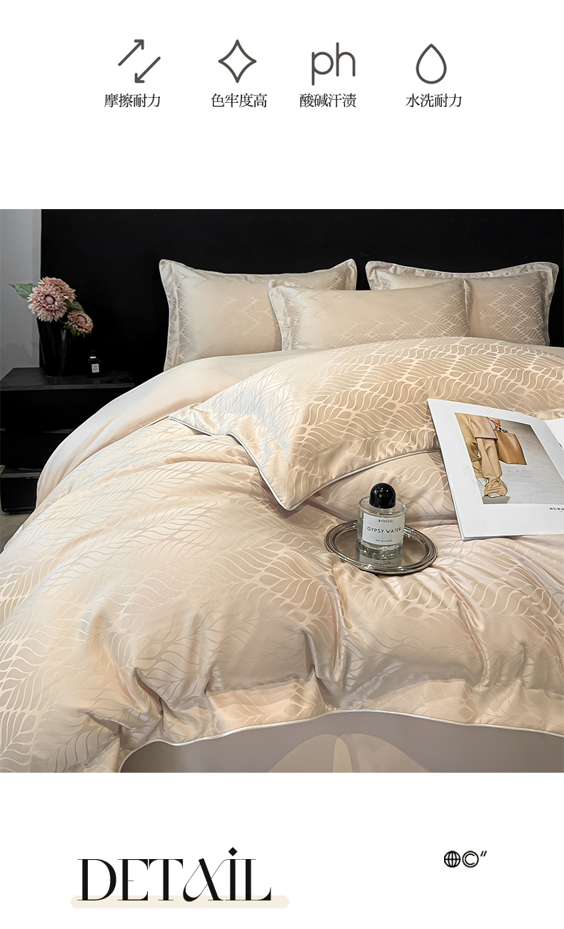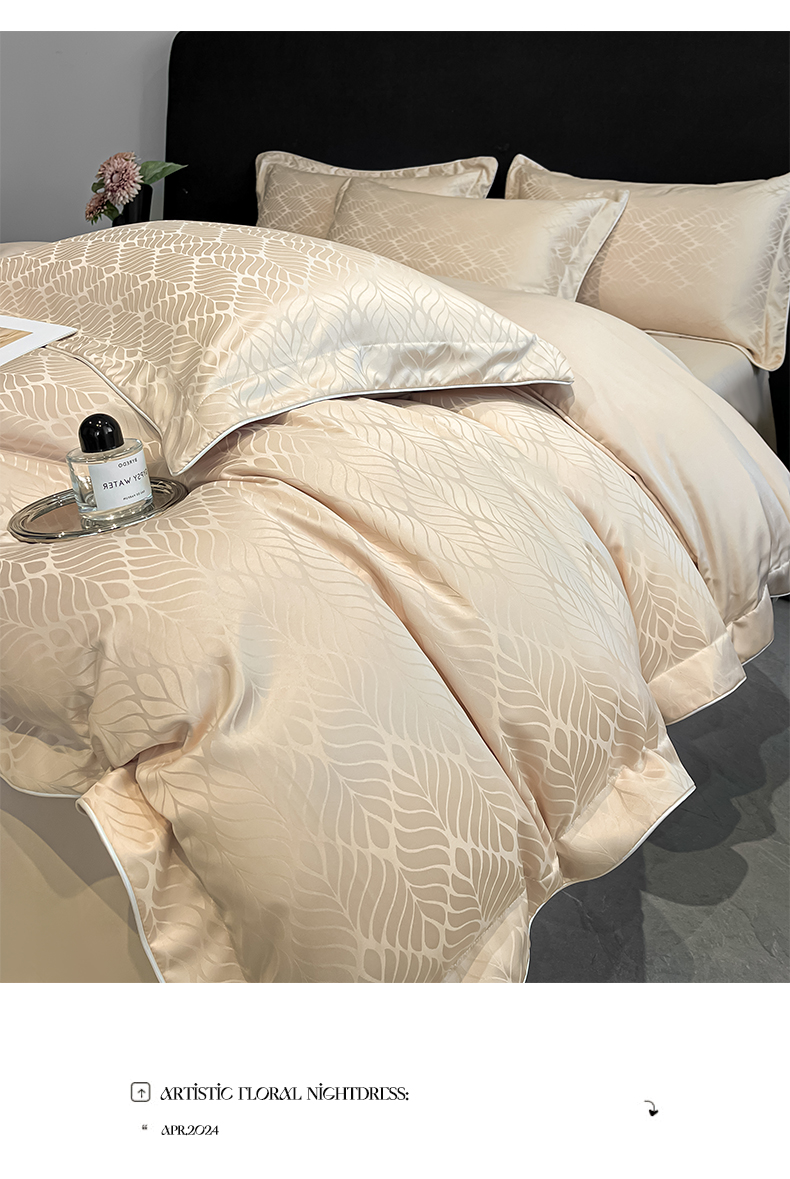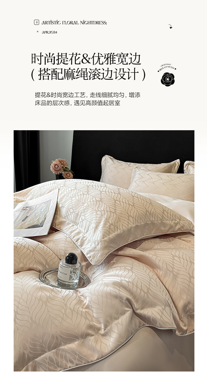 商品名称:米彩家纺 2025新款A类水洗真丝天丝提花四件套 花月梦香槟
