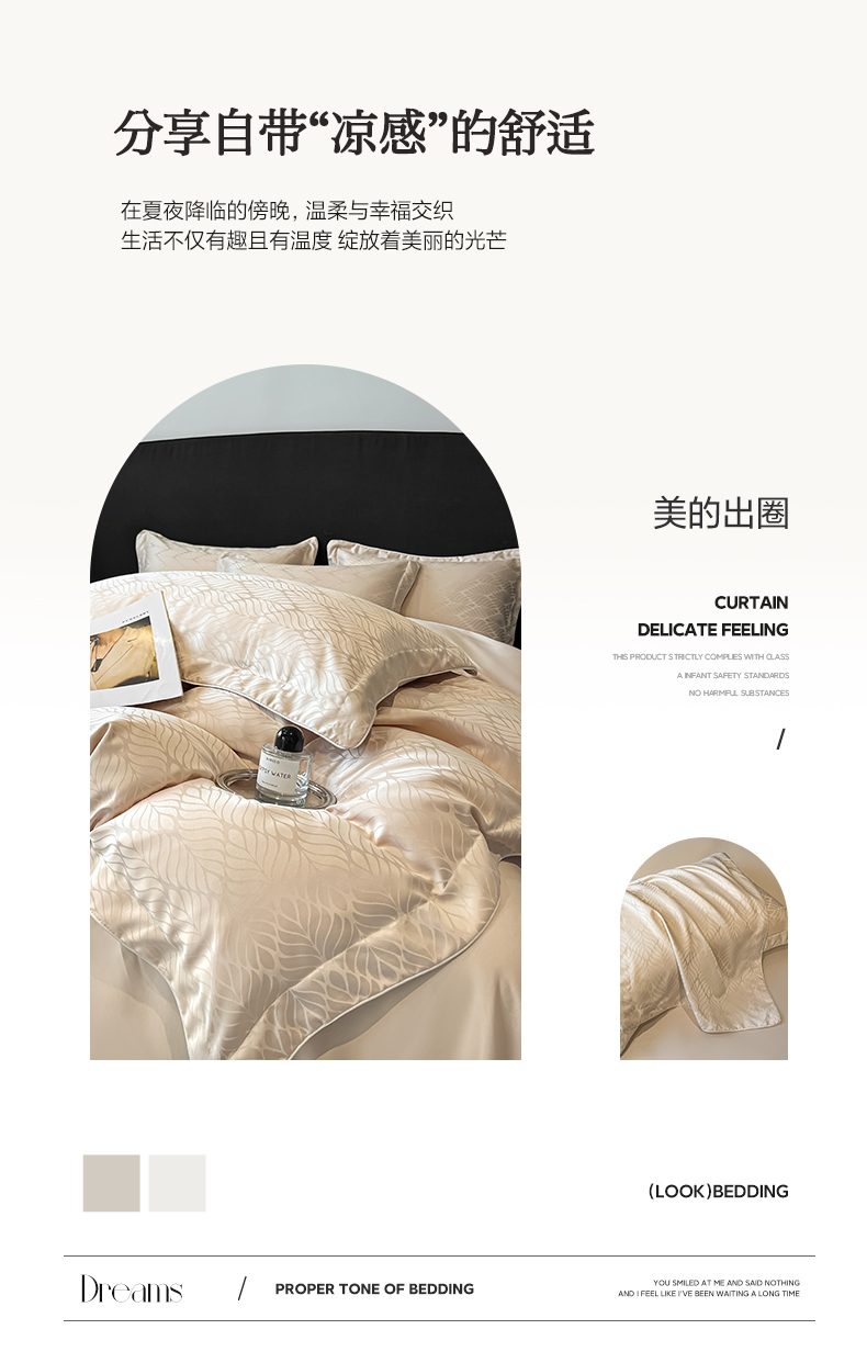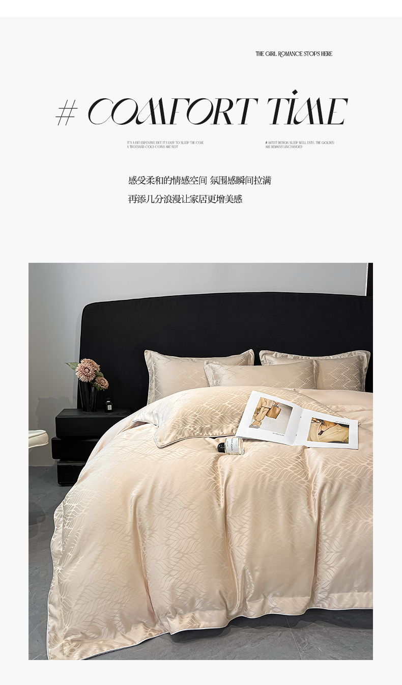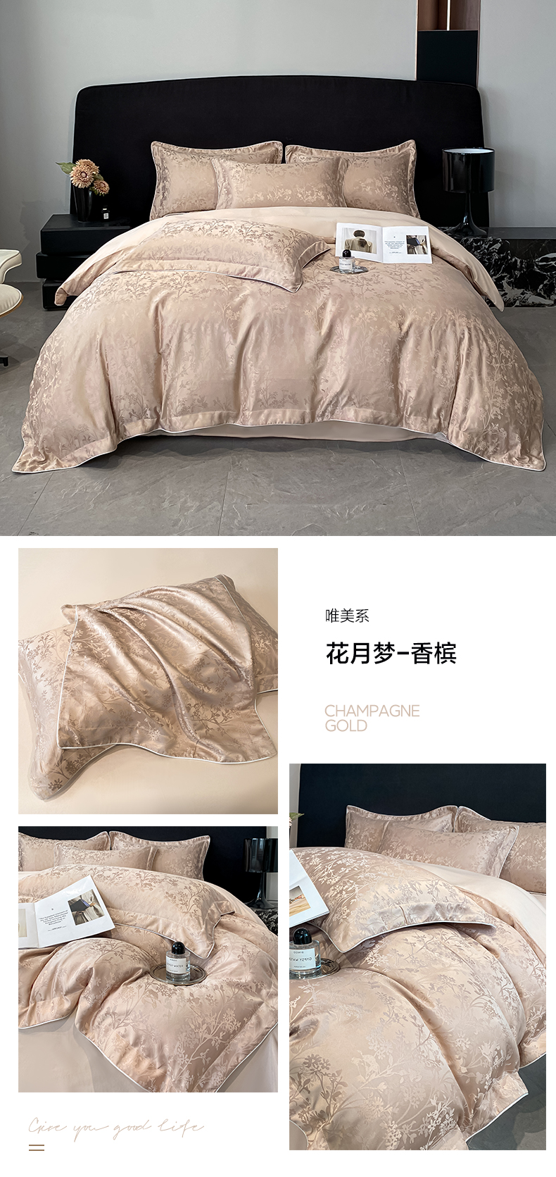 商品名称:米彩家纺 2025新款A类水洗真丝天丝提花四件套 花月梦香槟