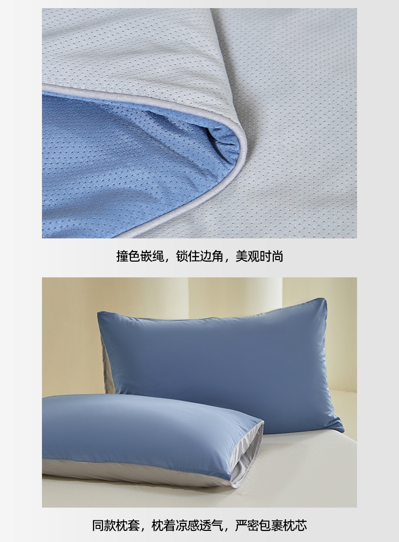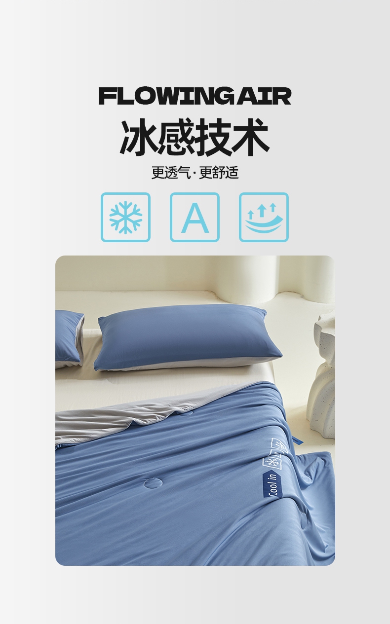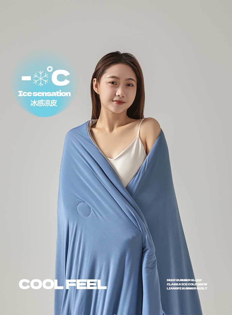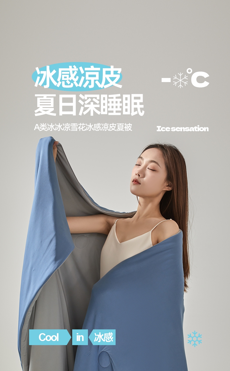 • 91家纺网 家纺一手货源 找家纺 桃子家居 2025新款A类高品质冰冰凉雪花冰感凉皮双面加倍透气孔氨纶凉感夏被 冰感凉皮-蓝银灰(加倍透气)