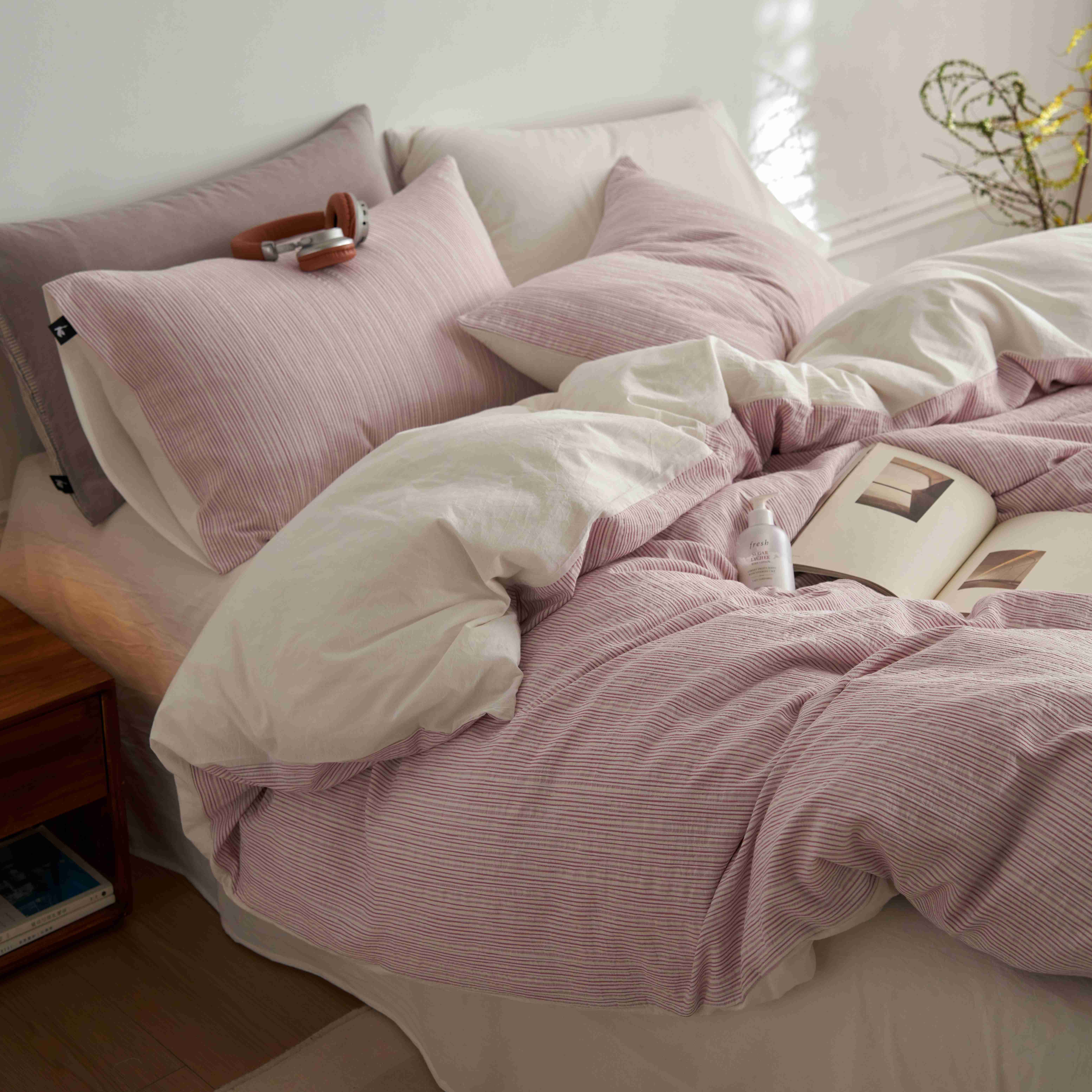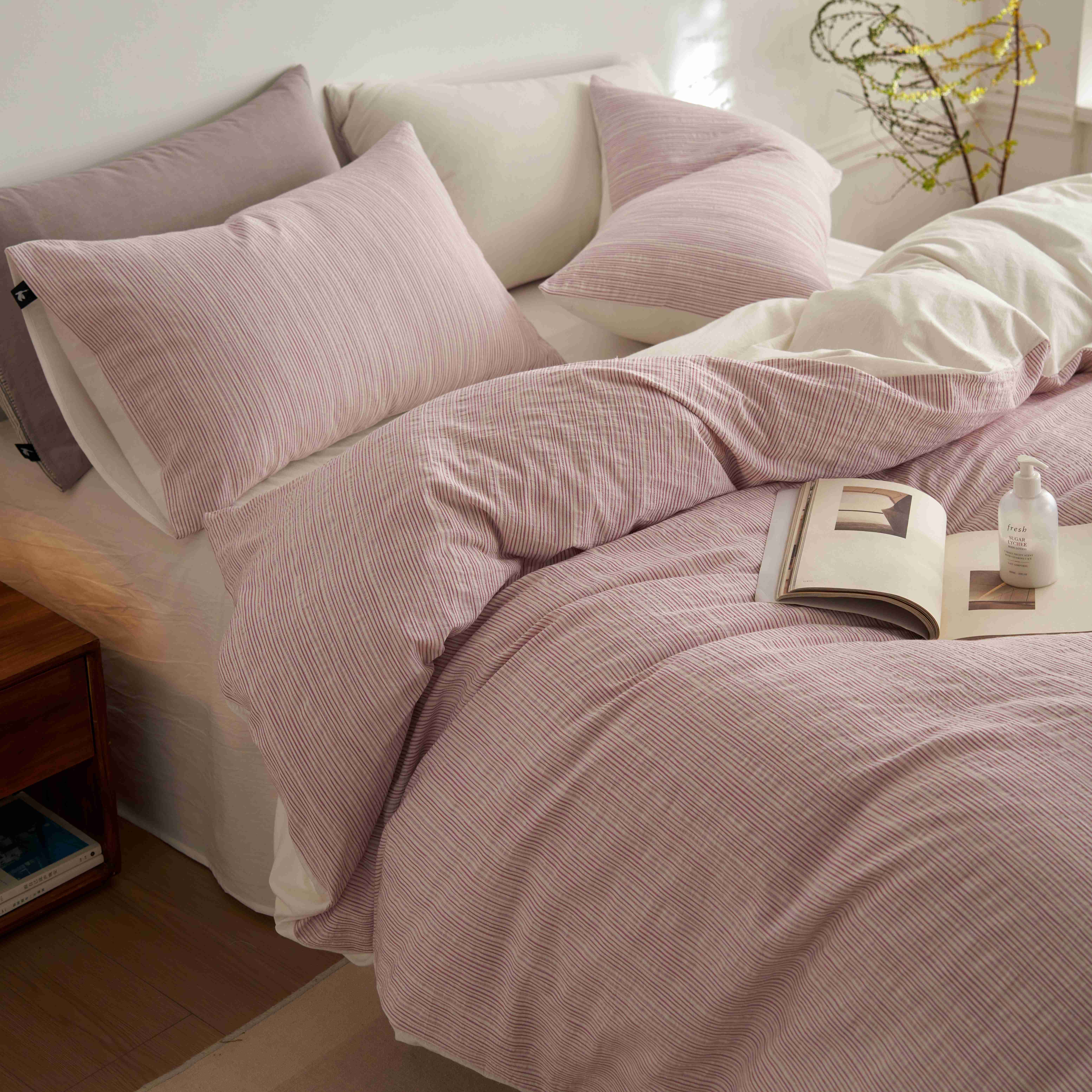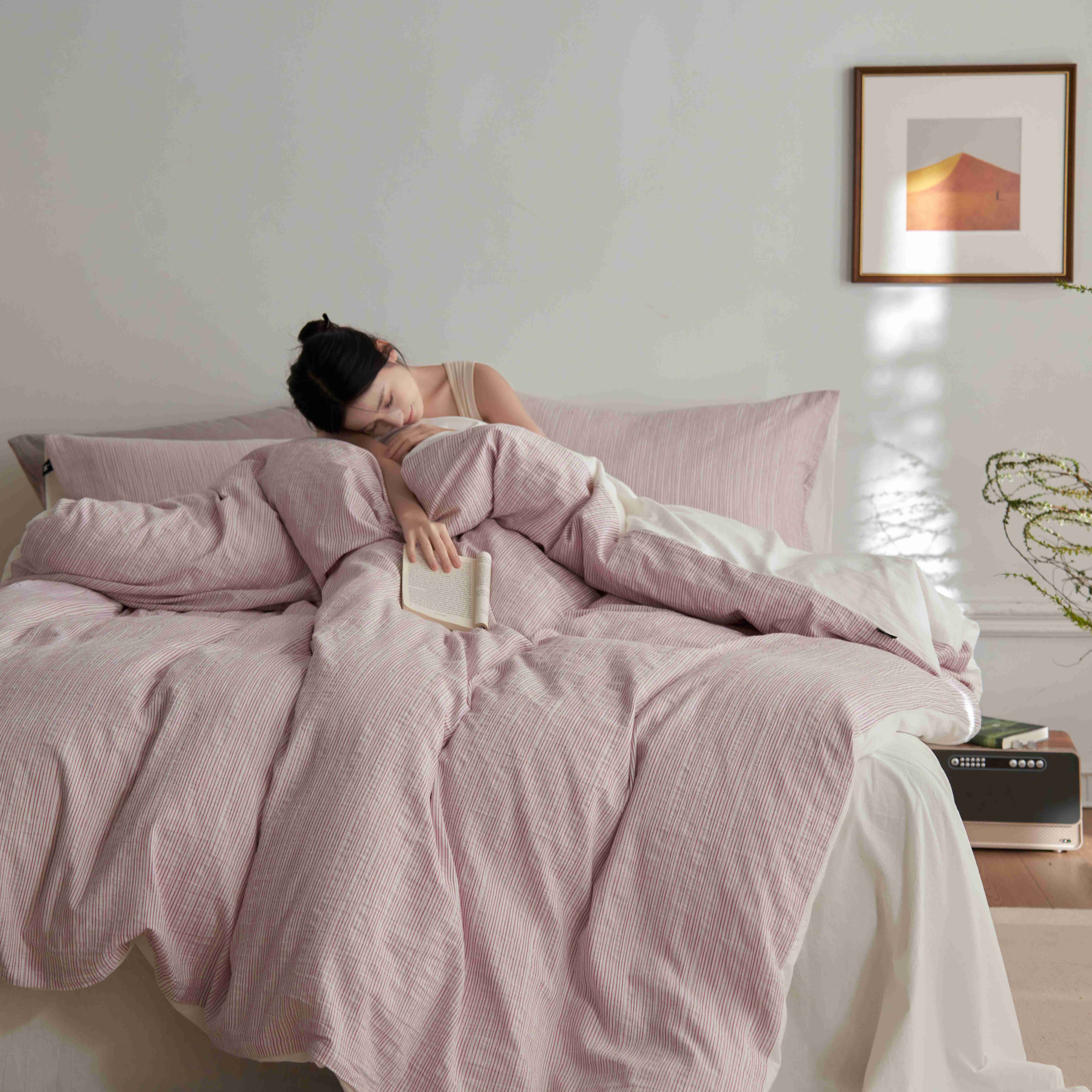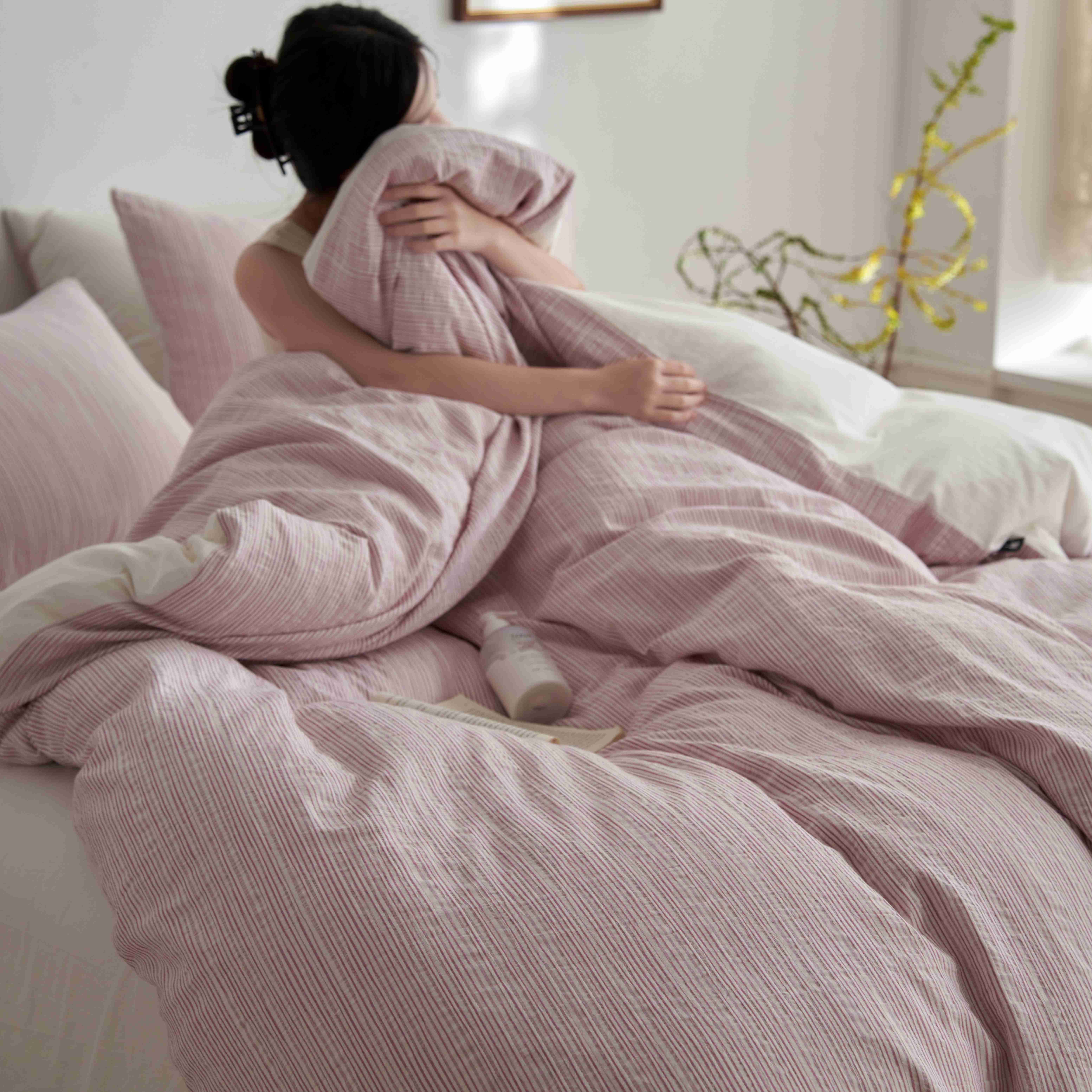 商品名称:安莱生活 2025新款60s色织大提花秘境条纹四件套系列 藕粉混条