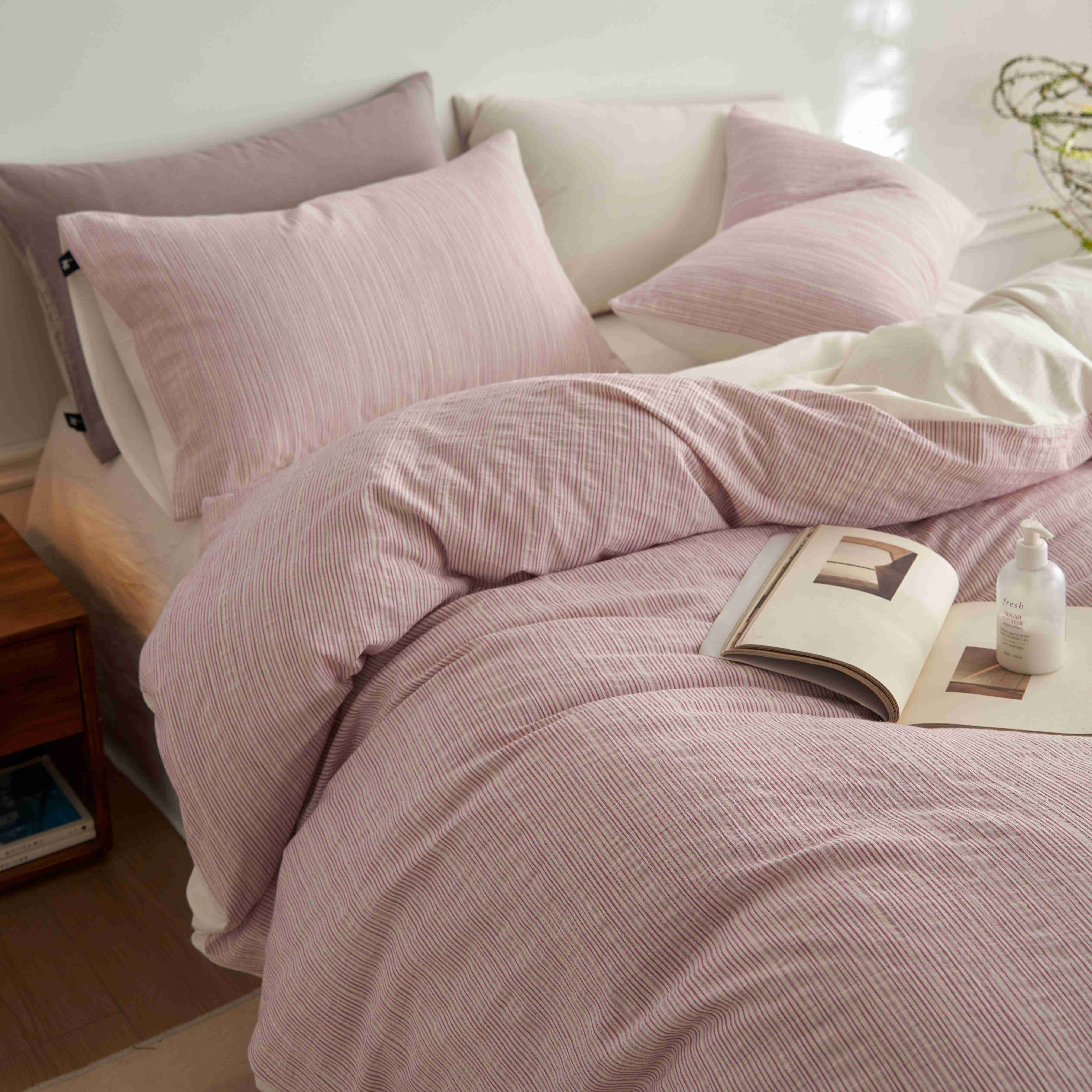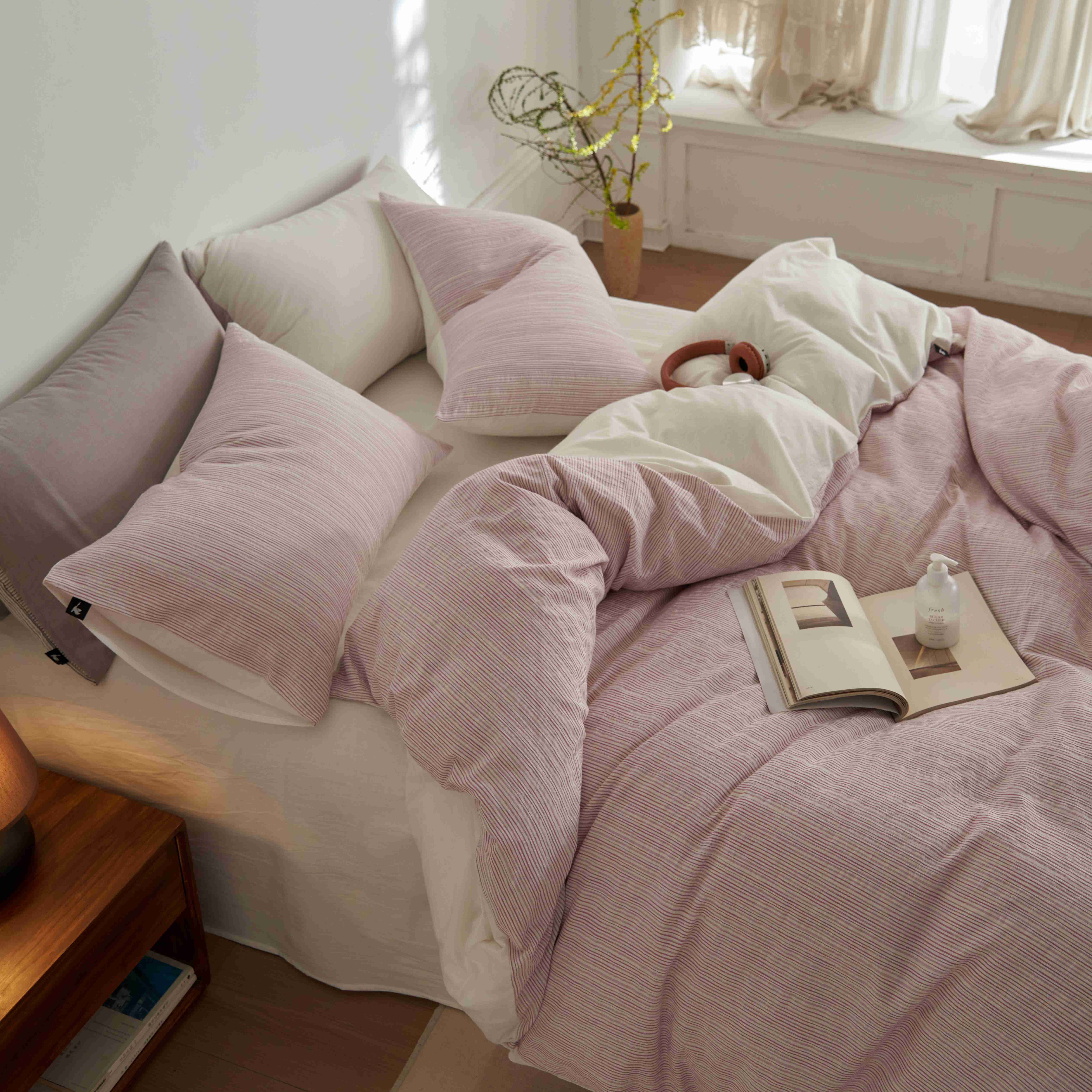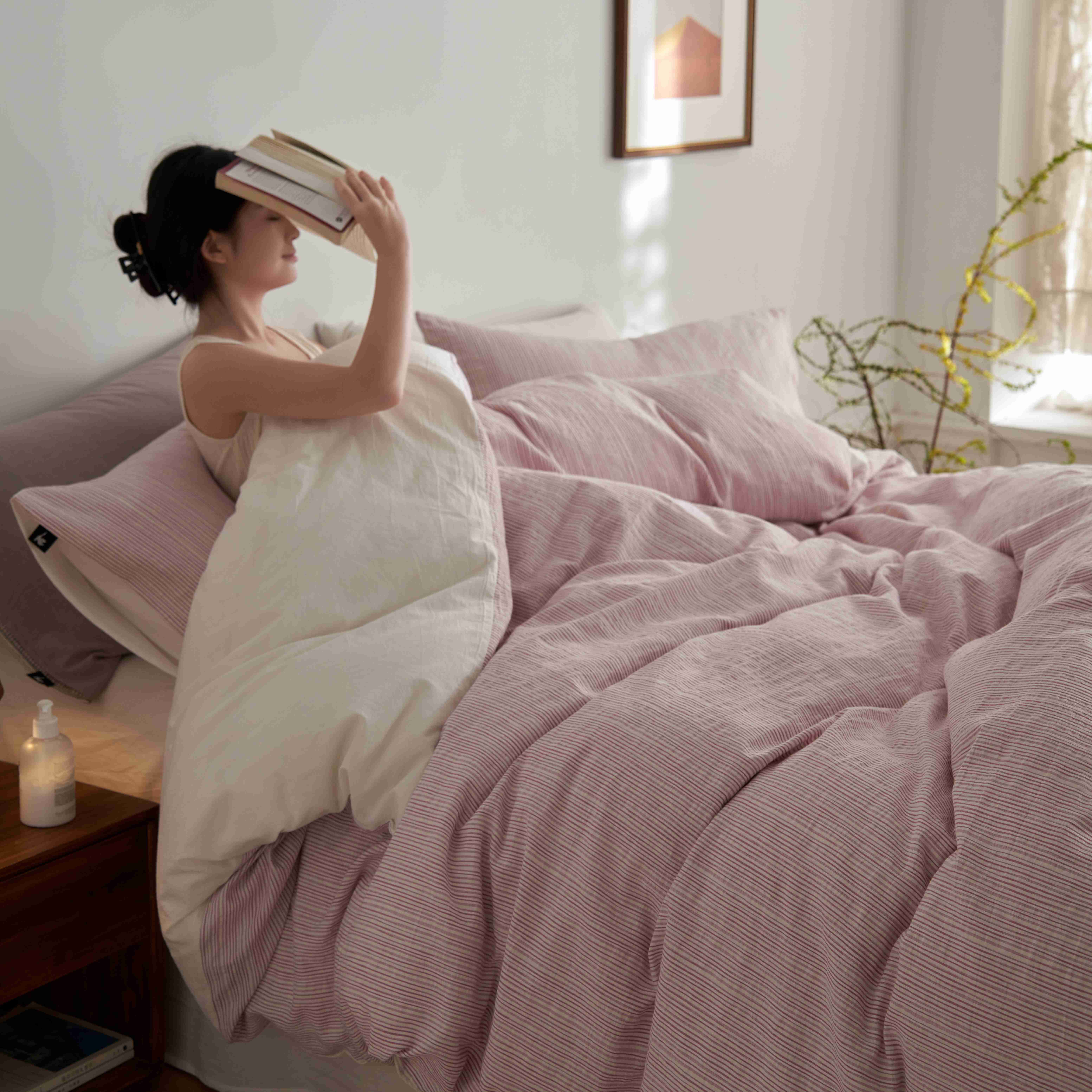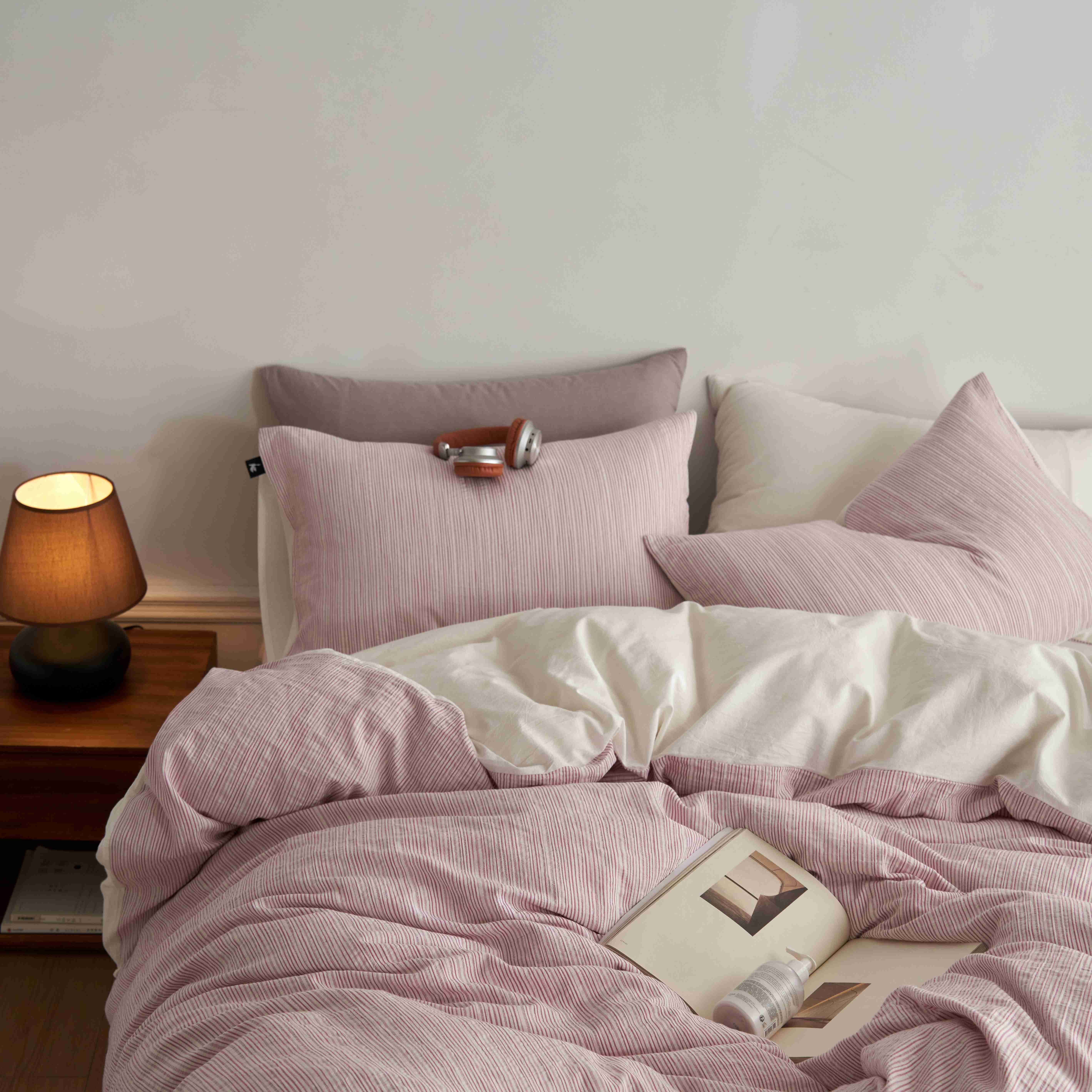 商品名称:安莱生活 2025新款60s色织大提花秘境条纹四件套系列 藕粉混条