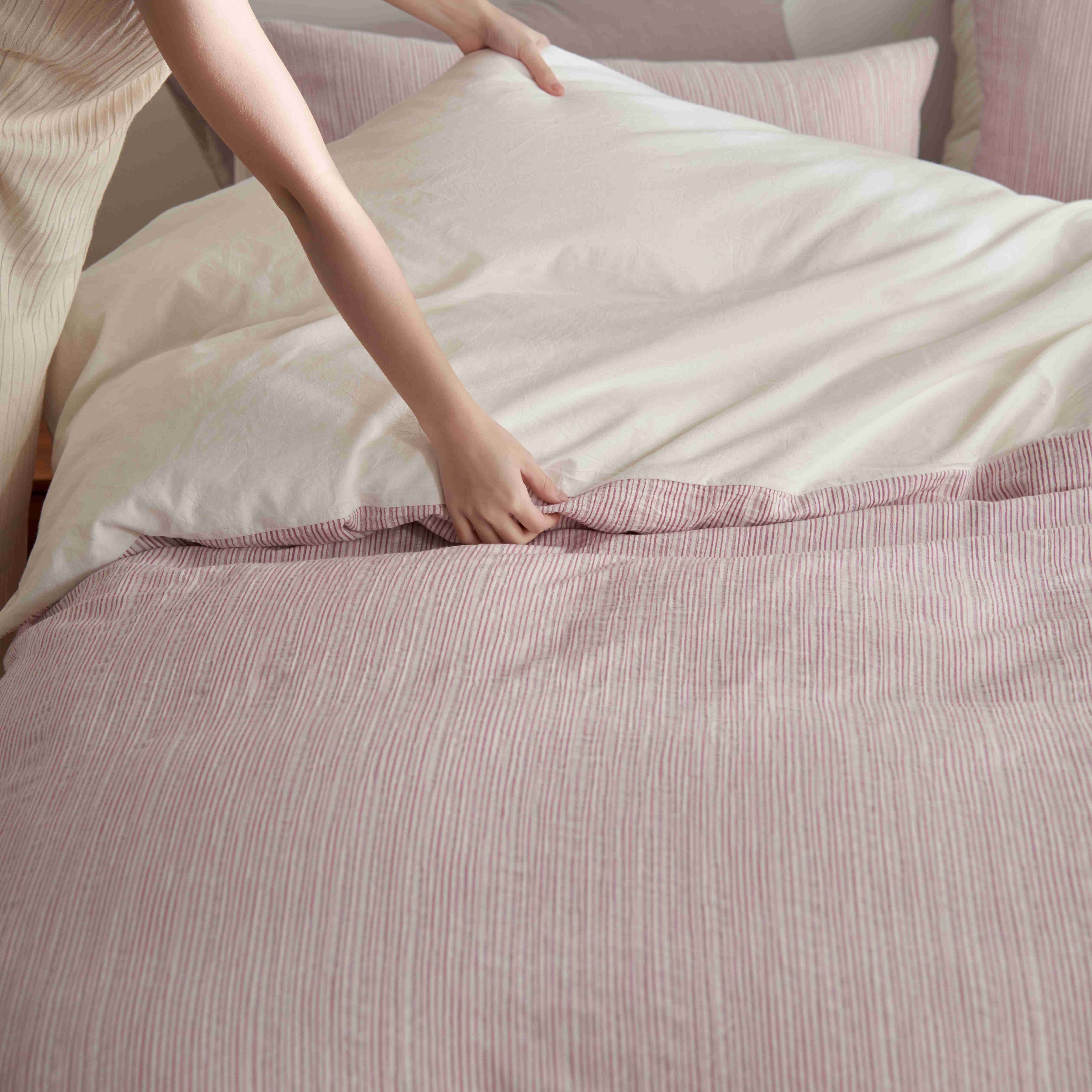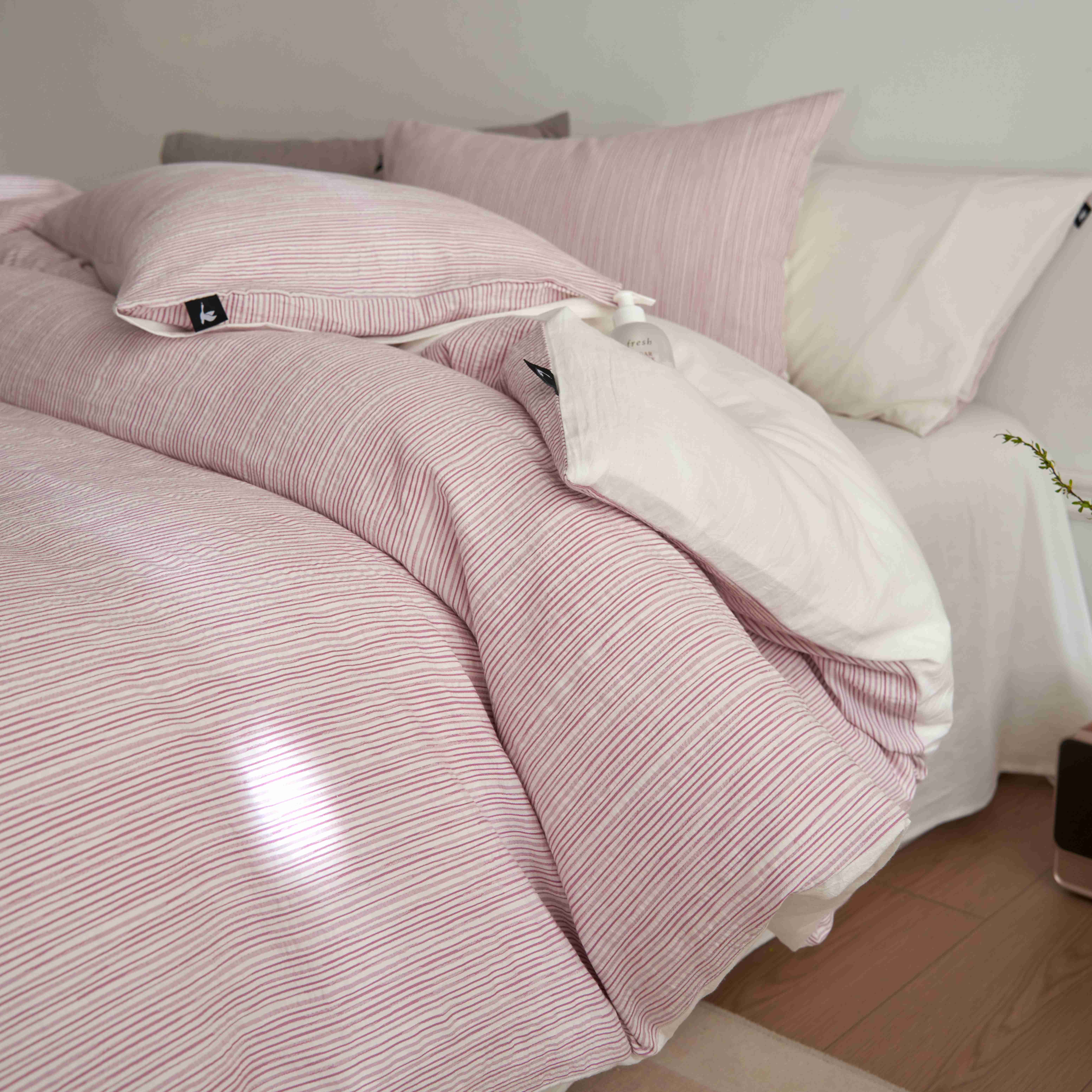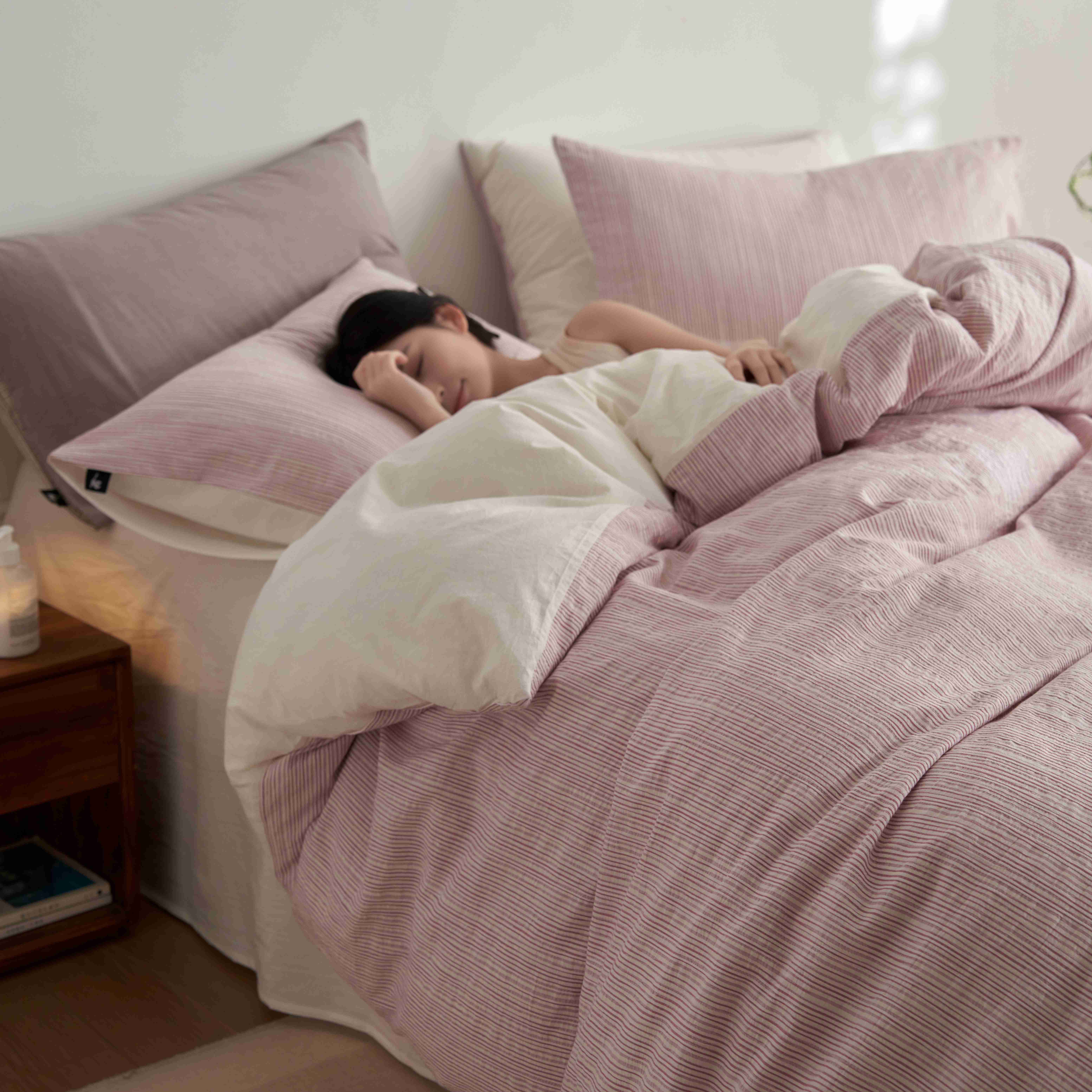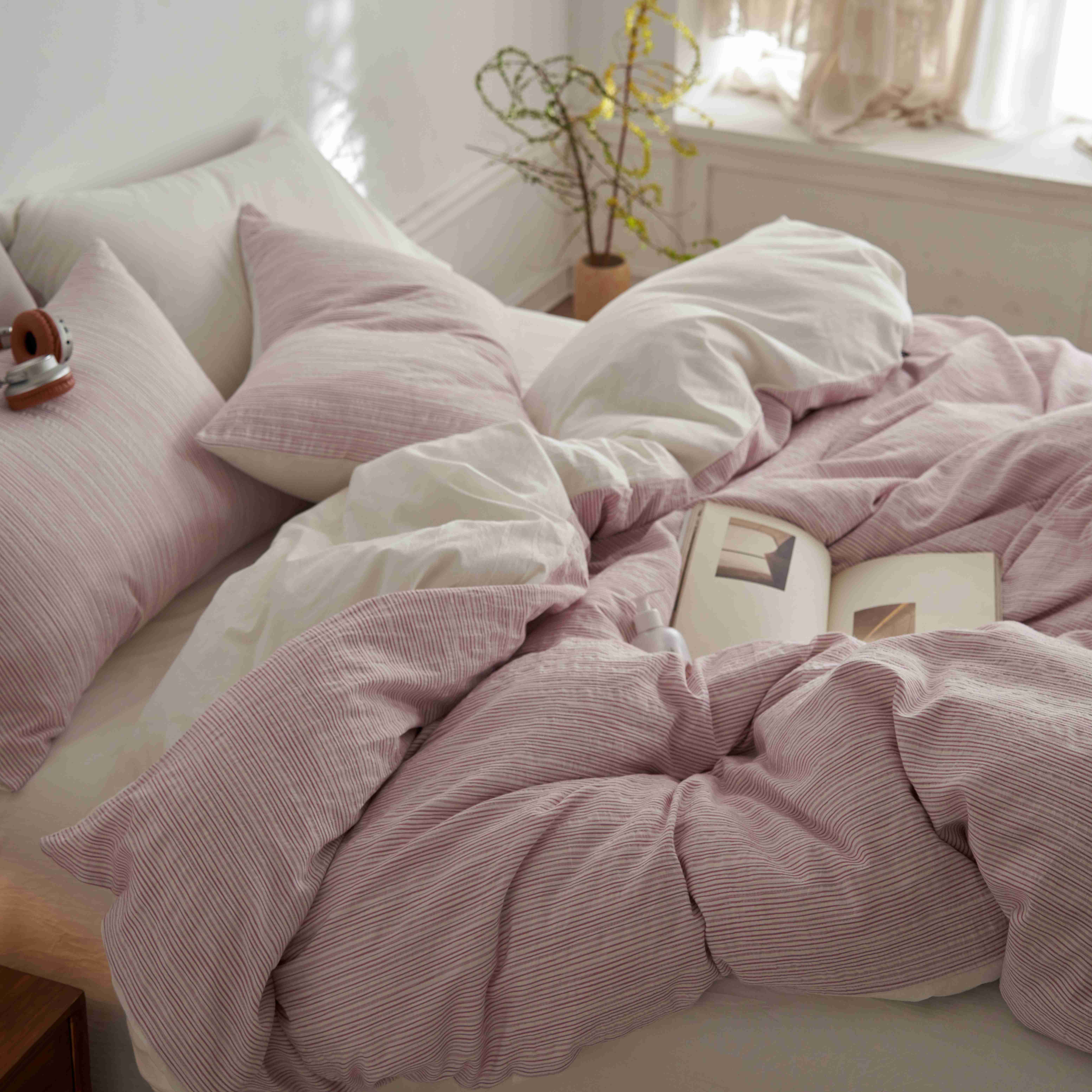 商品名称:安莱生活 2025新款60s色织大提花秘境条纹四件套系列 藕粉混条