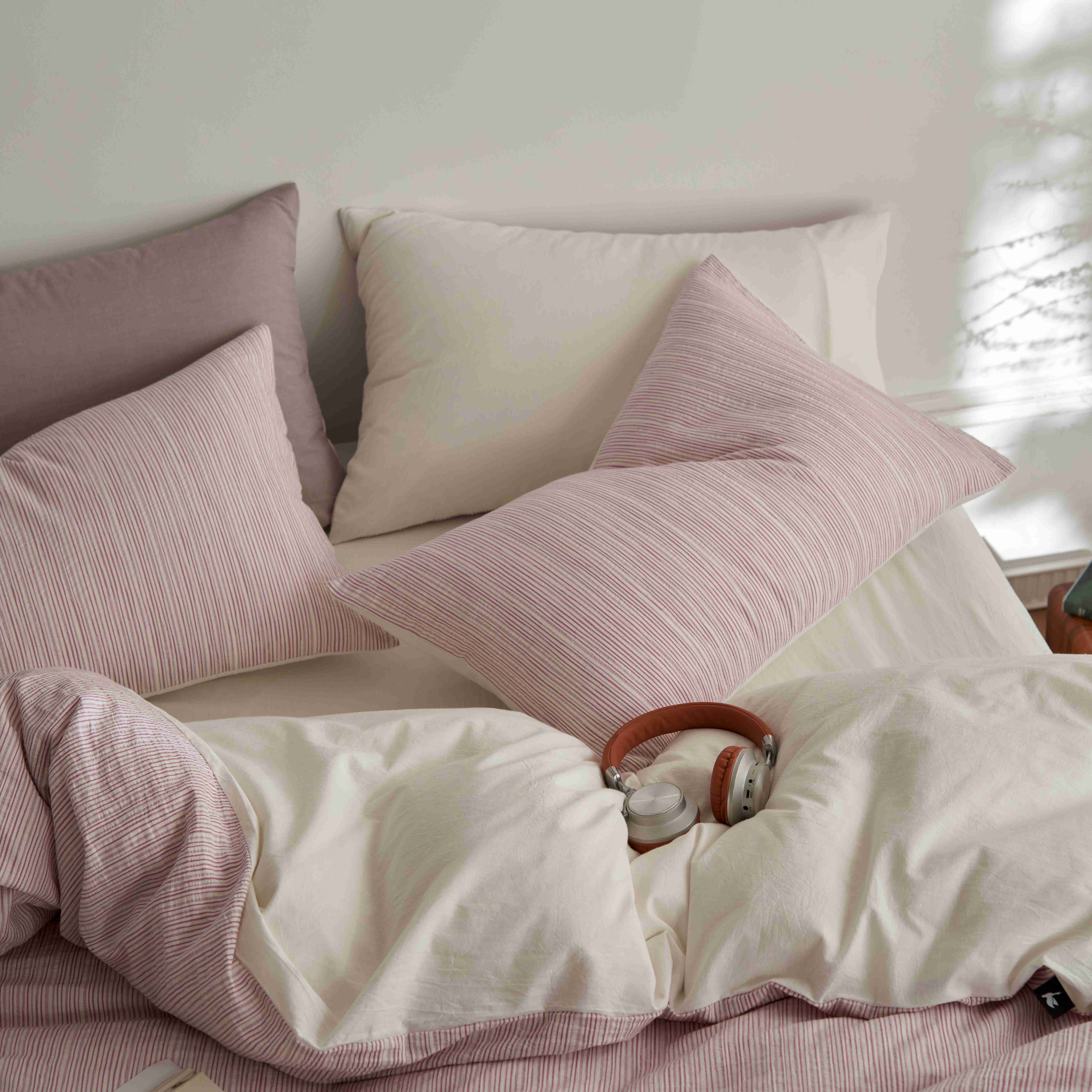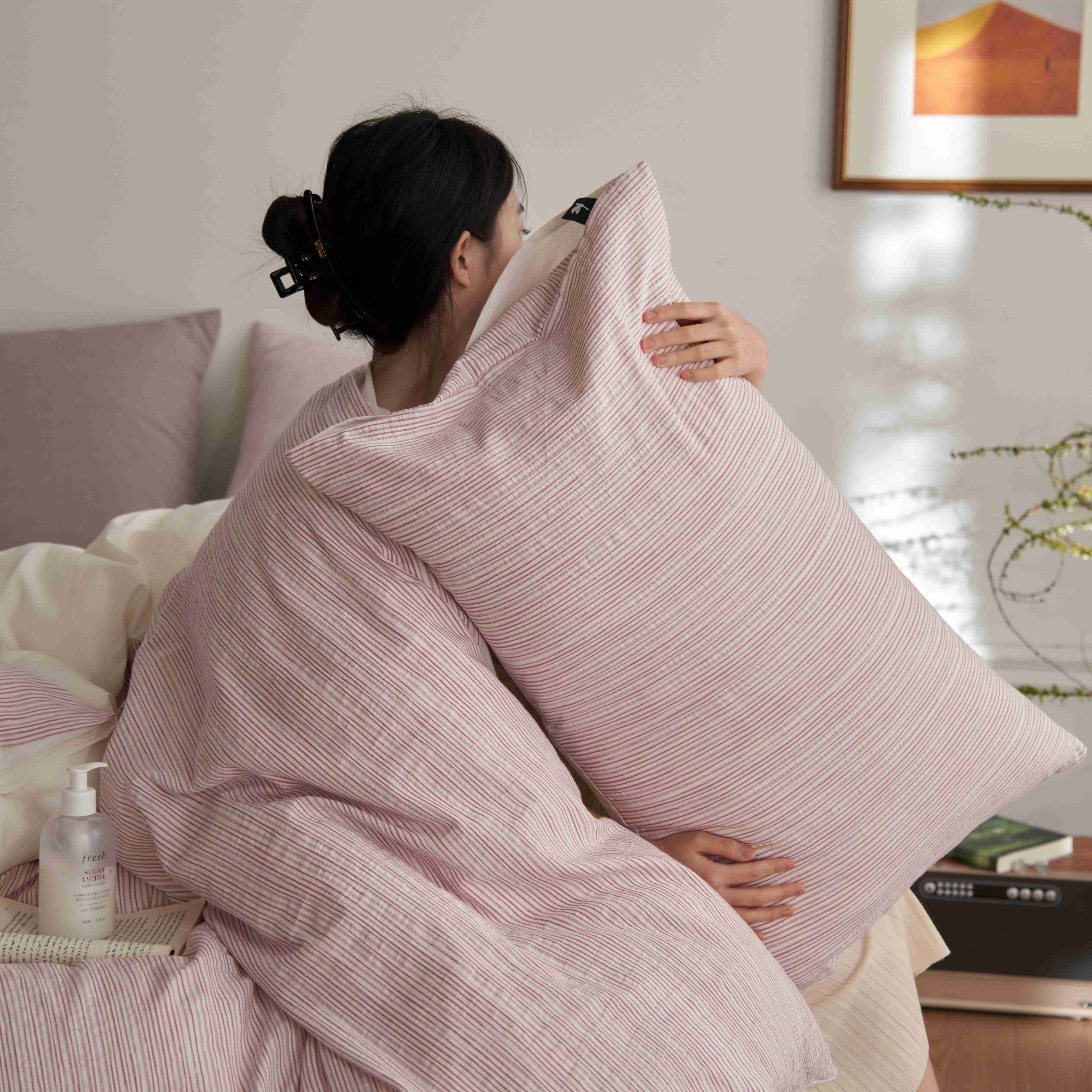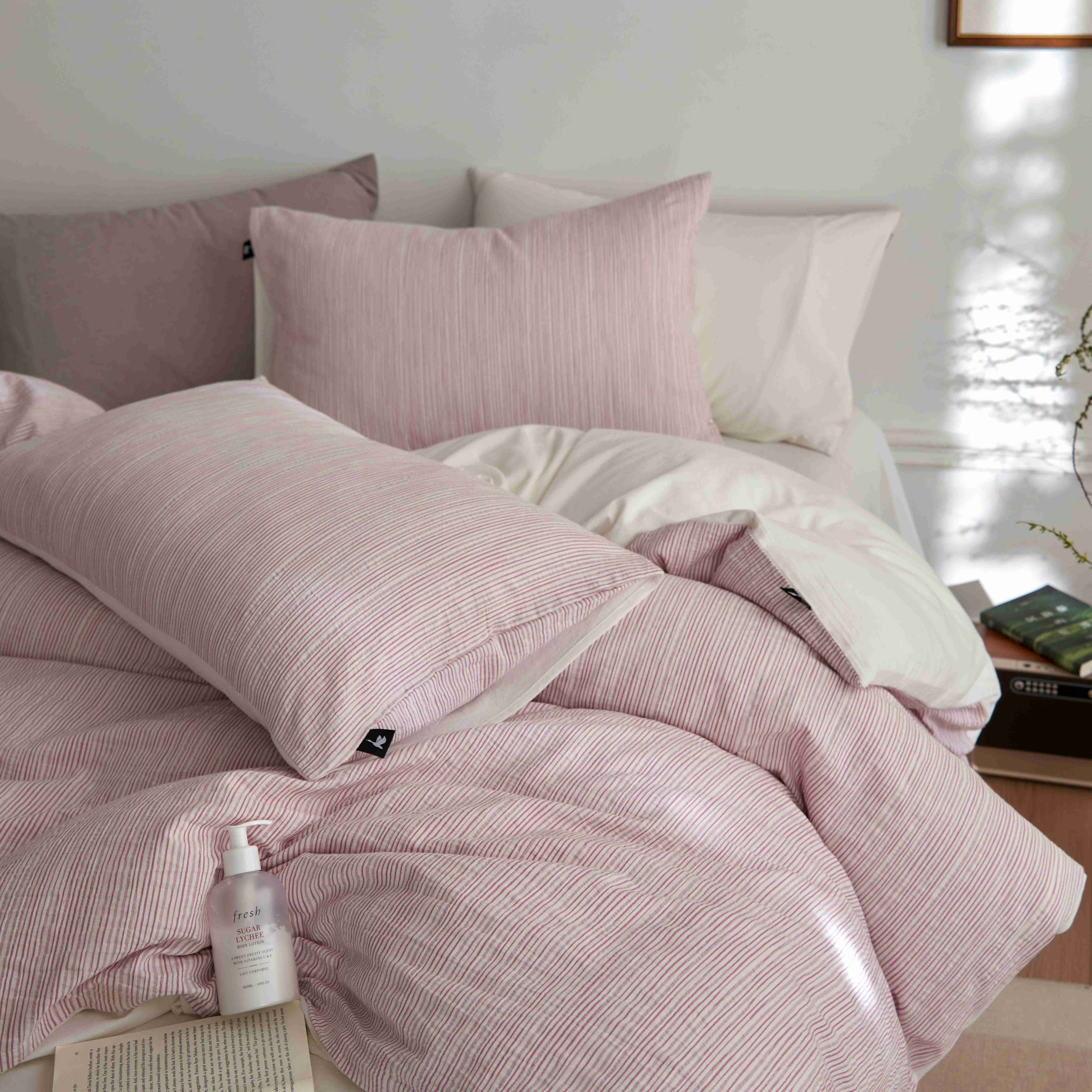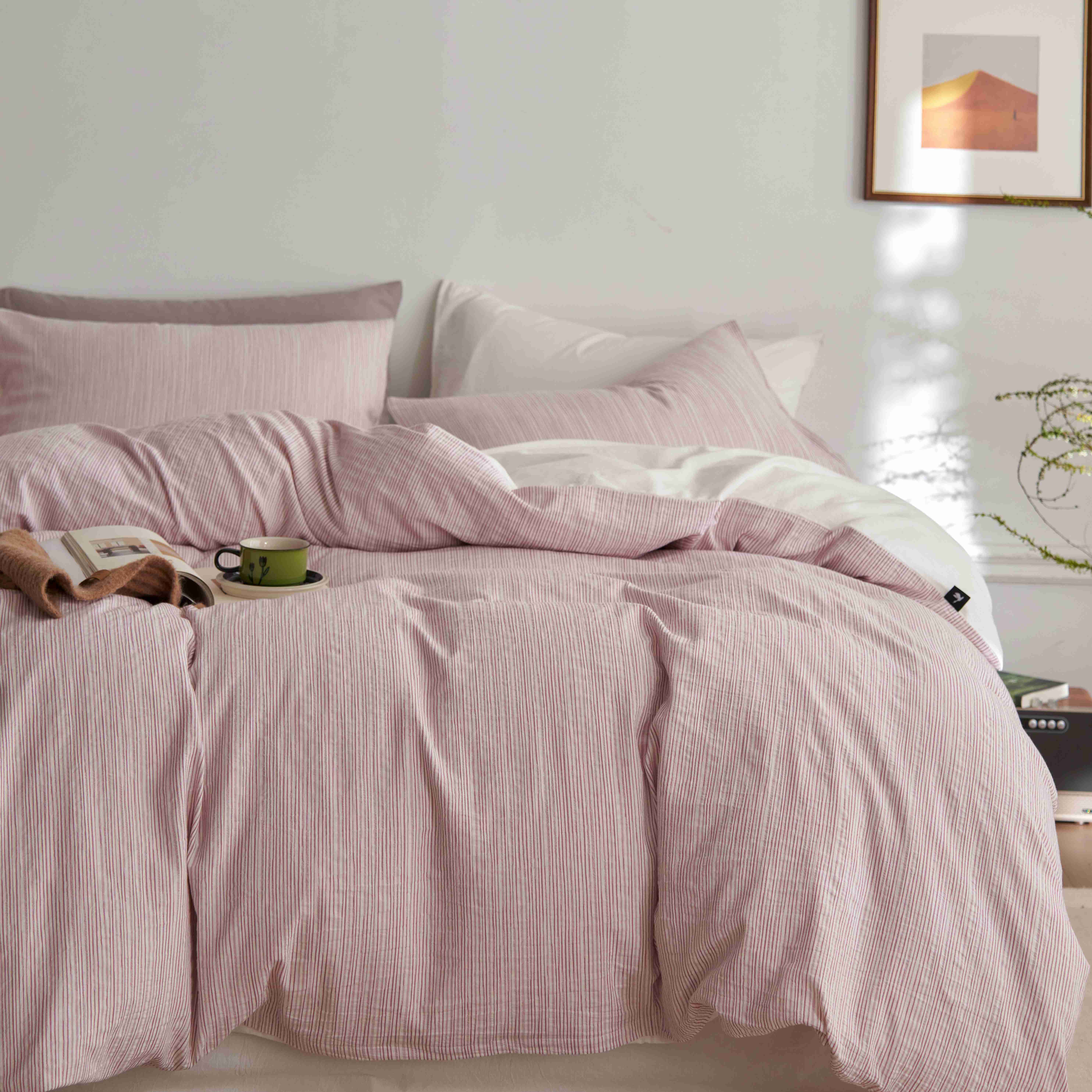 商品名称:安莱生活 2025新款60s色织大提花秘境条纹四件套系列 藕粉混条