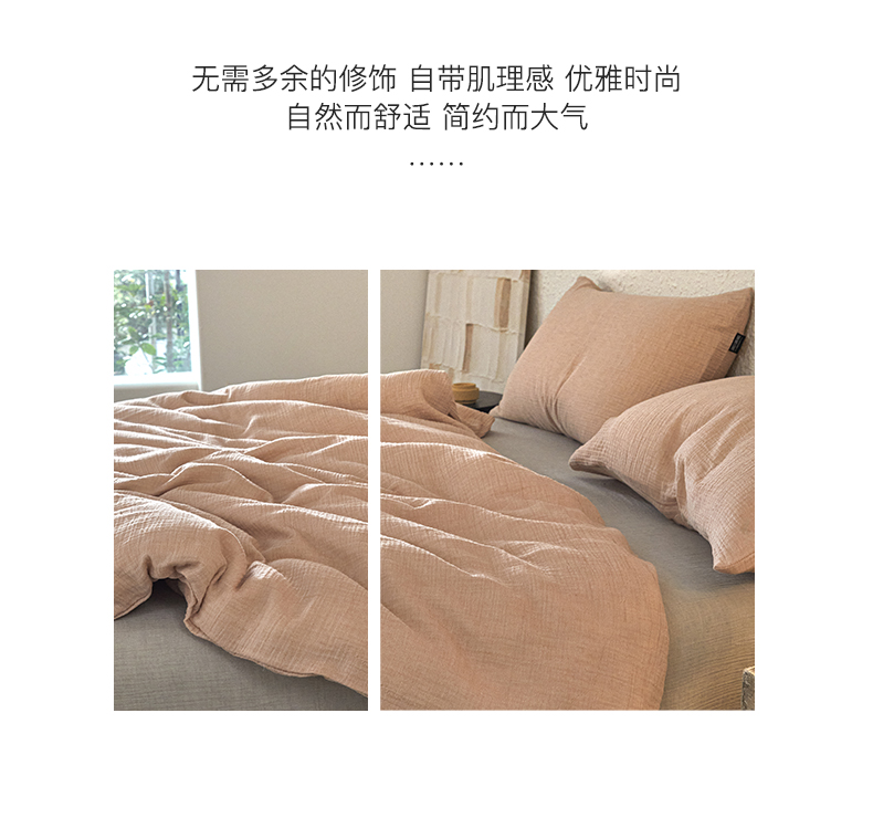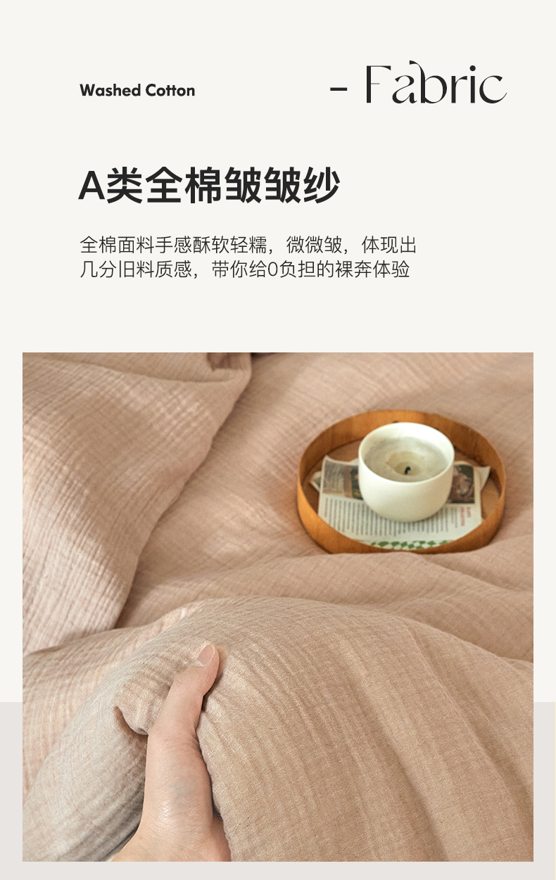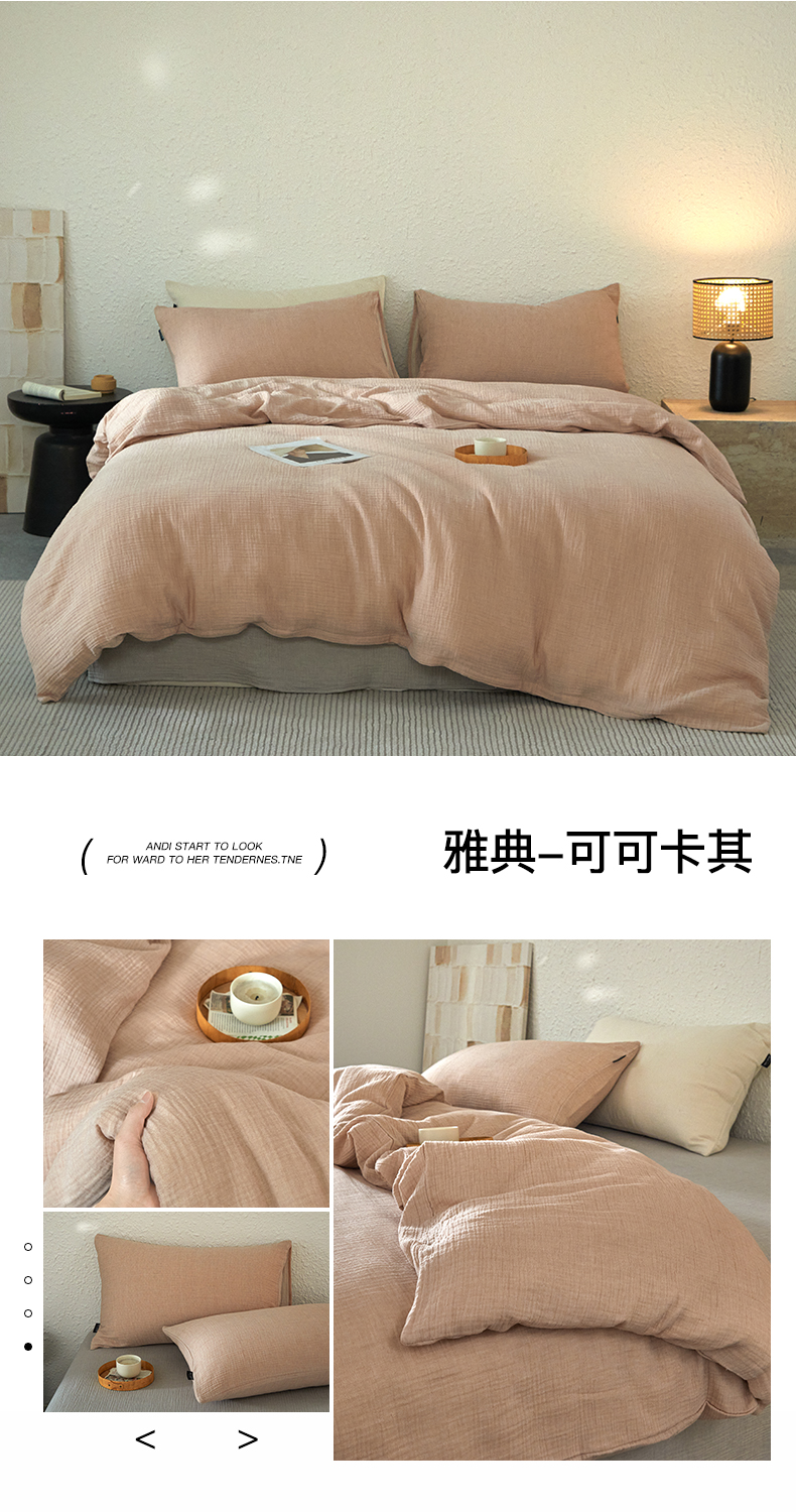 商品名称:格里芬家纺 2025新款全棉水洗纯色双层皱皱纱四件套-雅典 雅典-可可卡其