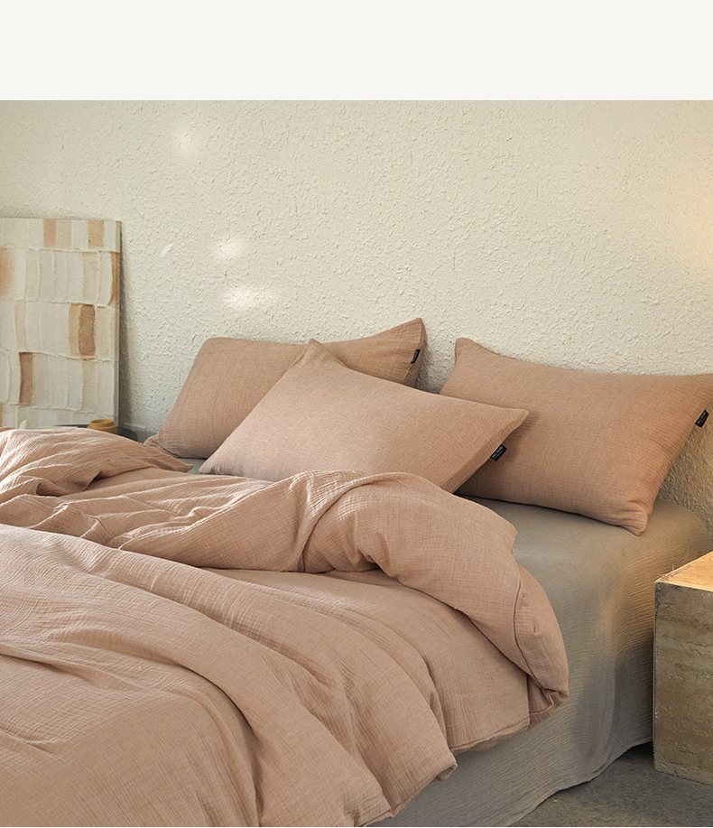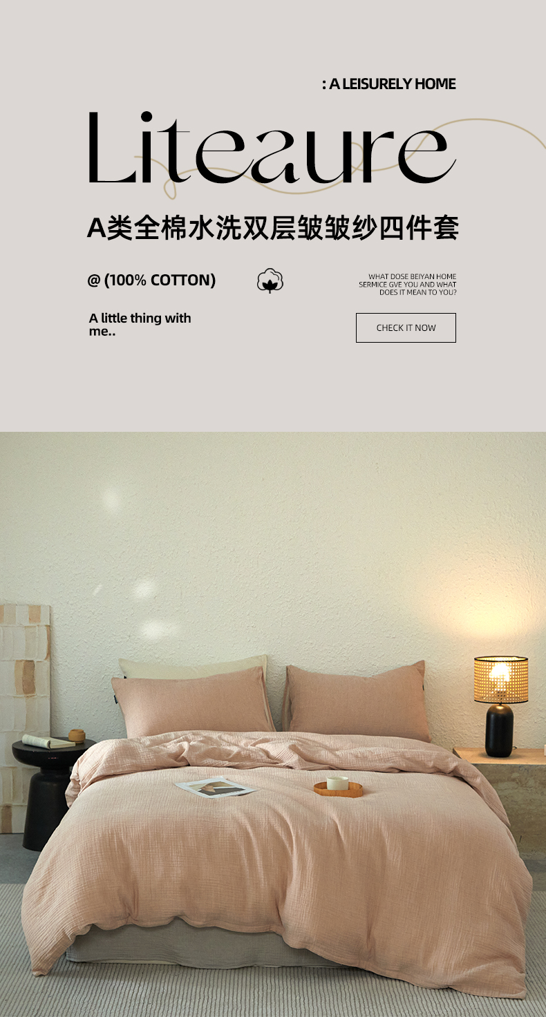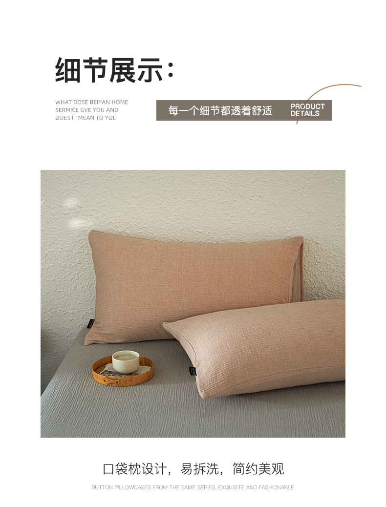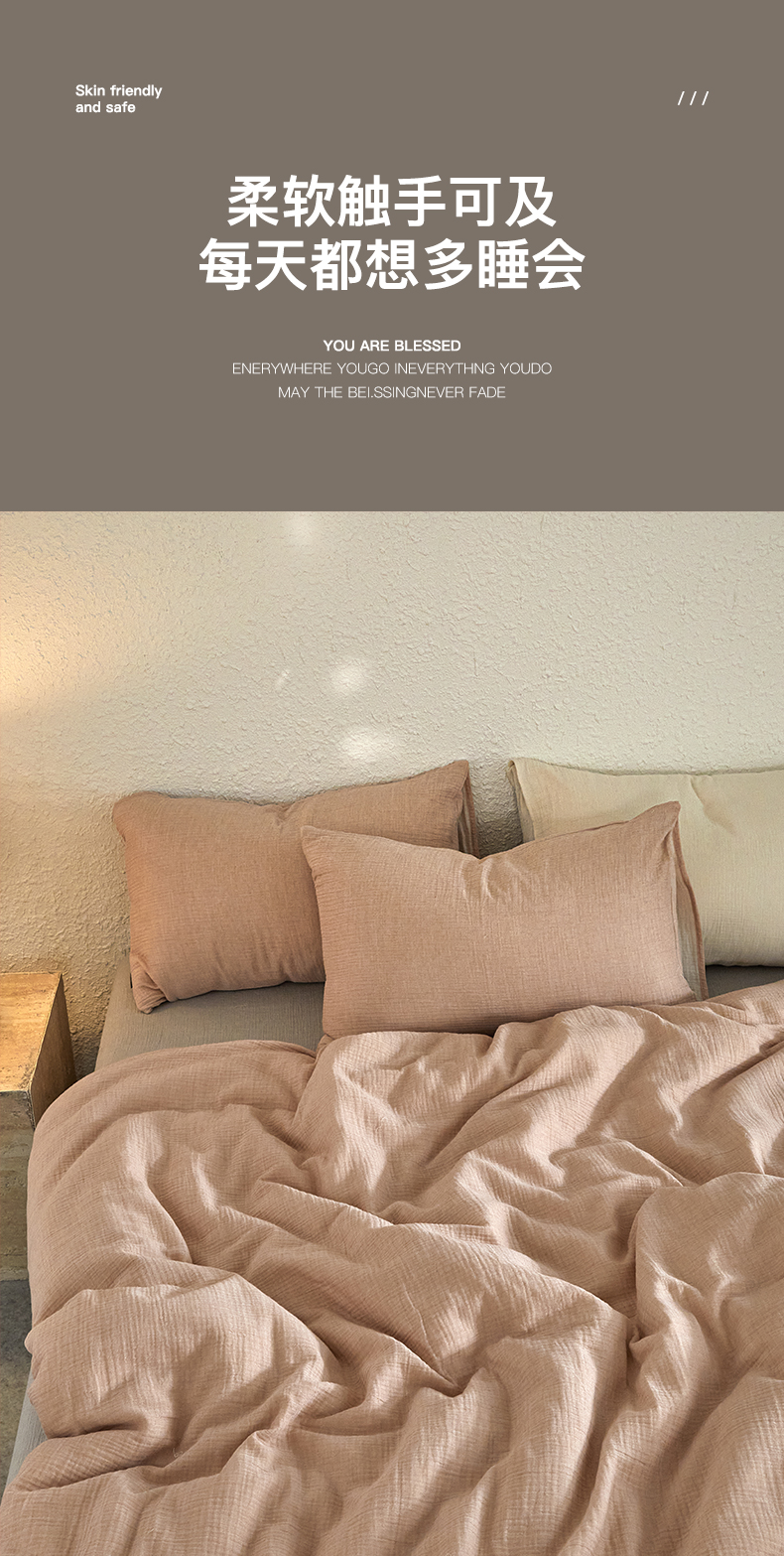 商品名称:格里芬家纺 2025新款全棉水洗纯色双层皱皱纱四件套-雅典 雅典-可可卡其