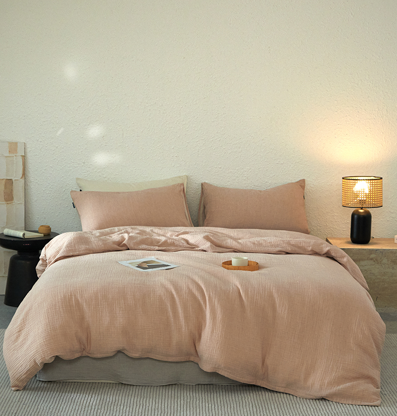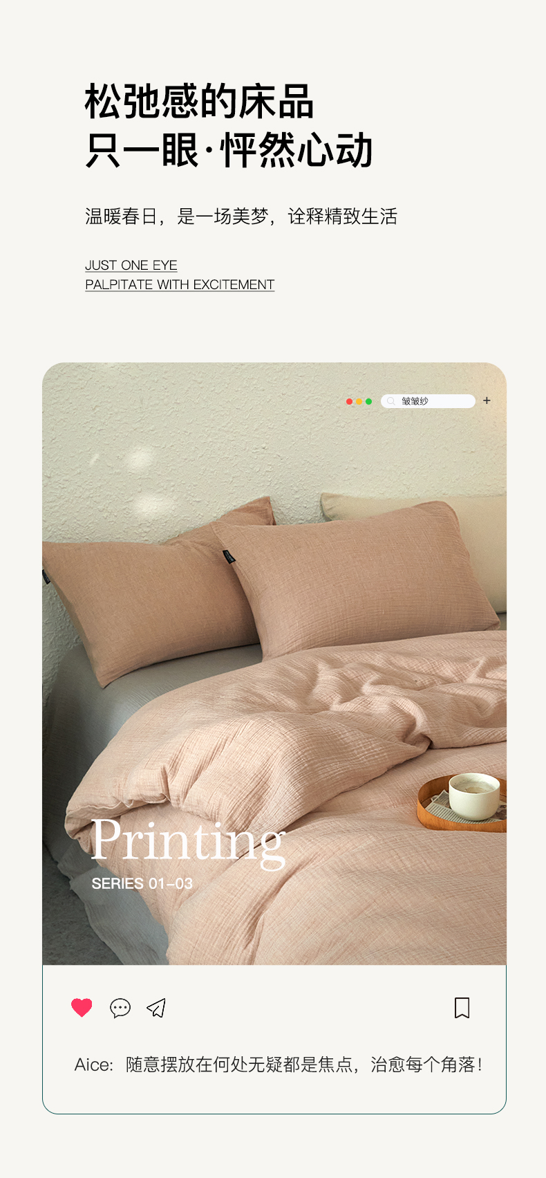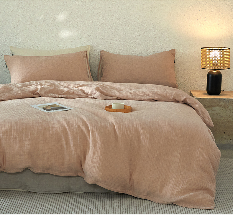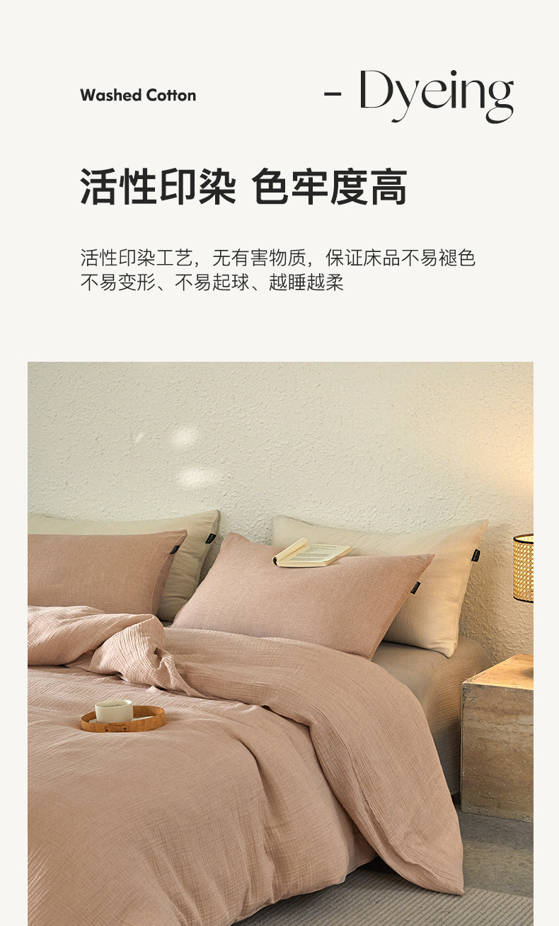 (总)格里芬家纺 2025新款全棉水洗纯色双层皱皱纱四件套-雅典,雅典-黛蓝,雅典-可可卡其,雅典-木槿紫,雅典-奶昔白,雅典-牛油果绿,雅典-蔷薇粉