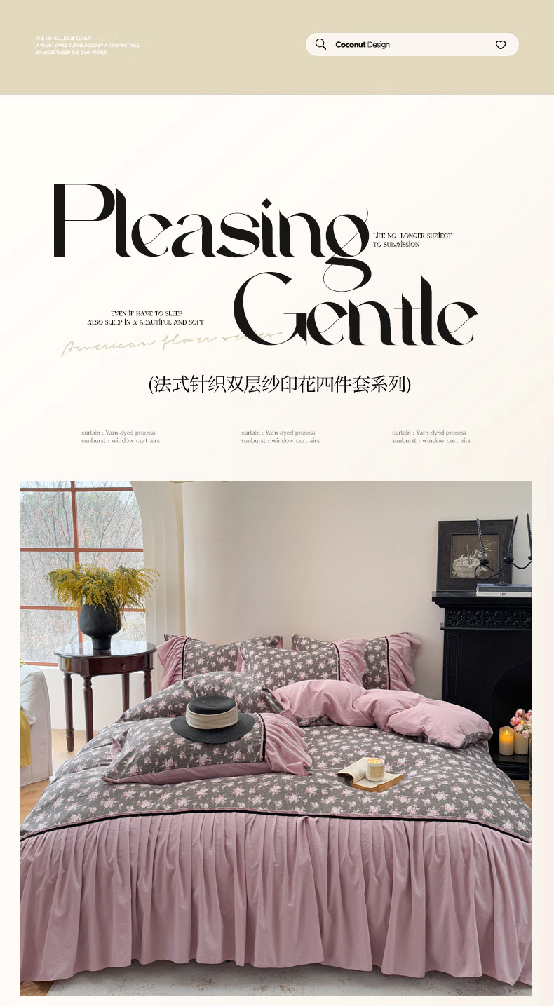 当前位置: 91家纺网 > 商品网购 > 床品套件 > 四件套 > 其它四件套 > 沐慕 2025新款法式针织双层纱印花系列四件套 美琳