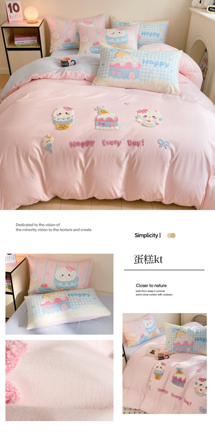 (总)沐慕 2025新款A类200g加厚雪花绒180g牛奶绒四件套,黄油小熊,爱心小熊,豹纹猫咪,彩虹,草莓兔,蛋糕兔,蛋糕小兔,粉嫩郁金香,花花粉兔,可爱熊,小橘子,星星月亮,熊猫伙伴,雪纳瑞,字母萌宠
