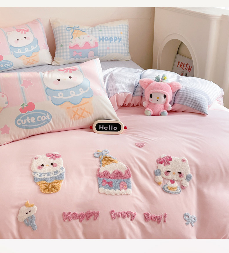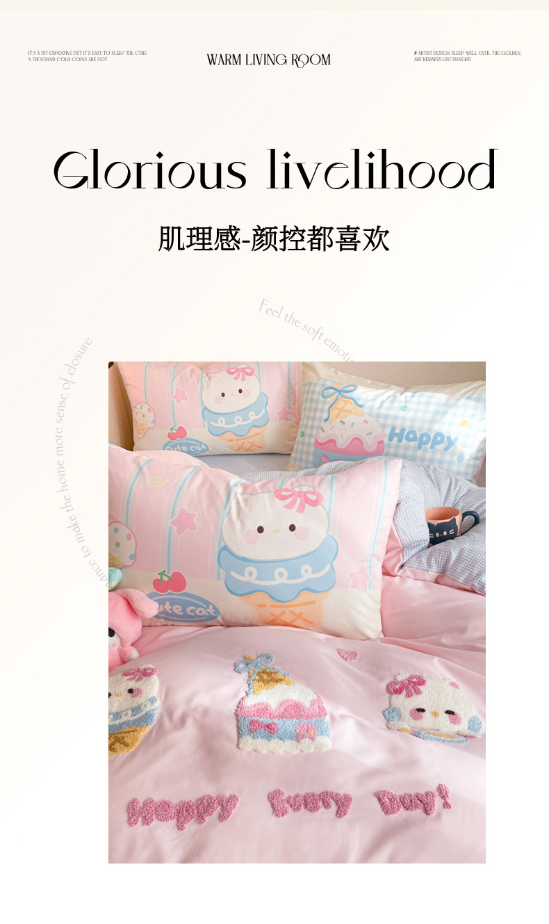 (总)沐慕 2025新款高克重花边款牛奶绒四件套,花边-蛋糕猫咪,花边-彩虹伙伴,花边-哈宁小狗,花边-卡其块块狗,花边-蓝块猫咪酱,花边-洛丽塔,花边-猫咪仙子,花边-玫瑰粉喵,花边-苹果猫猫,花边-三只小猫,花边-森林女孩