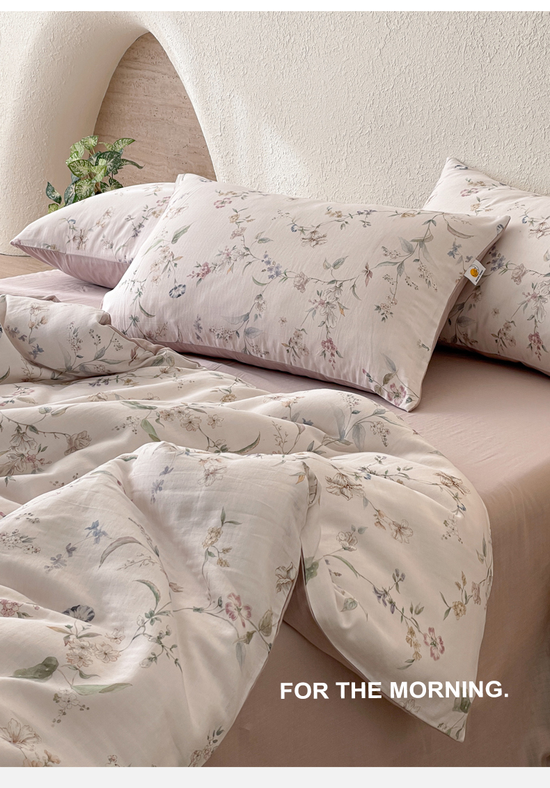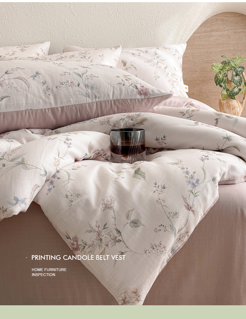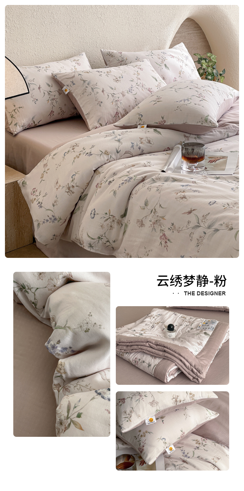 商品名称:慕晨 2025新款全棉双层纱四件套莱赛尔夏被莱赛尔夏被四件套天丝夏凉被直播 云绣梦静-粉