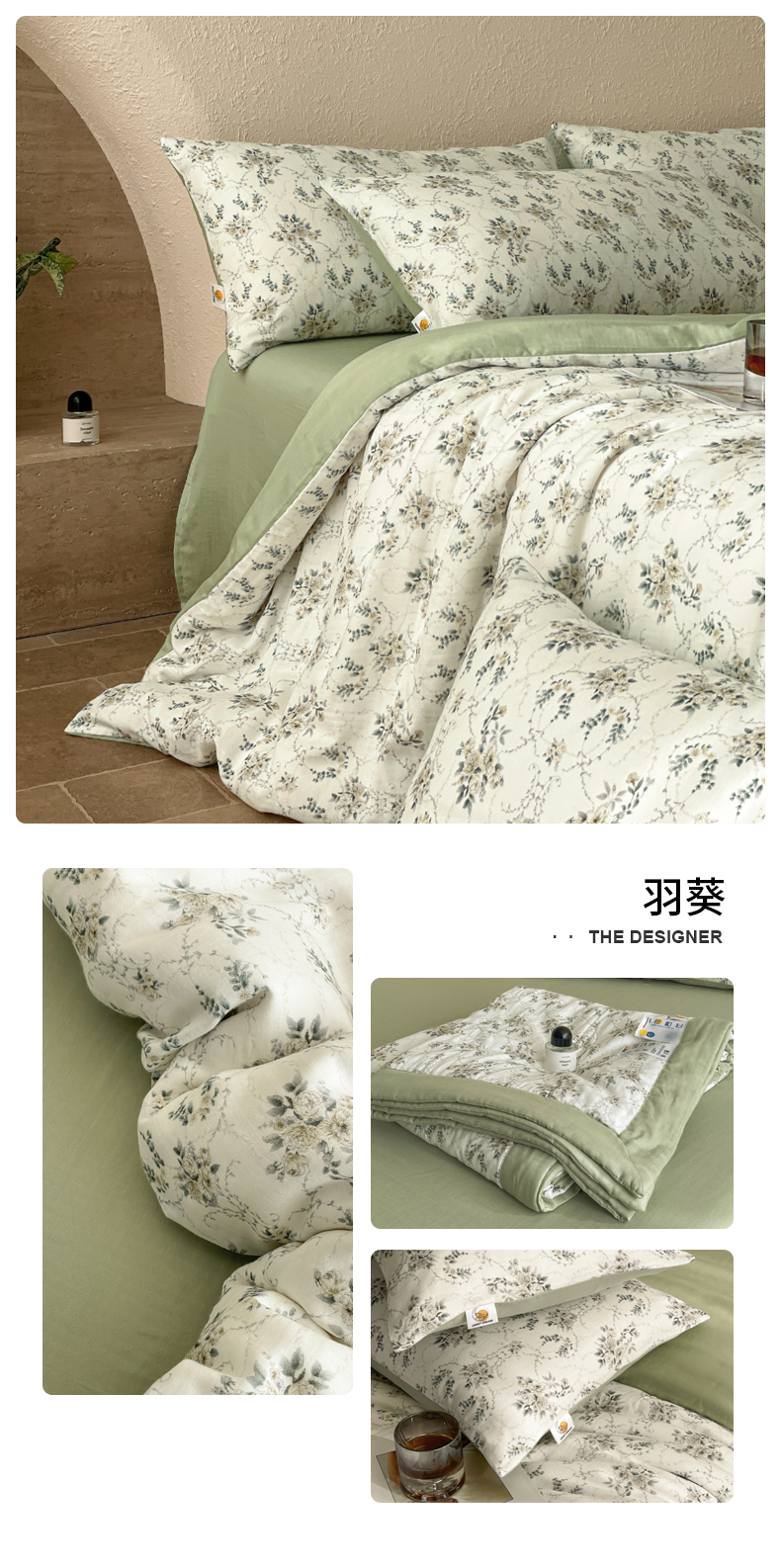 慕晨 2025新款全棉双层纱四件套莱赛尔夏被莱赛尔夏被四件套天丝夏凉被直播 羽葵