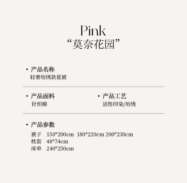 商品名称:(总)芙绣家纺 2025新款轻奢针织棉绗绣款夏被夏凉被空调被-莫奈花园
