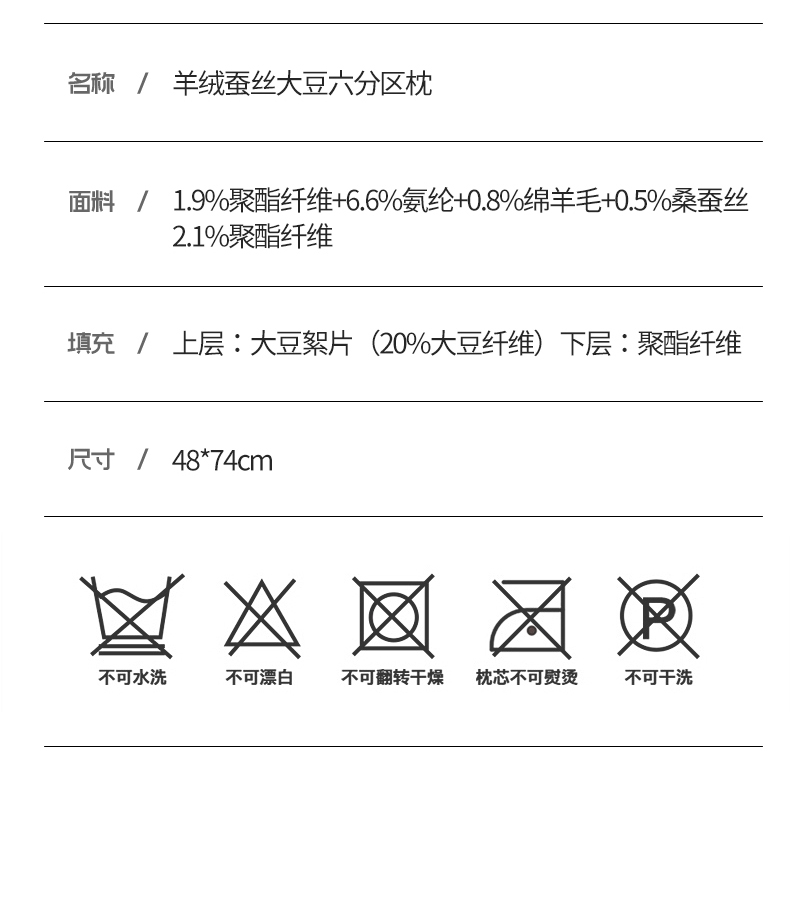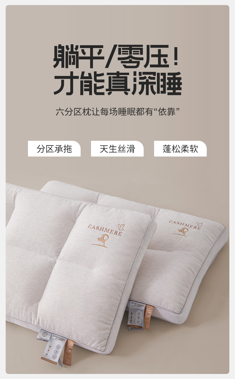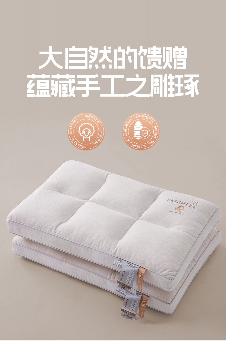 当前位置: 91家纺网 > 商品网购 > 枕头/枕芯/保健枕/颈椎枕 > 普通枕芯 > 麦肯锡 2025新款羊绒蚕丝大豆六分区枕 灰色48*74