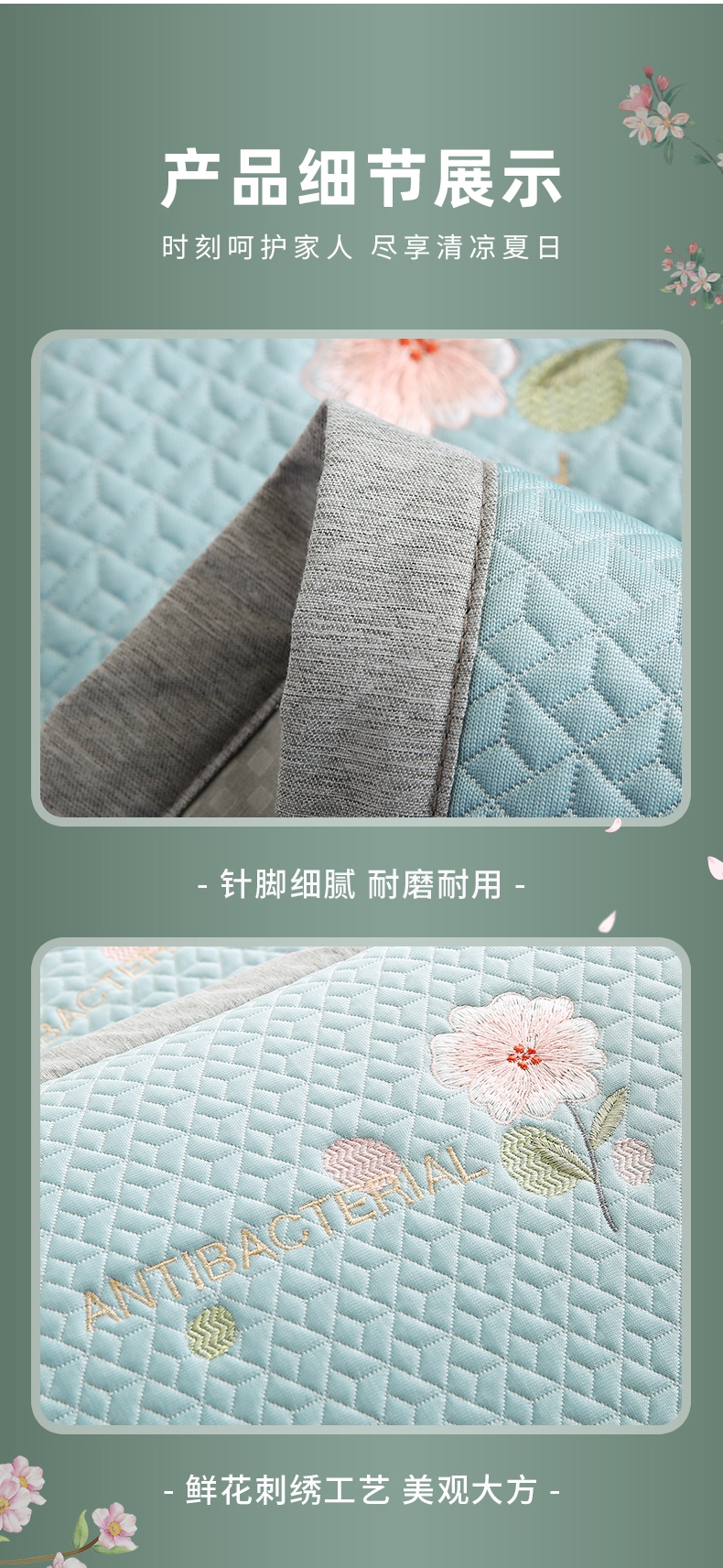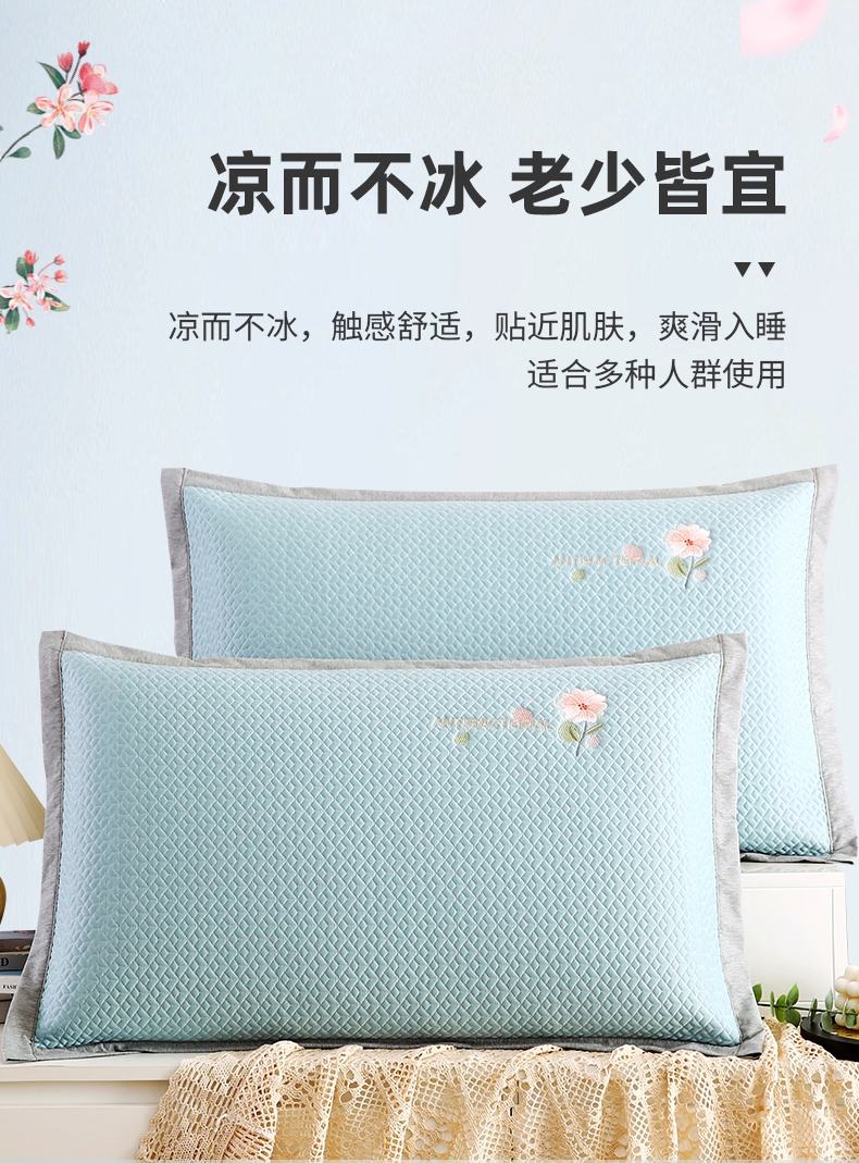 商品名称:小牛席业 2025新款鲜花刺绣冷感豆豆枕套凉枕套夏天枕套冰丝枕套竹枕套藤枕套冰藤枕套 鲜花冷感豆豆夏凉枕套-蓝色
