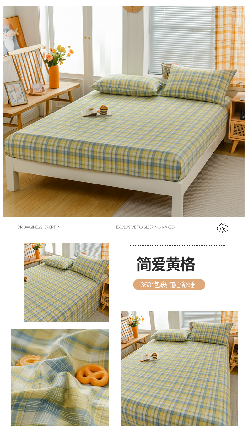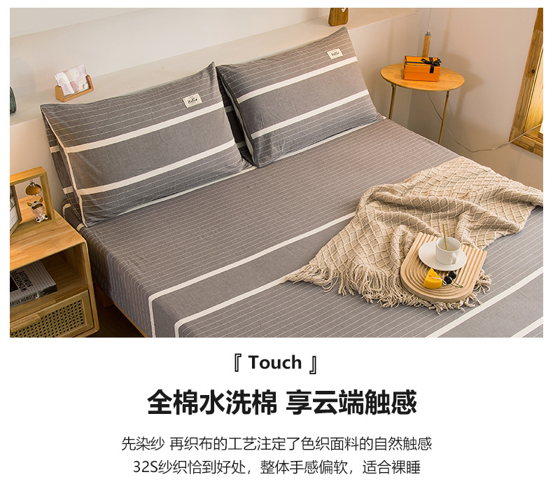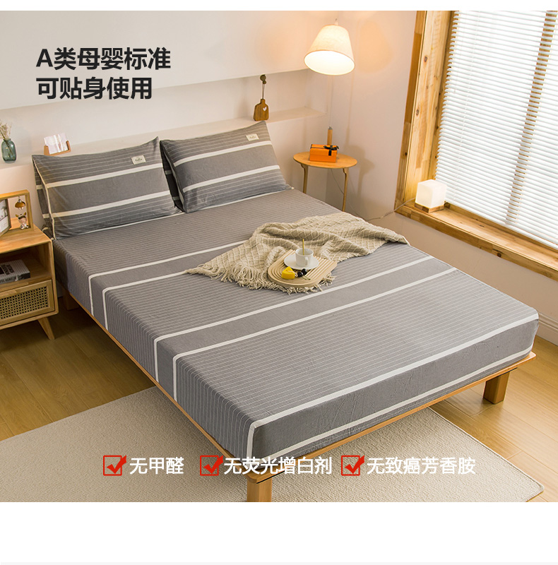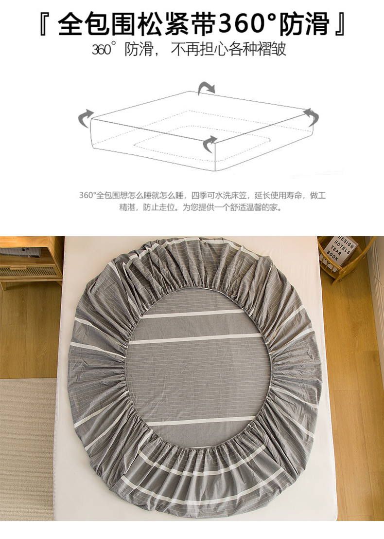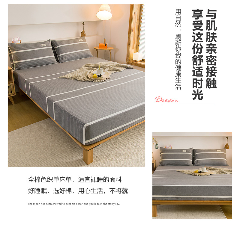 柠萌家居 2025新款A类全棉色织水洗棉单床笠 宽双线冷灰
