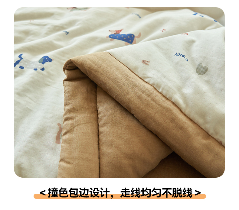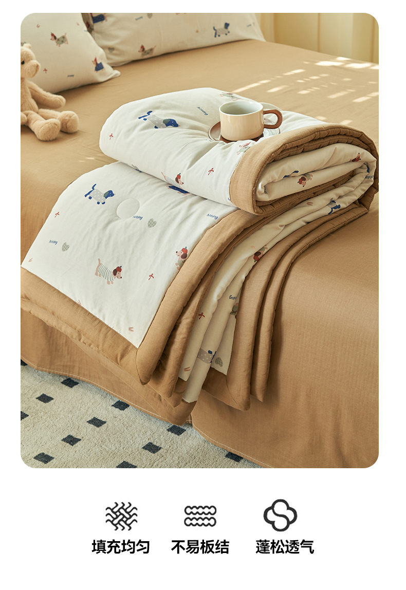 当前位置: 91家纺网 > 商品网购 > 床品套件 > 四件套 > 夏被四件套 > 金鹰 2025新款A类纯棉双层纱大豆夏被四件套全棉夏凉被空调被 圣诞狗狗