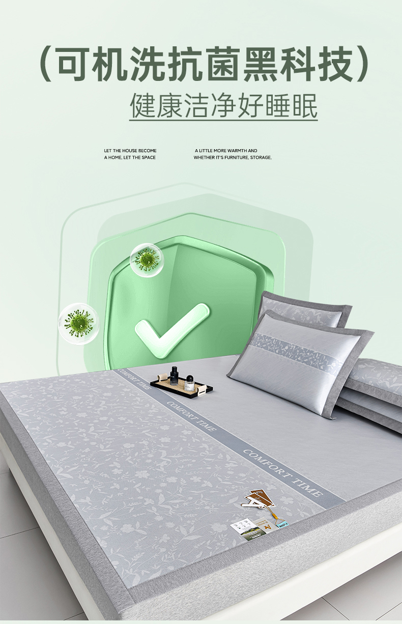 商品名称:小牛席业 2025新款琉璃叶语-碳光冰丝席系列凉席藤席冰藤席冰丝席竹席空调席乳胶席凉感豆豆席 灰色