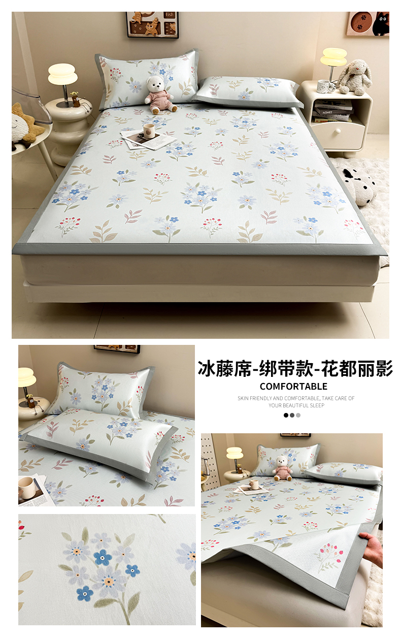 当前位置: 91家纺网 > 商品网购 > 床上用品 > 凉席 > 凉席套件 > 雯豆2025夏季新品冰藤印花凉席三件套平铺绑带款冰丝凉席三件套 冰藤席-绑带款-花都丽影