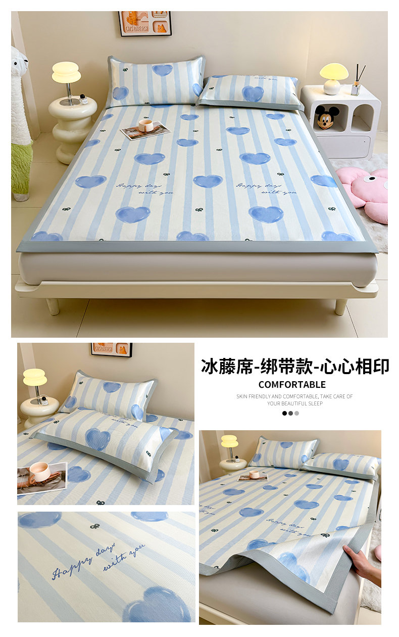当前位置: 91家纺网 > 商品网购 > 床上用品 > 凉席 > 凉席套件 > 雯豆2025夏季新品冰藤印花凉席三件套平铺绑带款冰丝凉席三件套 冰藤席-绑带款-心心相印