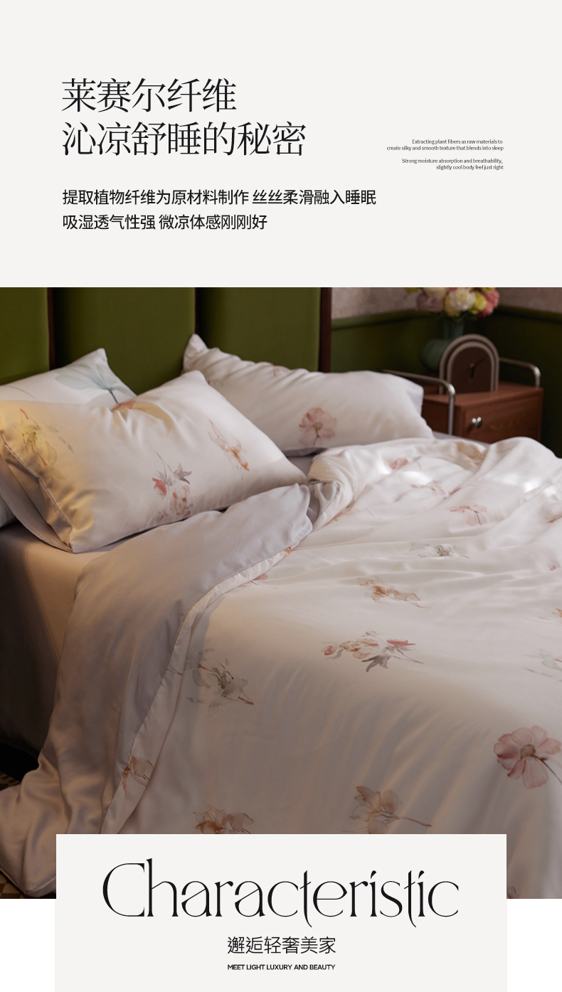 当前位置: 91家纺网 > 商品网购 > 床品套件 > 四件套 > 莱赛尔四件套 > 时年家纺 2025新款莱赛尔天丝印花系列四件套遥花知
