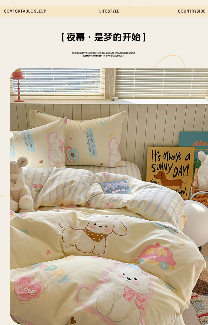 当前位置: 91家纺网 > 商品网购 > 床品套件 > 四件套 > 其它四件套 > 麦伦家居 2025新品 全棉卡通小清新跑量款系列四件套 萌趣乐园