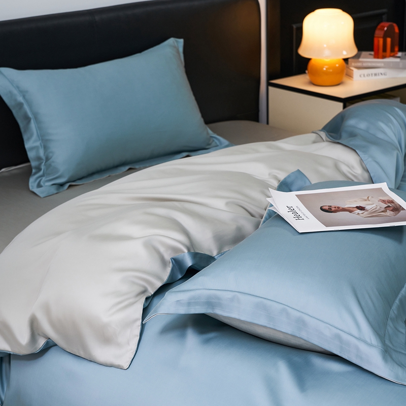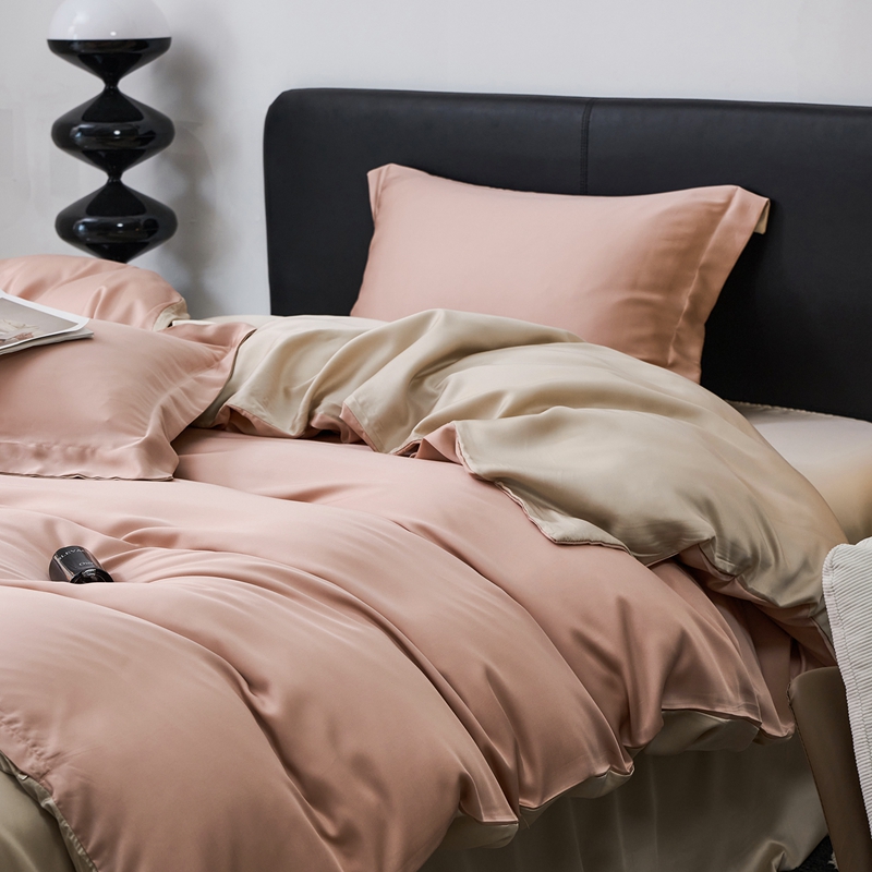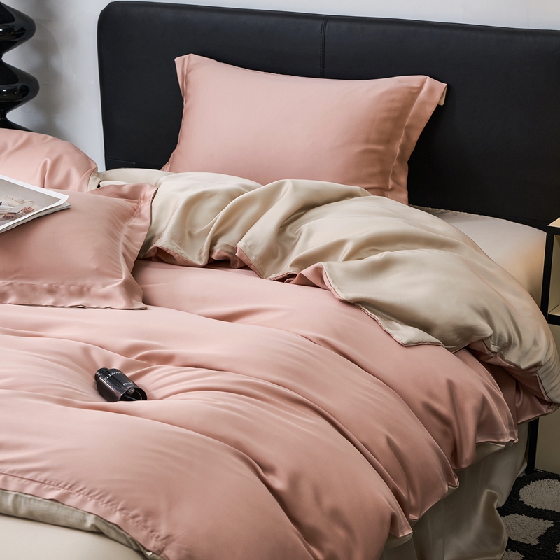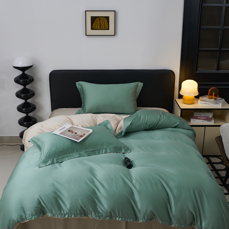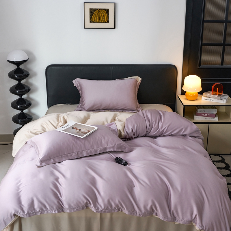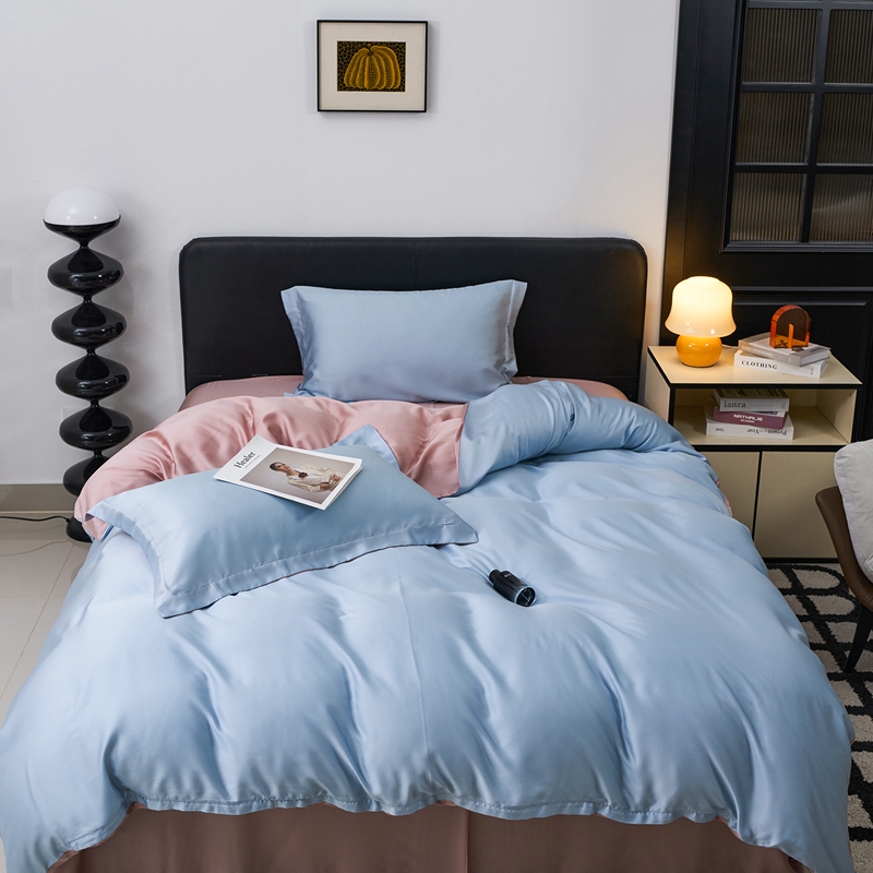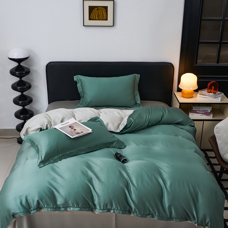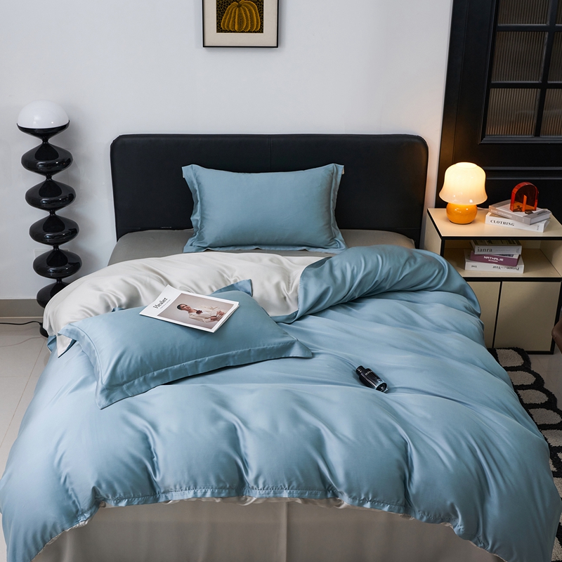 (总)于果 2025新款简约双拼兰精天丝四件套