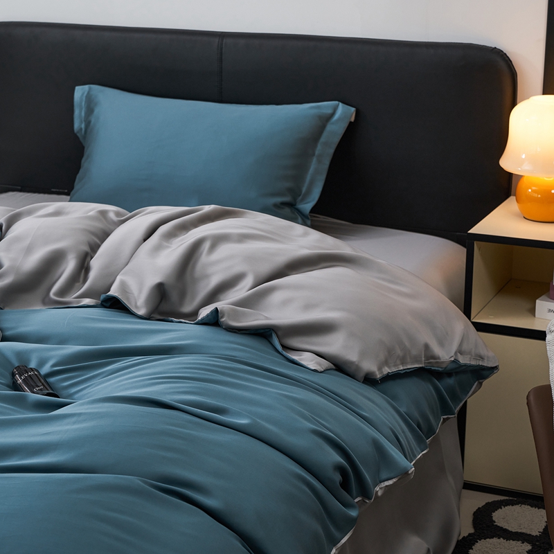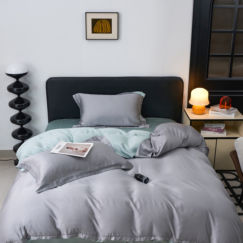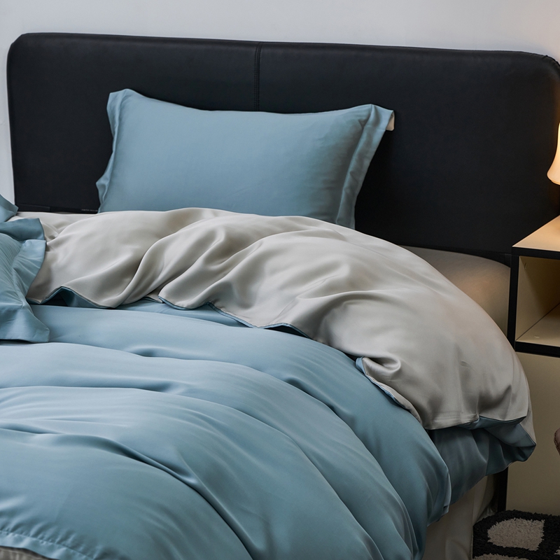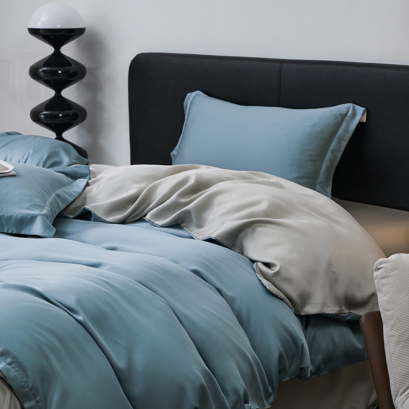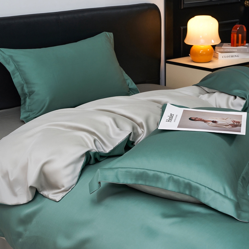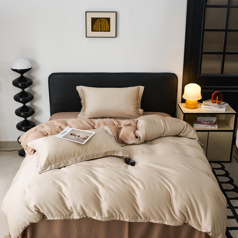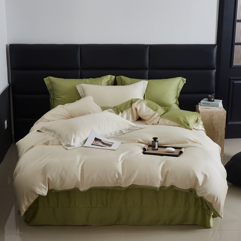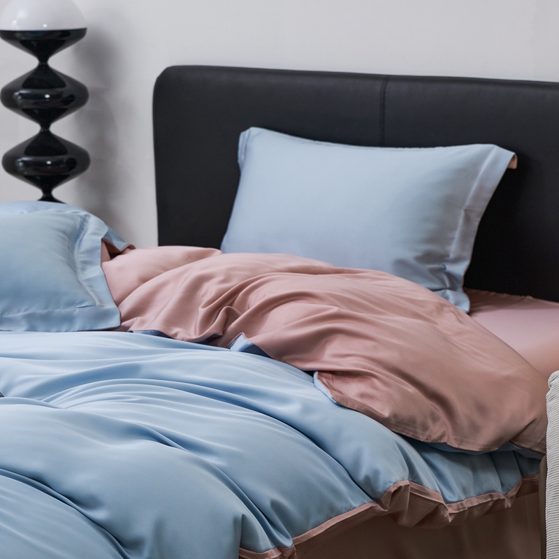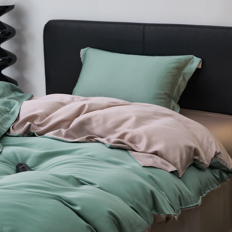 (总)于果 2025新款简约双拼兰精天丝四件套