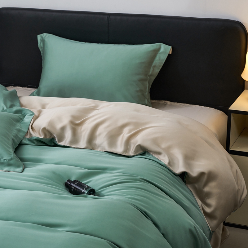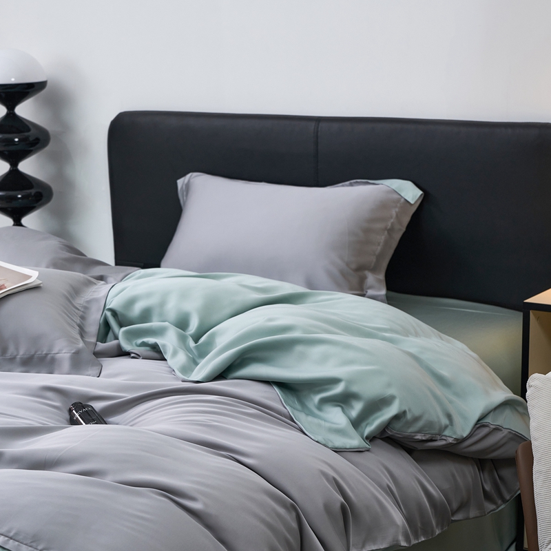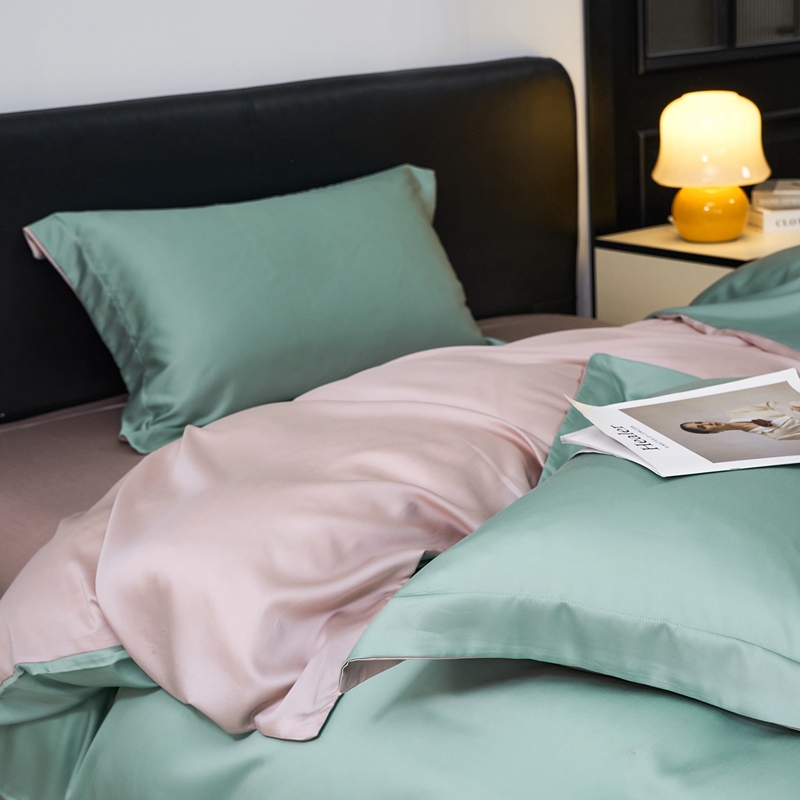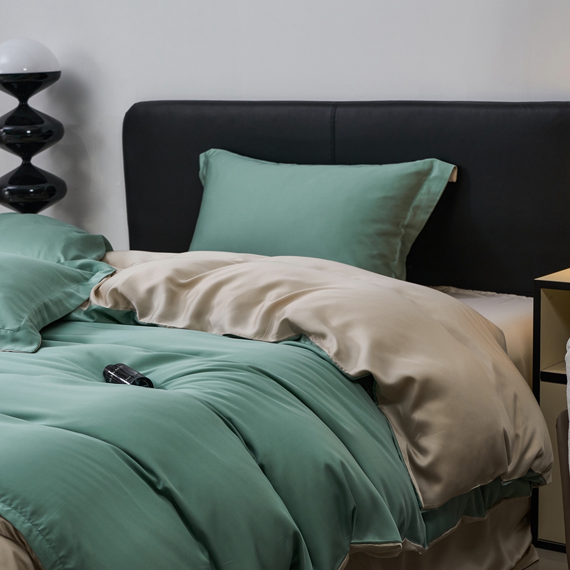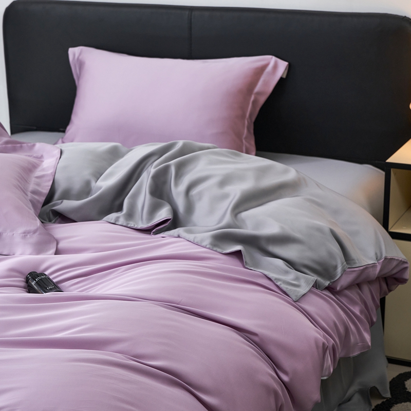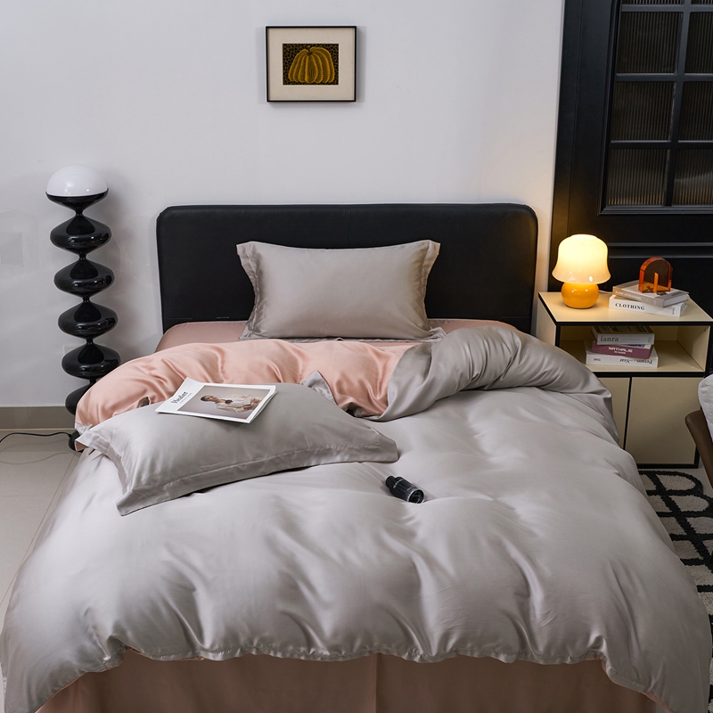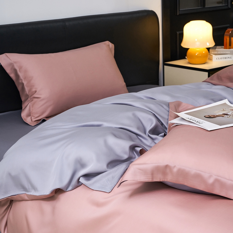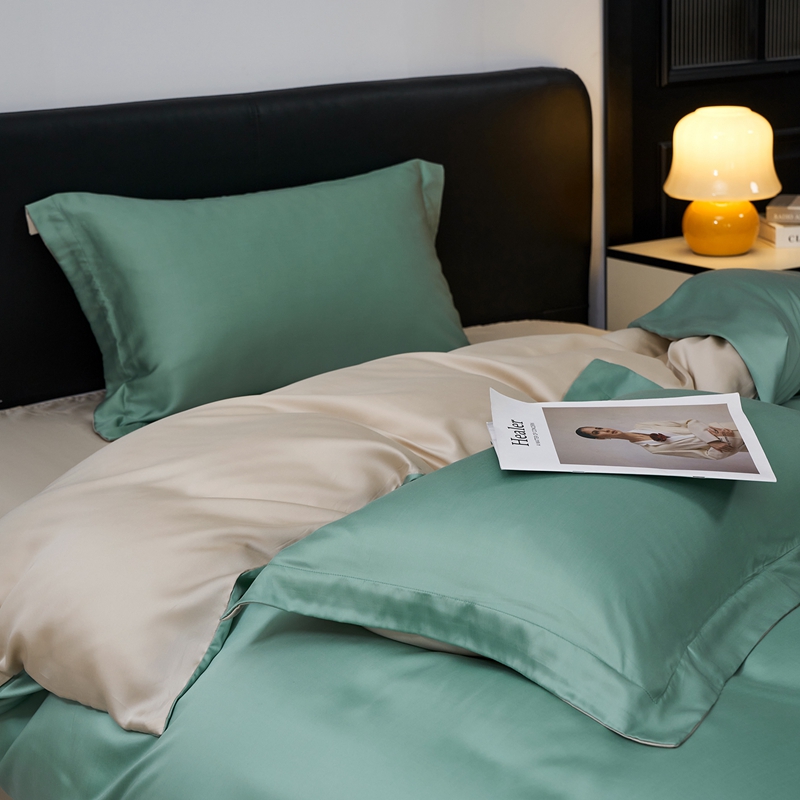 (总)于果 2025新款简约双拼兰精天丝四件套