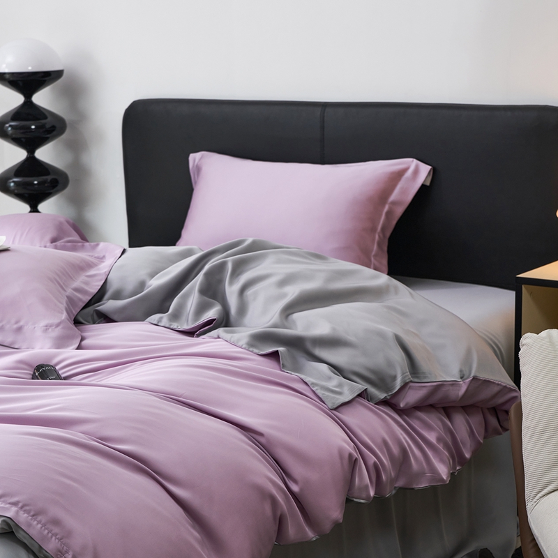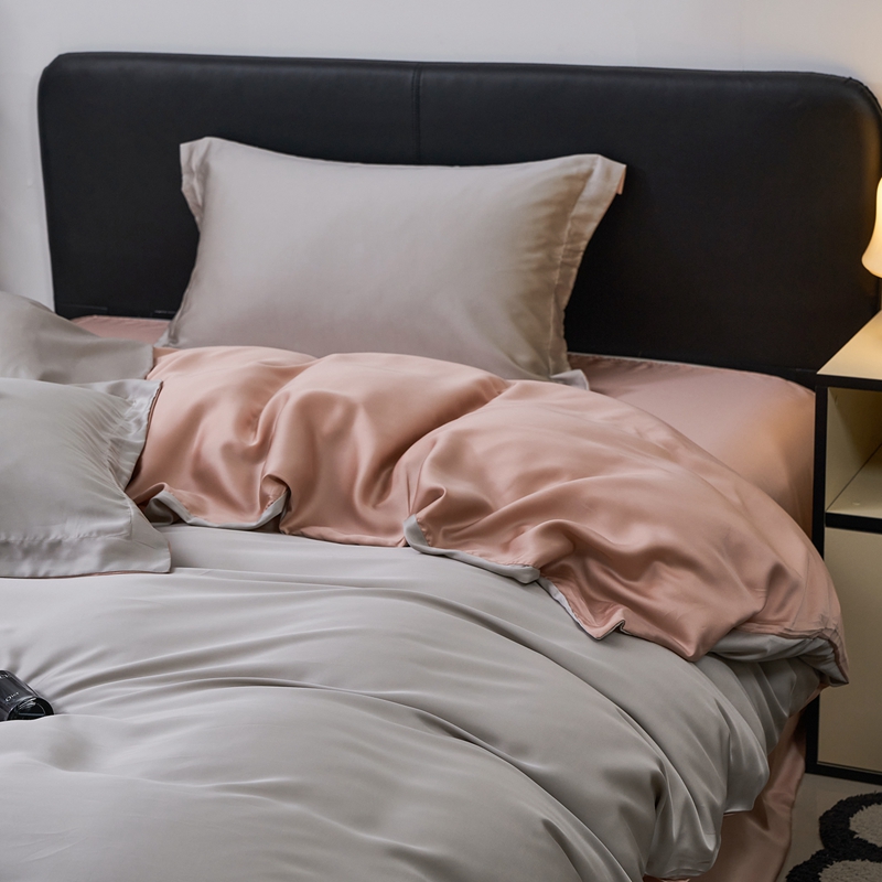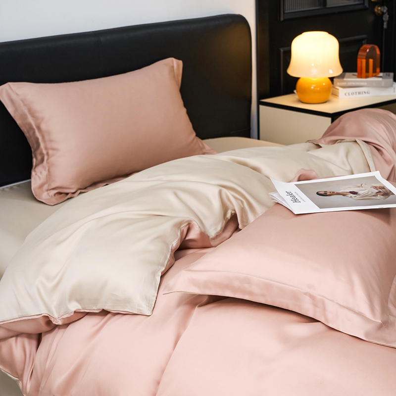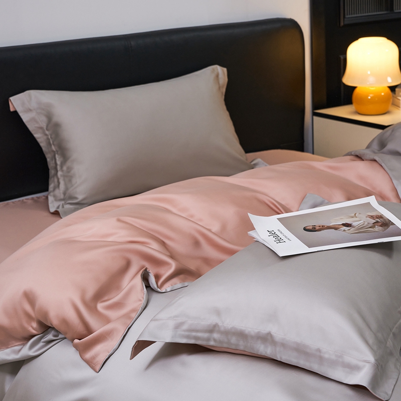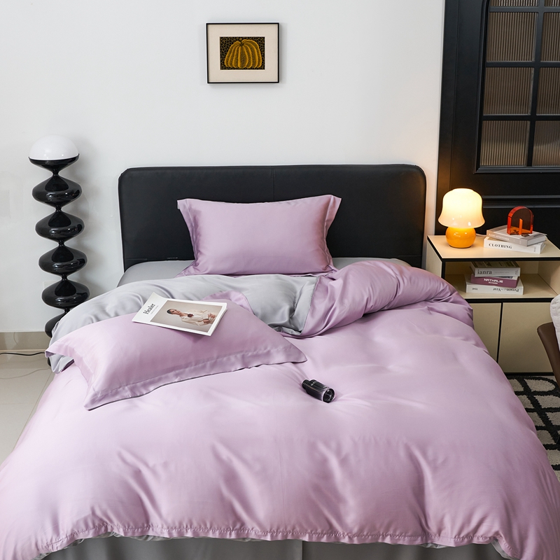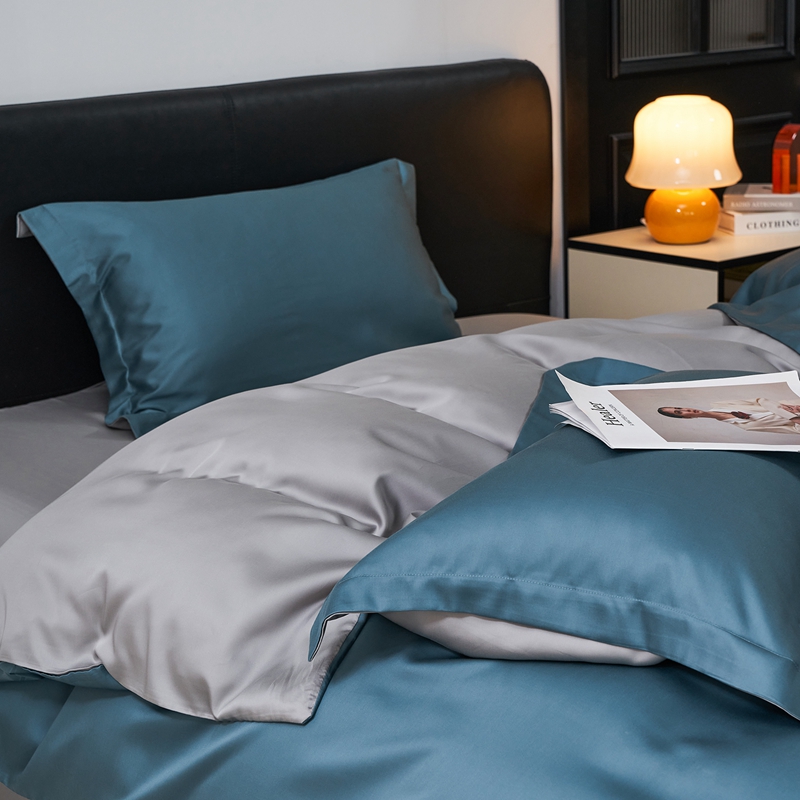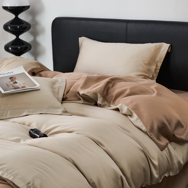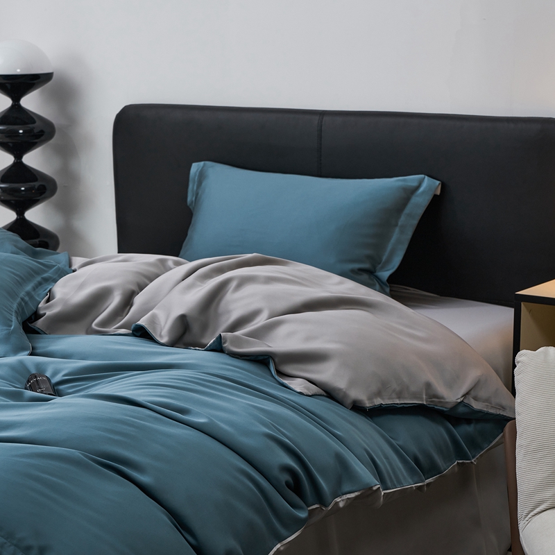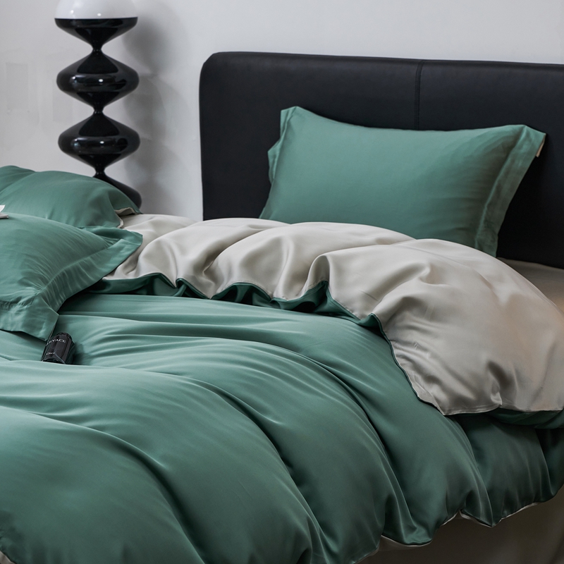(总)于果 2025新款简约双拼兰精天丝四件套