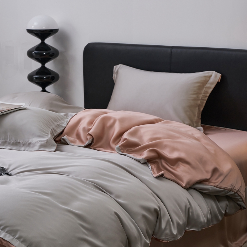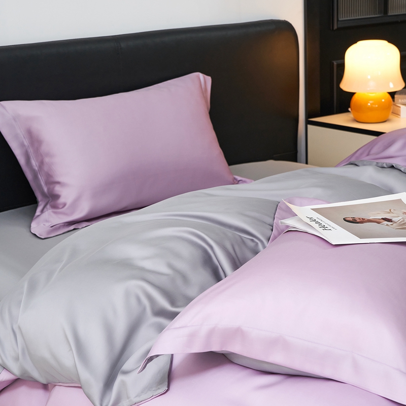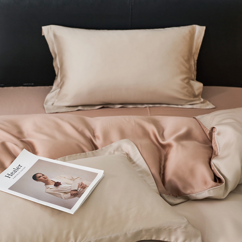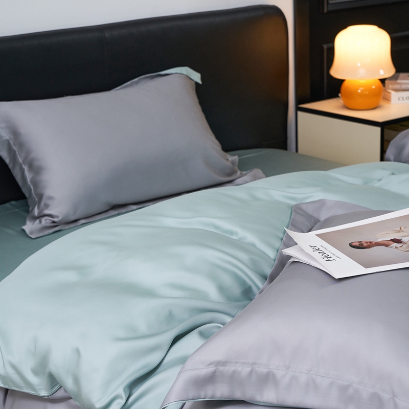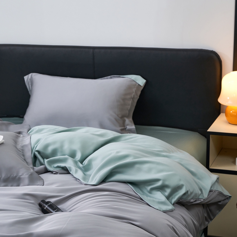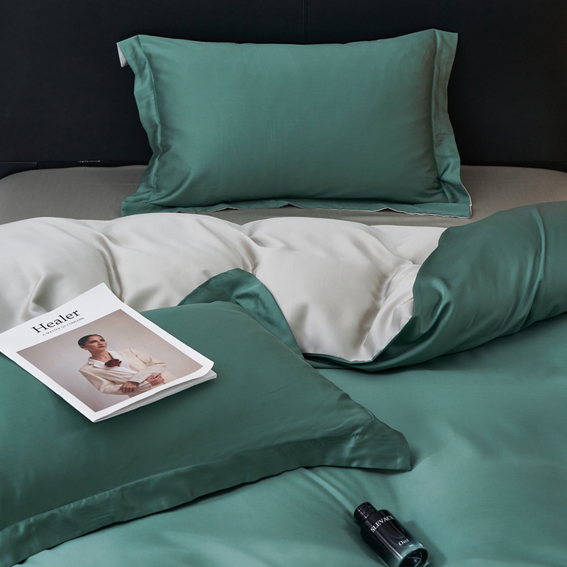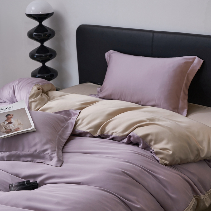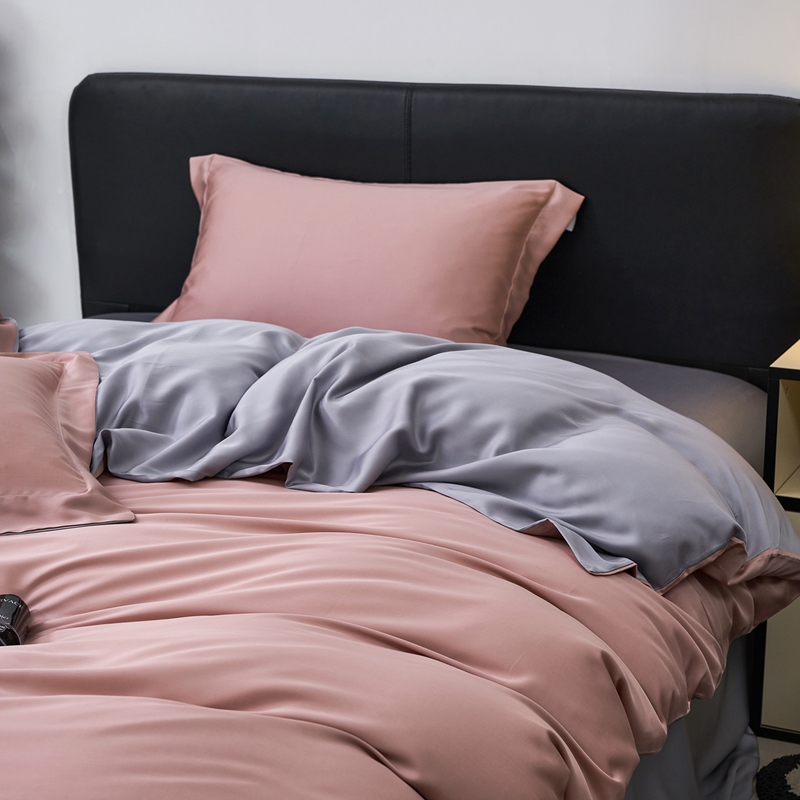 (总)于果 2025新款简约双拼兰精天丝四件套