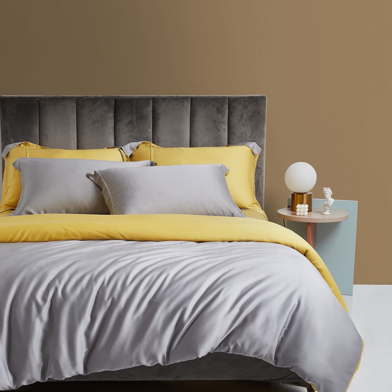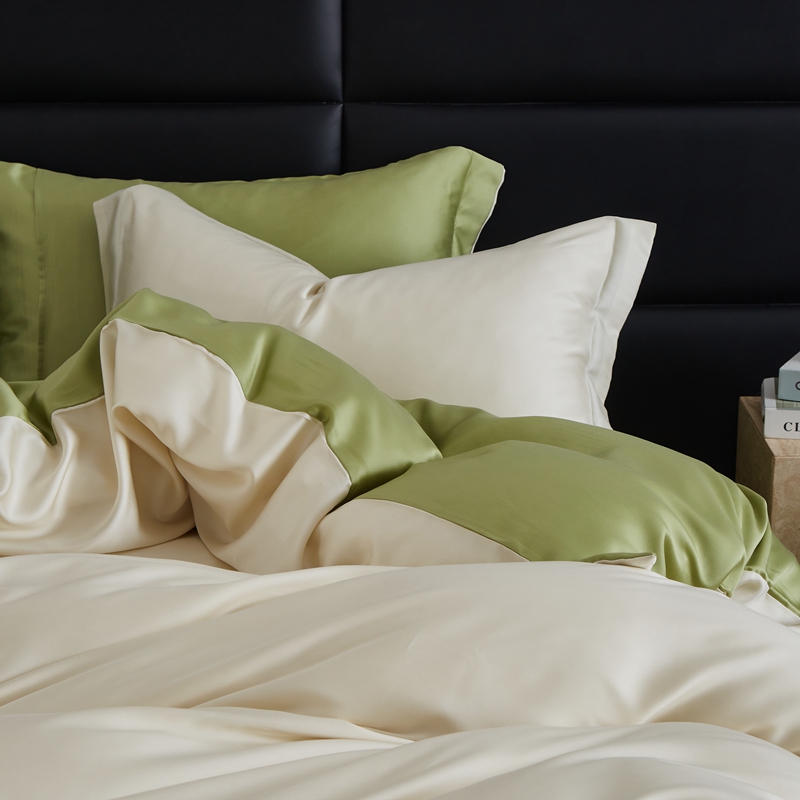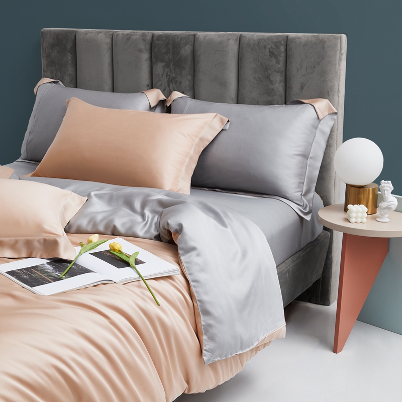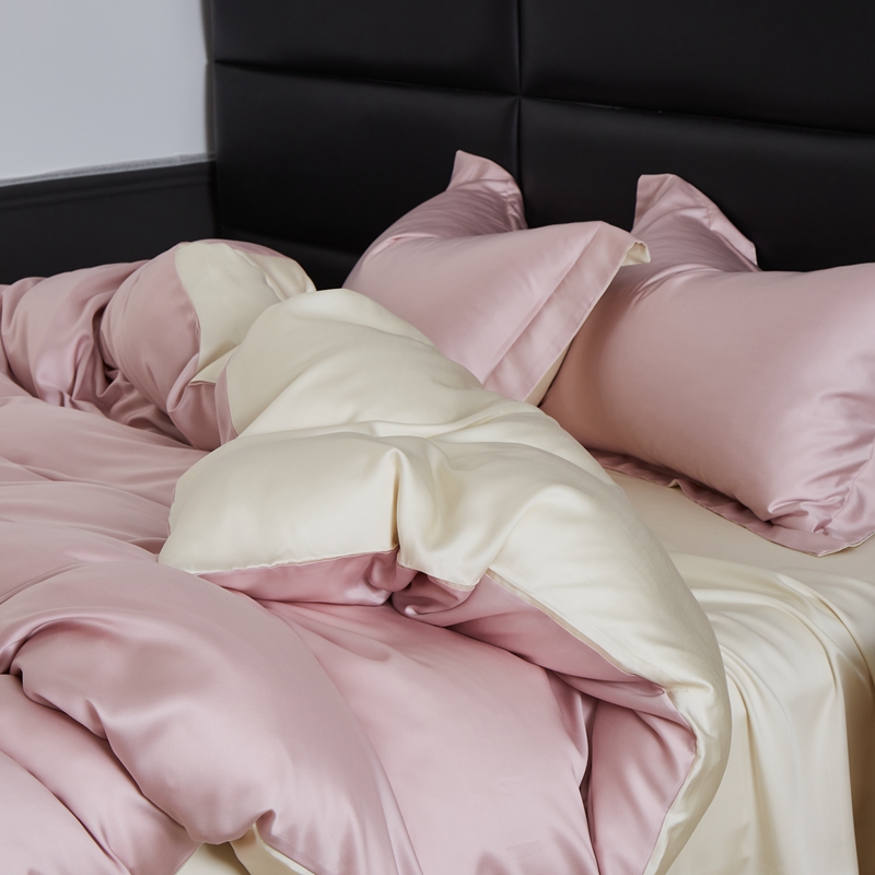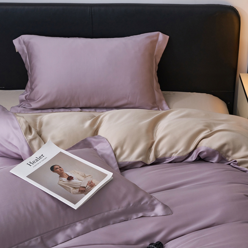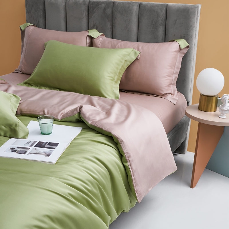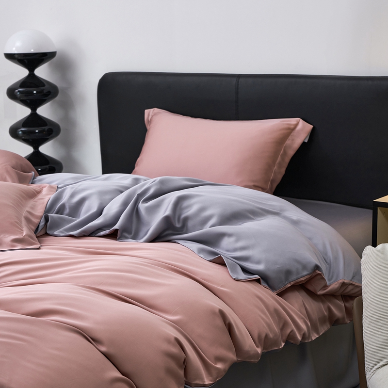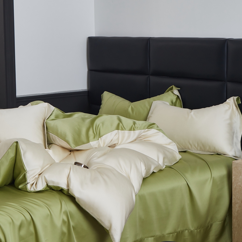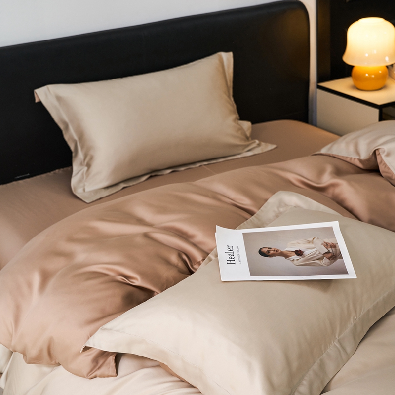 (总)于果 2025新款简约双拼兰精天丝四件套