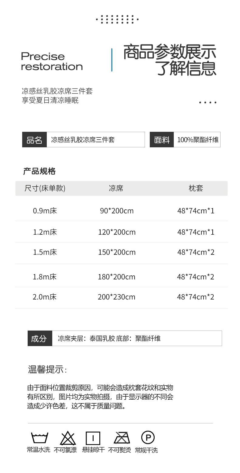 商品名称:(总)悦织湾家纺 2025新款床单款乳胶席三件套印花纯色冰丝凉感夏凉席