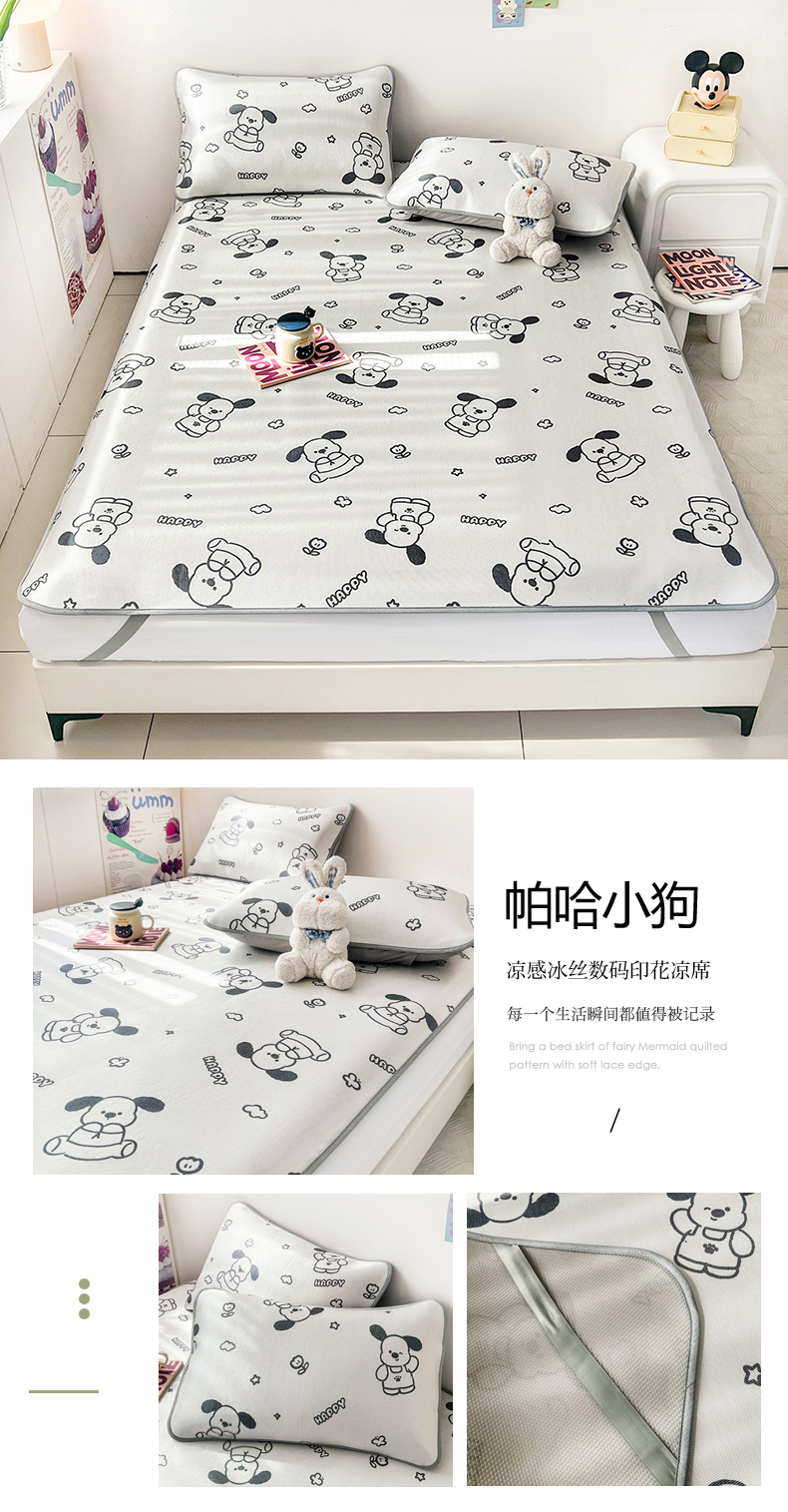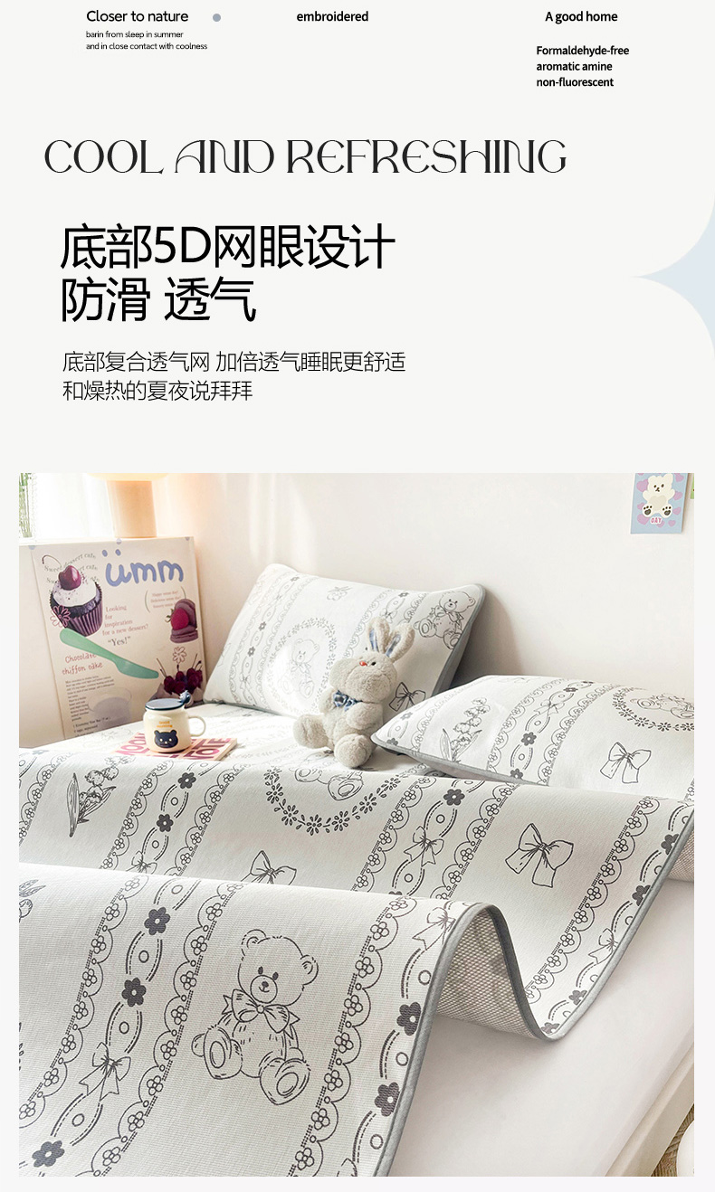 倾慕家纺 2025新款时尚风凉感冰丝席数码印花凉席系列 罗马小熊