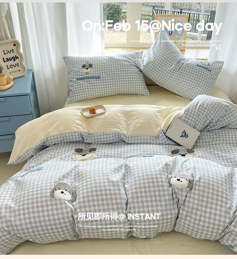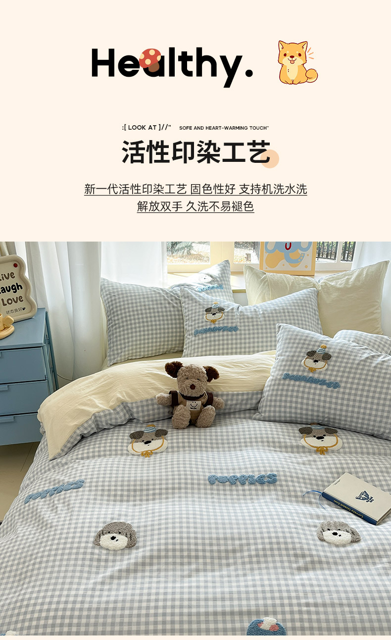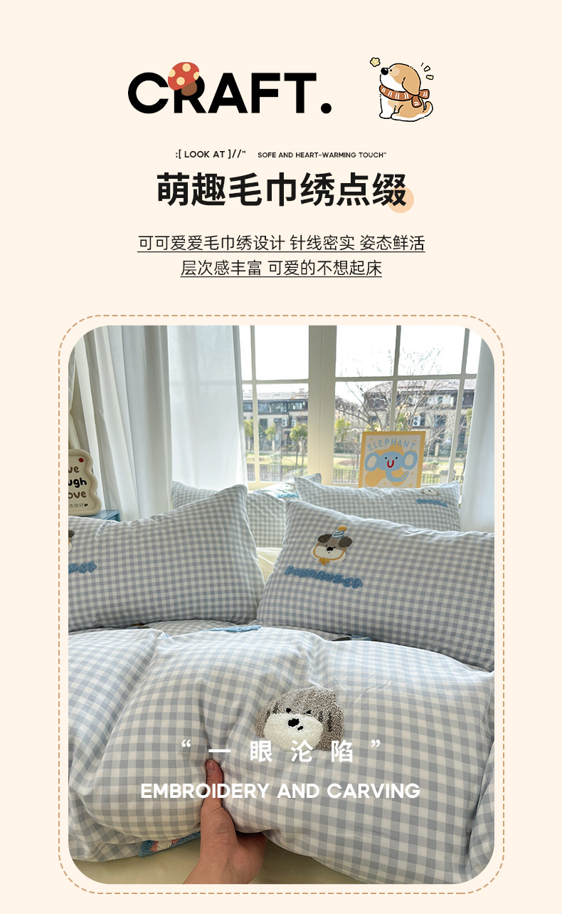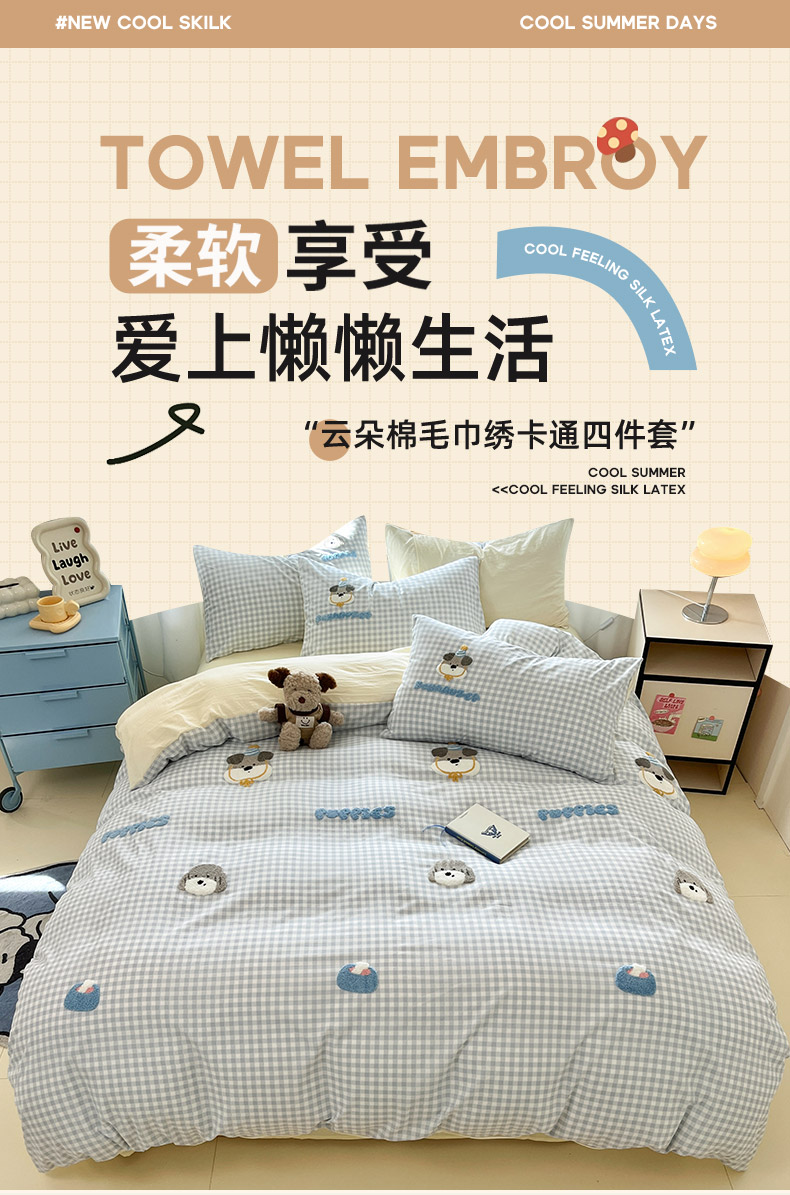 商品名称:乐坊2025新款云朵棉毛巾绣四件套 晚安狗狗