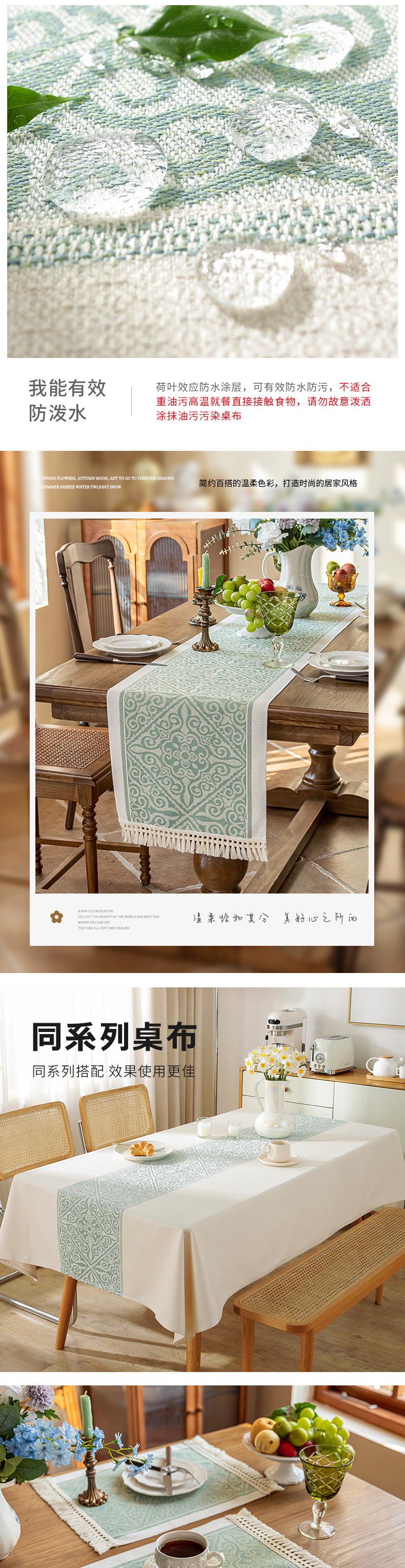 当前位置: 91家纺网 > 商品网购 > 居家布艺 > 餐桌布 > 南通大梧纺织 2025新款北欧桌旗(防泼水) 宝相-绿