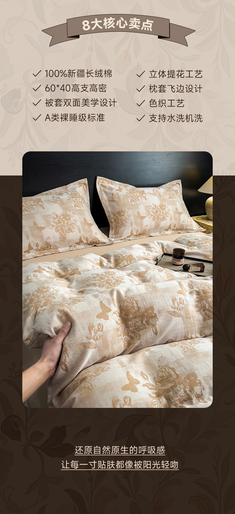 当前位置: 91家纺网 > 商品网购 > 床品套件 > 四件套 > 全棉普通四件套 > 倾慕家纺 2025新款60S提花全棉四件套 知画卡其