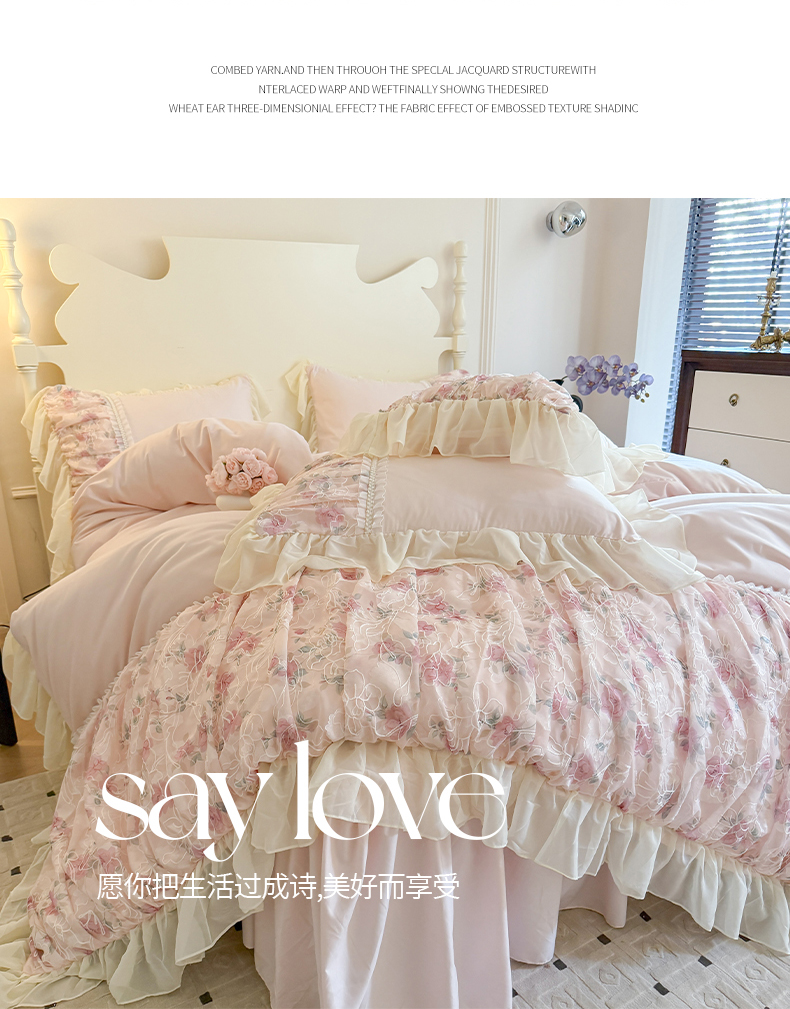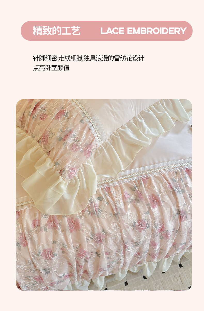 商品名称:(总)富盛家纺 2025新款水洗亲肤棉雪纺印绣工艺四件套公主风四件套巴黎春天系列