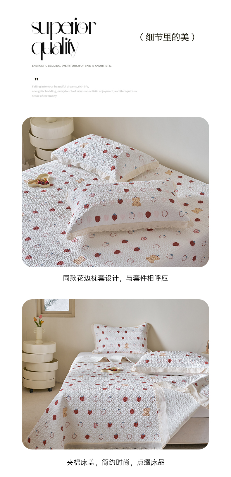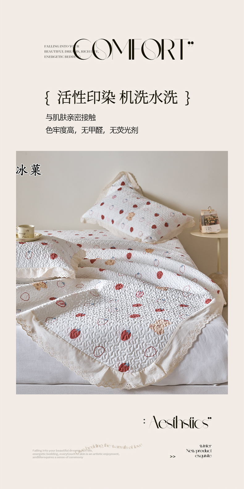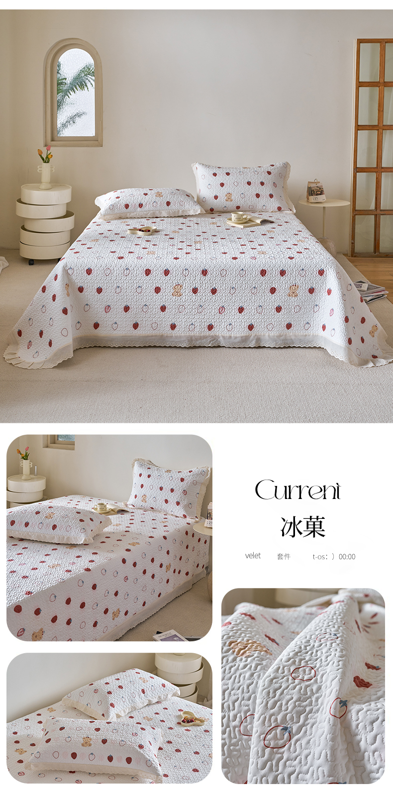 商品名称:漫仙阁家纺 2025新款热卖法式花边款加厚床盖床盖三件套 冰菓