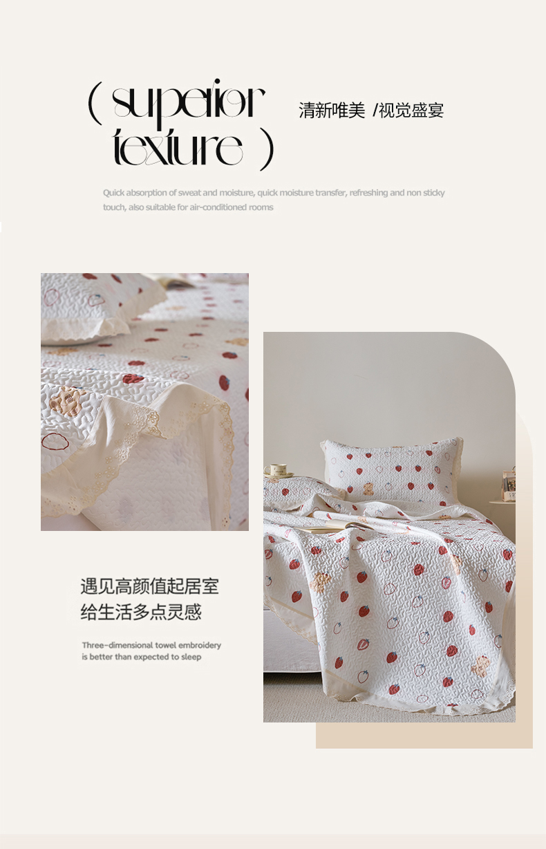 漫仙阁家纺 2025新款热卖法式花边款加厚床盖床盖三件套 冰菓