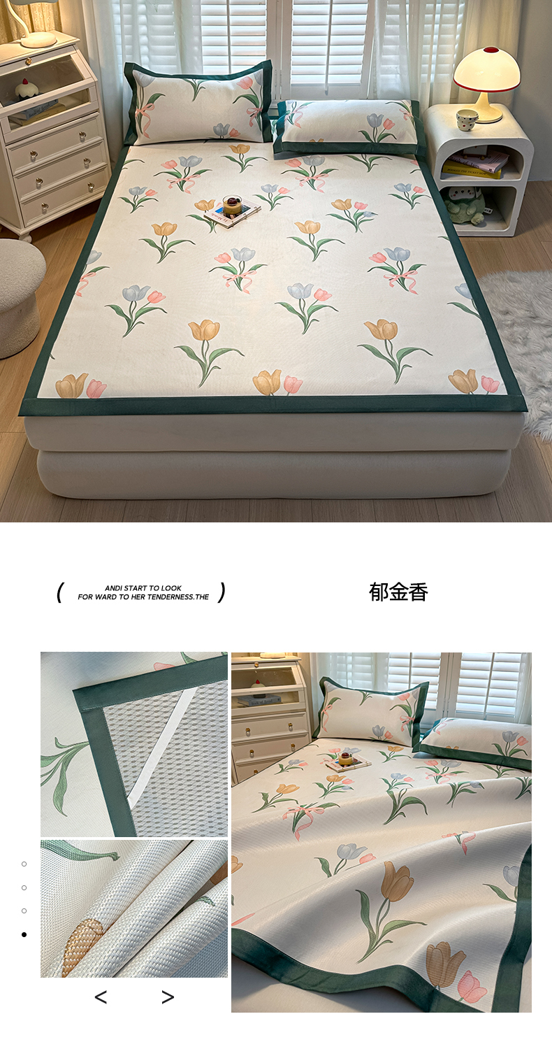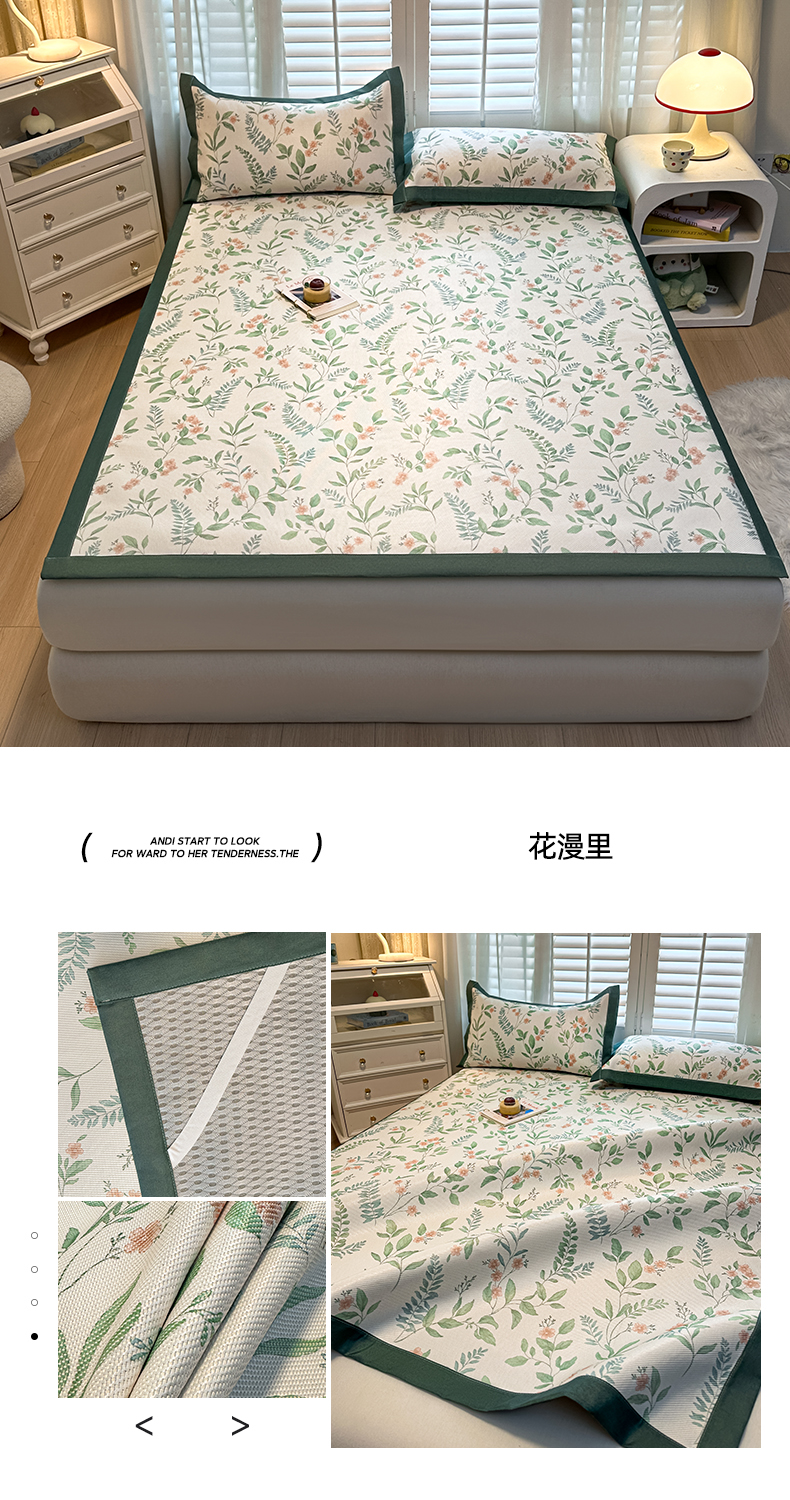 (总)席佬大 2025新款香薰艾草冰藤席凉席,北欧风,红叶绿,花朵-香槟,花开绿,花开玉,杏叶香槟