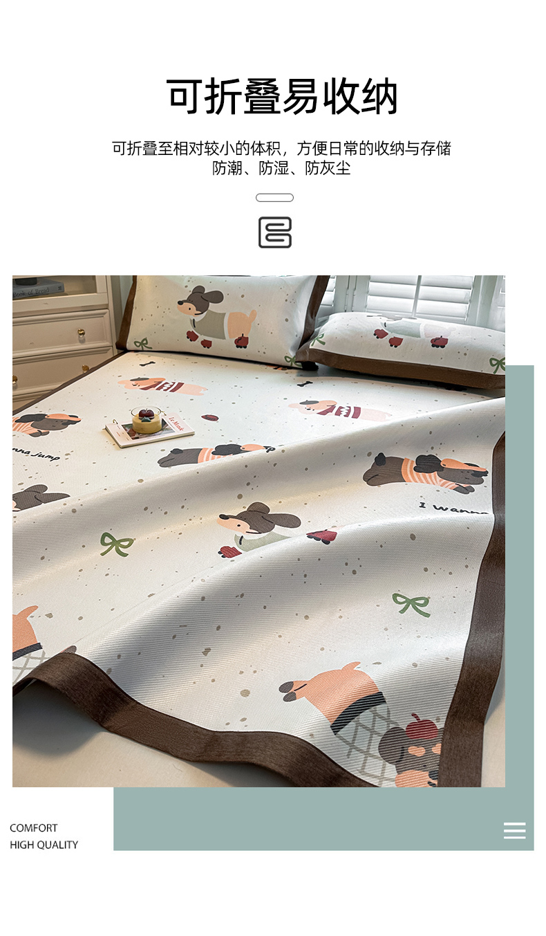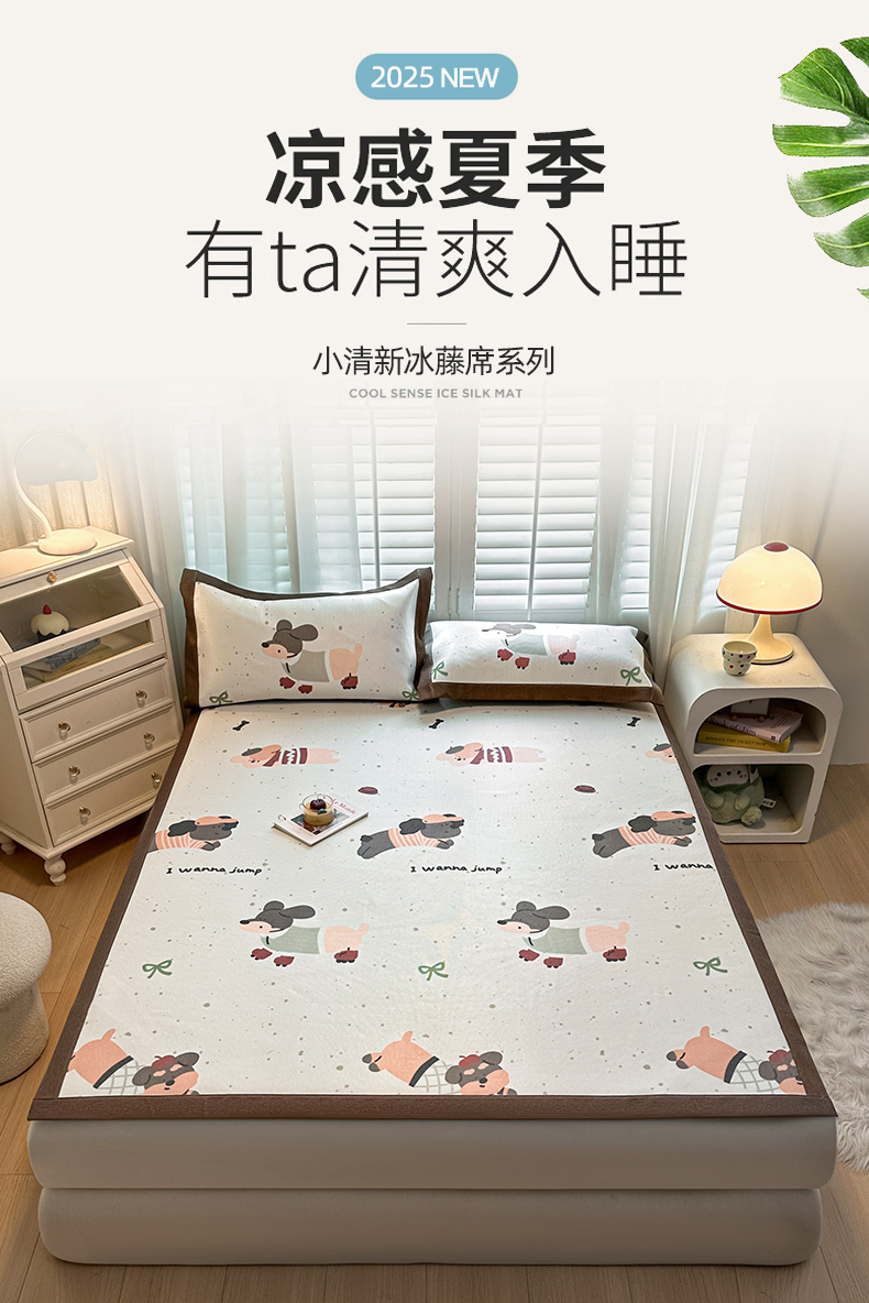 当前位置: 91家纺网 > 商品网购 > 床上用品 > 凉席 > 凉席套件 > 席佬大 2025新款高克重卡通数码印花冰藤席床席床笠款 可爱狗狗-平铺款