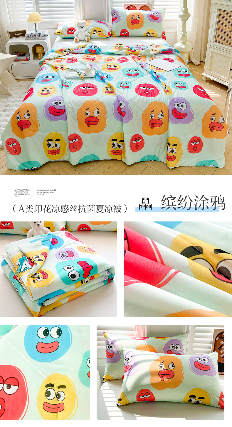 好梦来家纺(原锦茂家纺) 2025新款印花凉感丝抗菌夏被 缤纷涂鸦