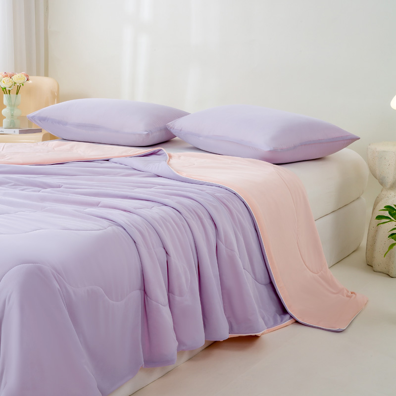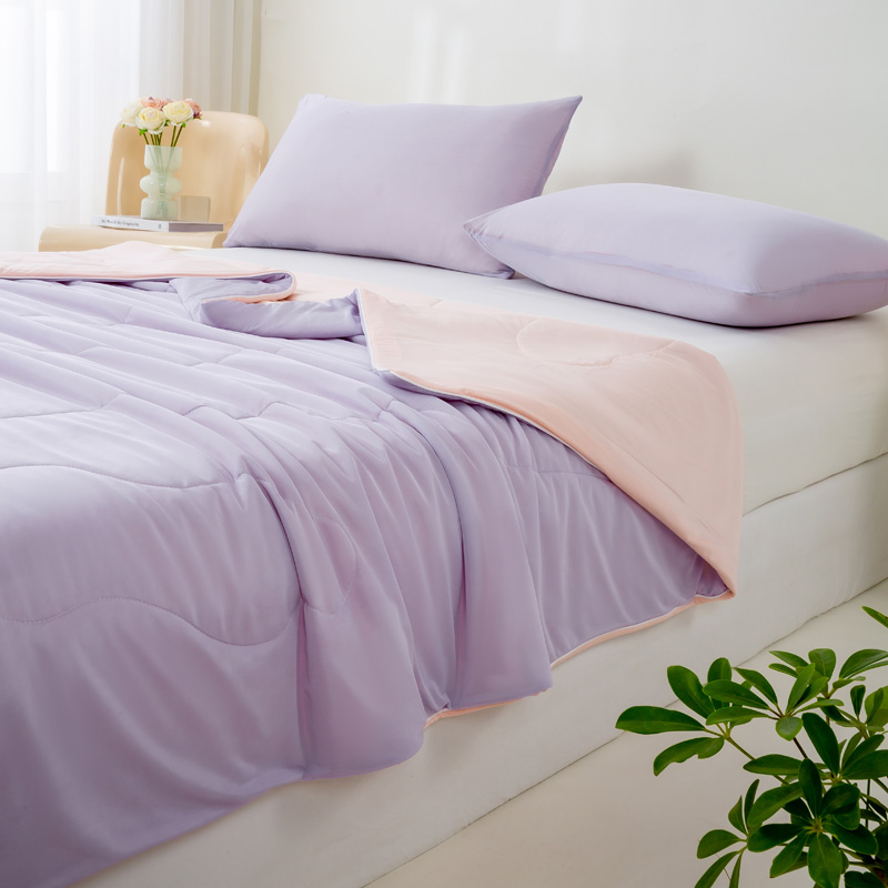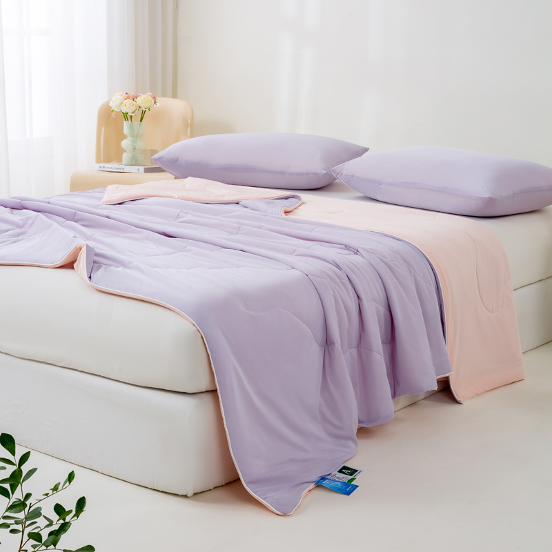 好梦来家纺(原锦茂家纺) 2025新款印花凉感丝抗菌夏被 紫拼粉