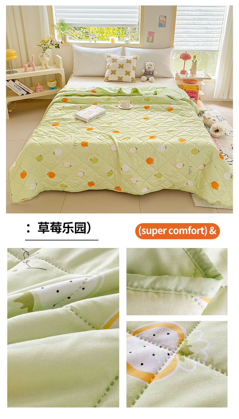 商品名称:憨豆家纺 2025新款纳米印花超声波夏被简约可机洗空调被夏凉被礼品被直播跨境 草莓乐园