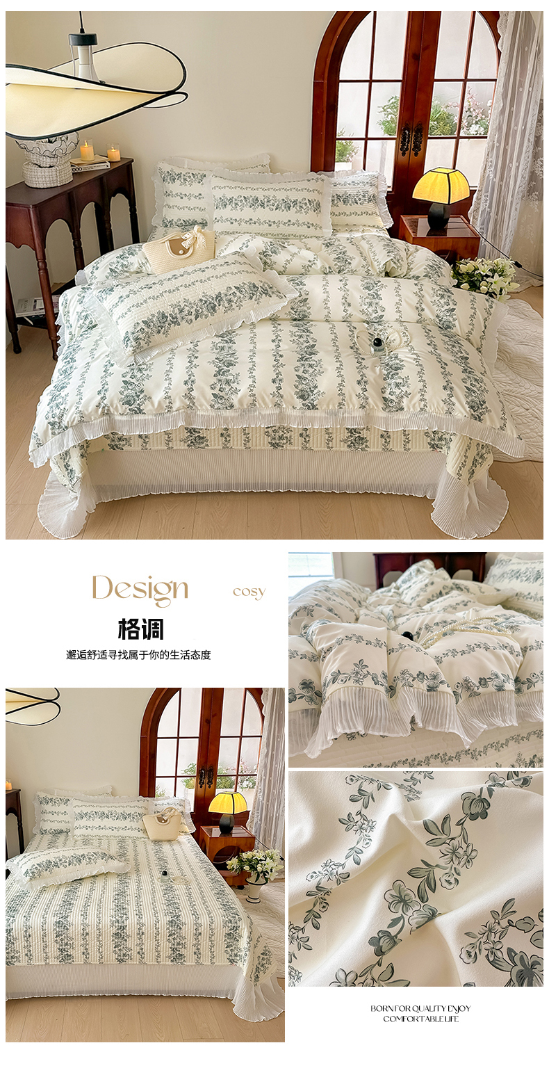 商品名称:赫本家纺 2025新款水洗棉花边款夹棉床盖三件套四件套 格调