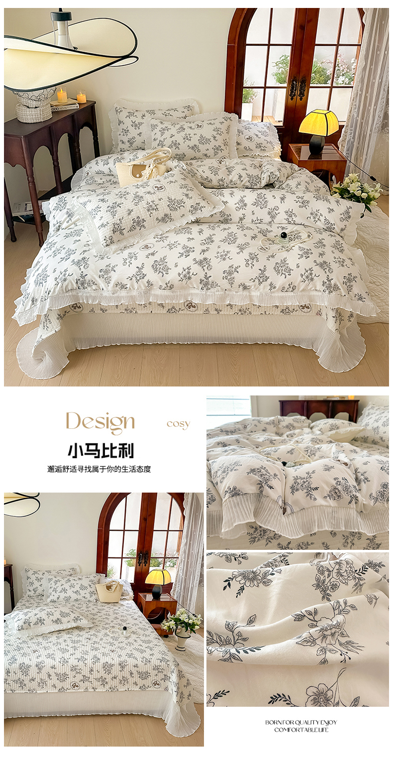 商品名称:赫本家纺 2025新款水洗棉花边款夹棉床盖三件套四件套 小马比利