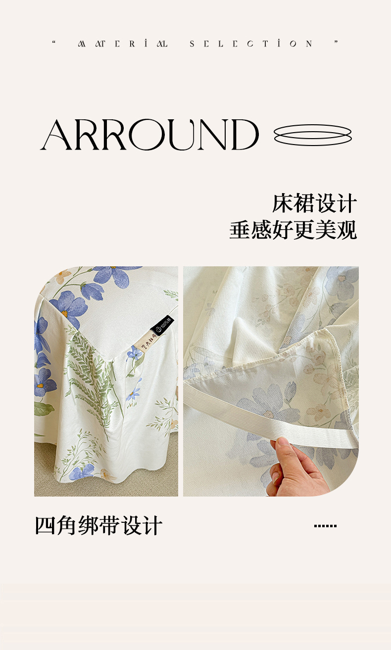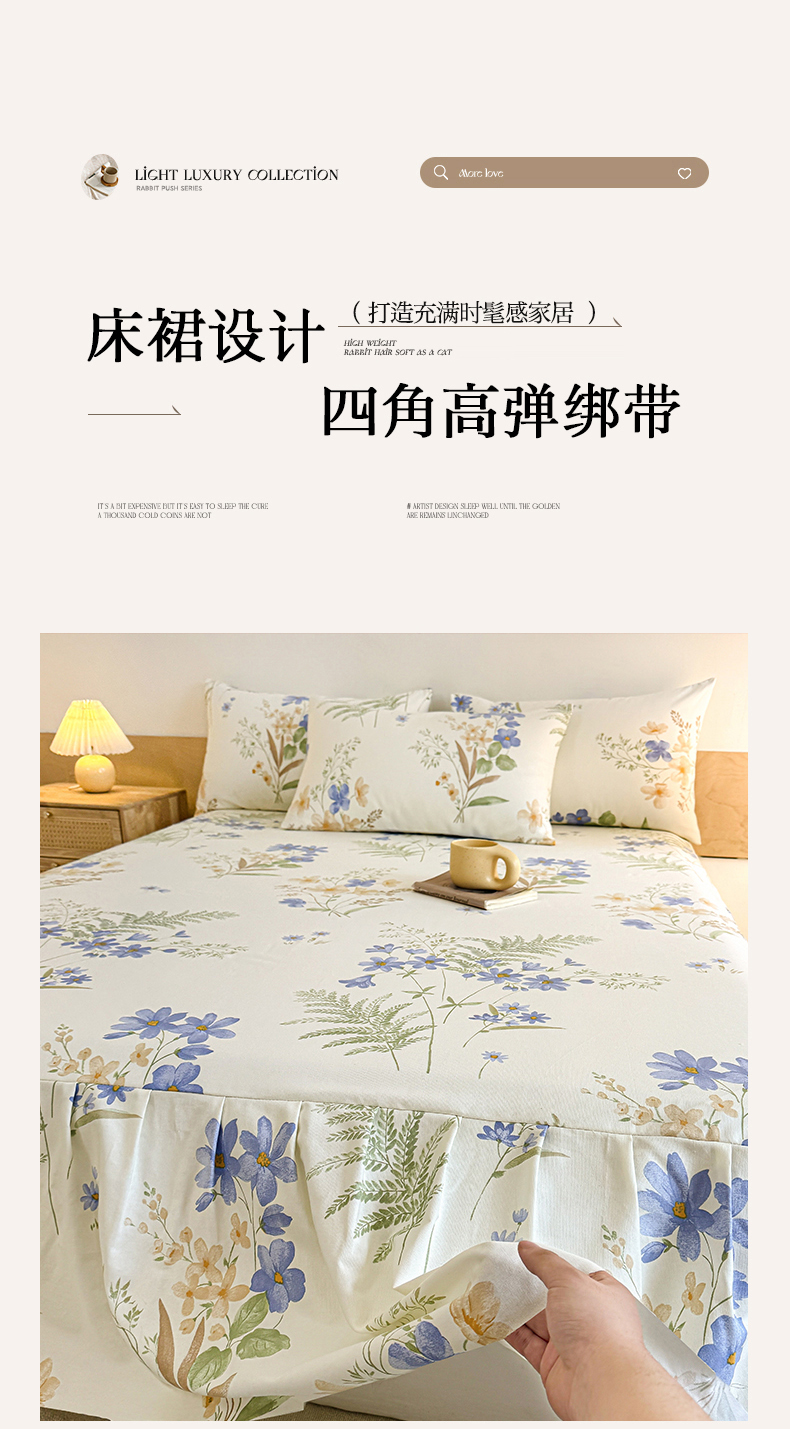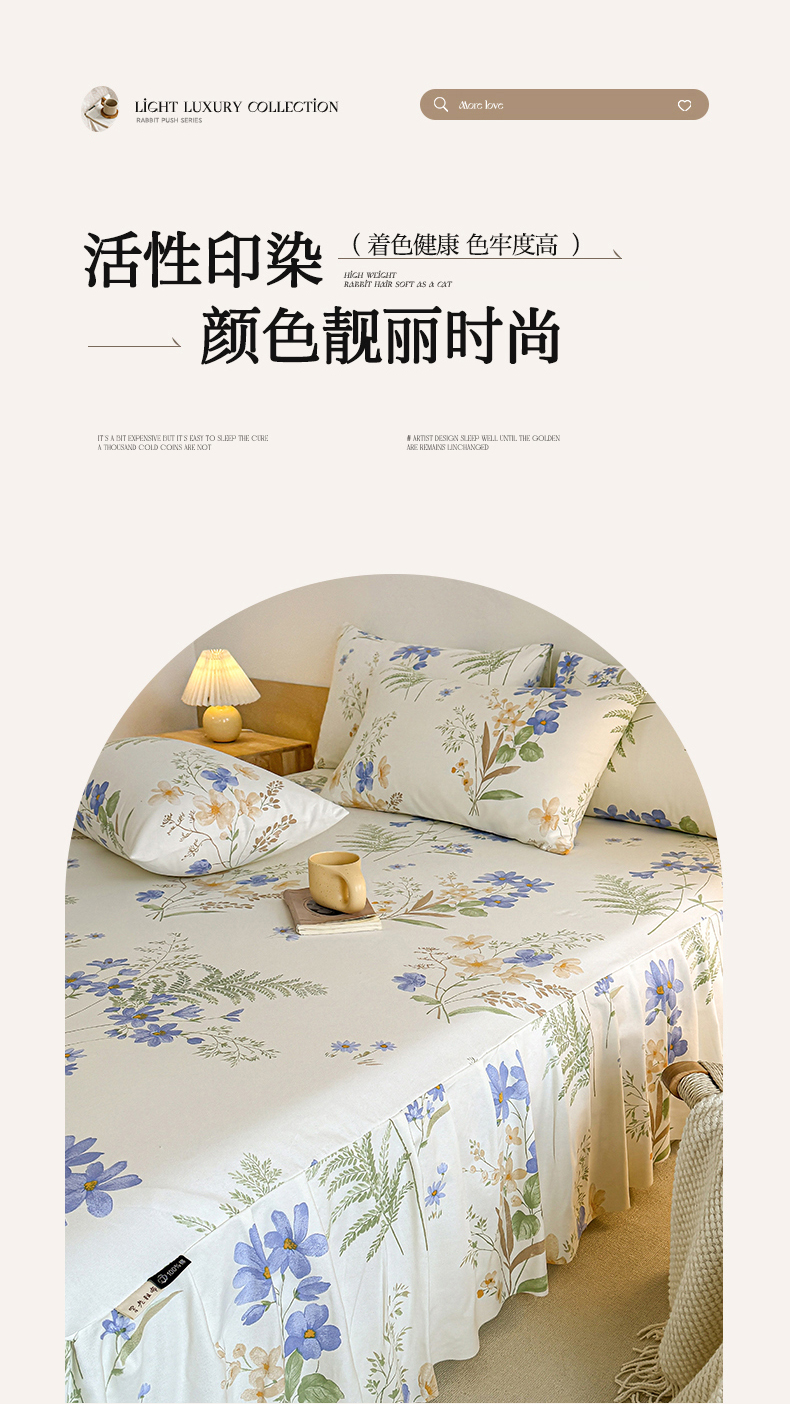 商品名称:布柔 2025新款100%全棉纯棉老粗布绣花印花凉席单品床裙 兰花