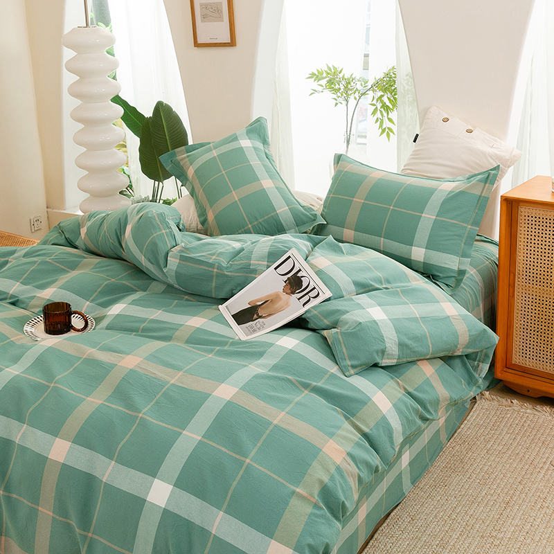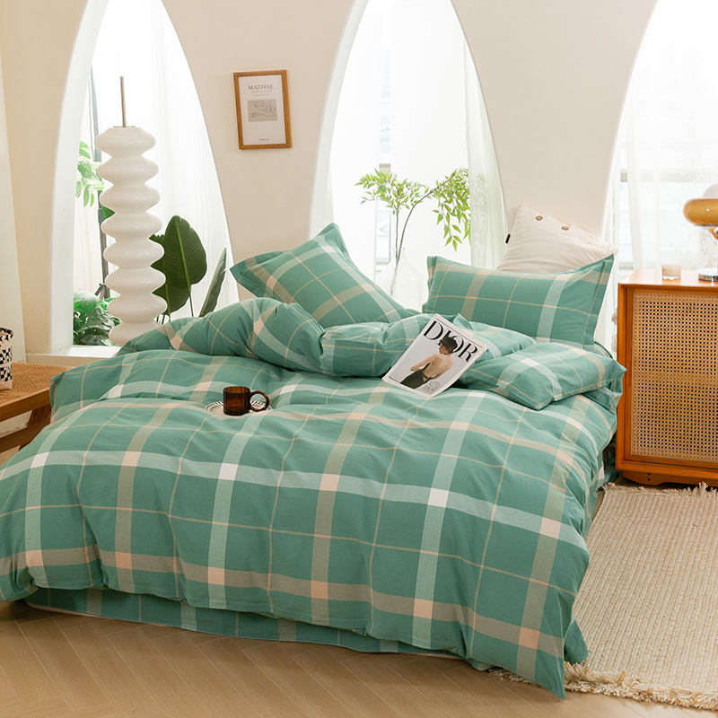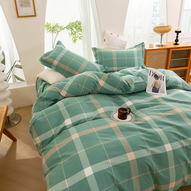 商品名称:喜四方 2025新款全棉色织水洗棉四件套 悠然大格(绿)