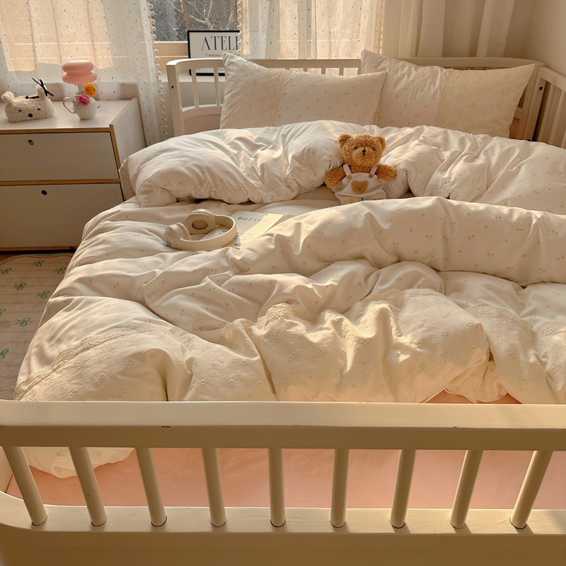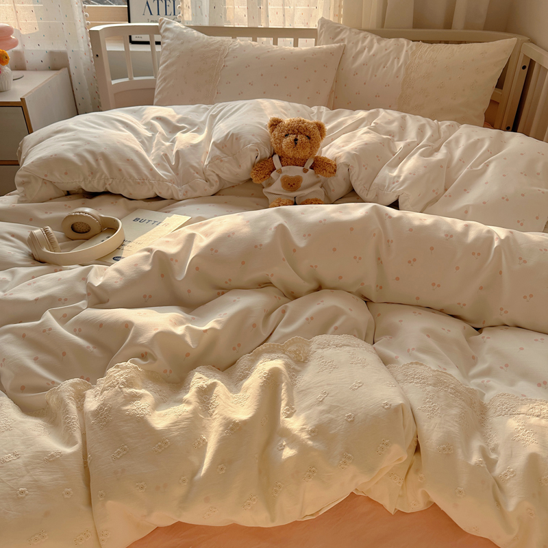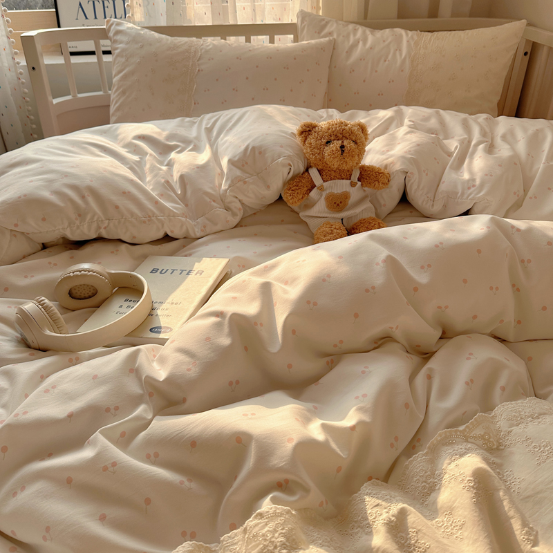 (总)顾里家纺 2026新款春日碎花大花边云感棉四件套(床笠属于定制 后期不予退换),豹纹樱桃,彩点小熊,丁香小熊,风铃西高地,复古风信,复古山茶,花海,蓝豹小猫,梦幻粉兔,玩偶粉兔,线条表情狗,星辰花,樱桃花,虞美人,治愈小狮